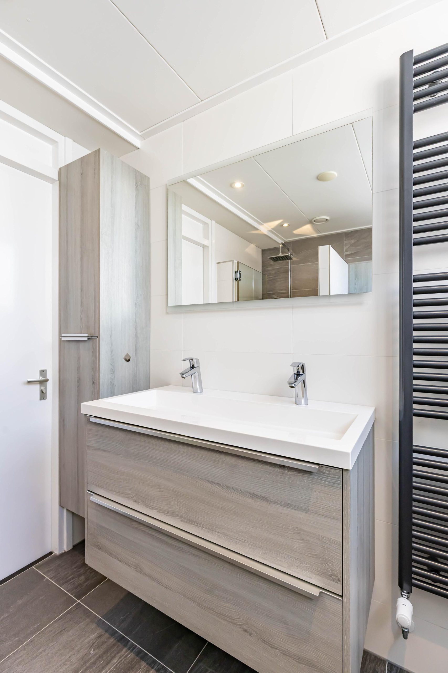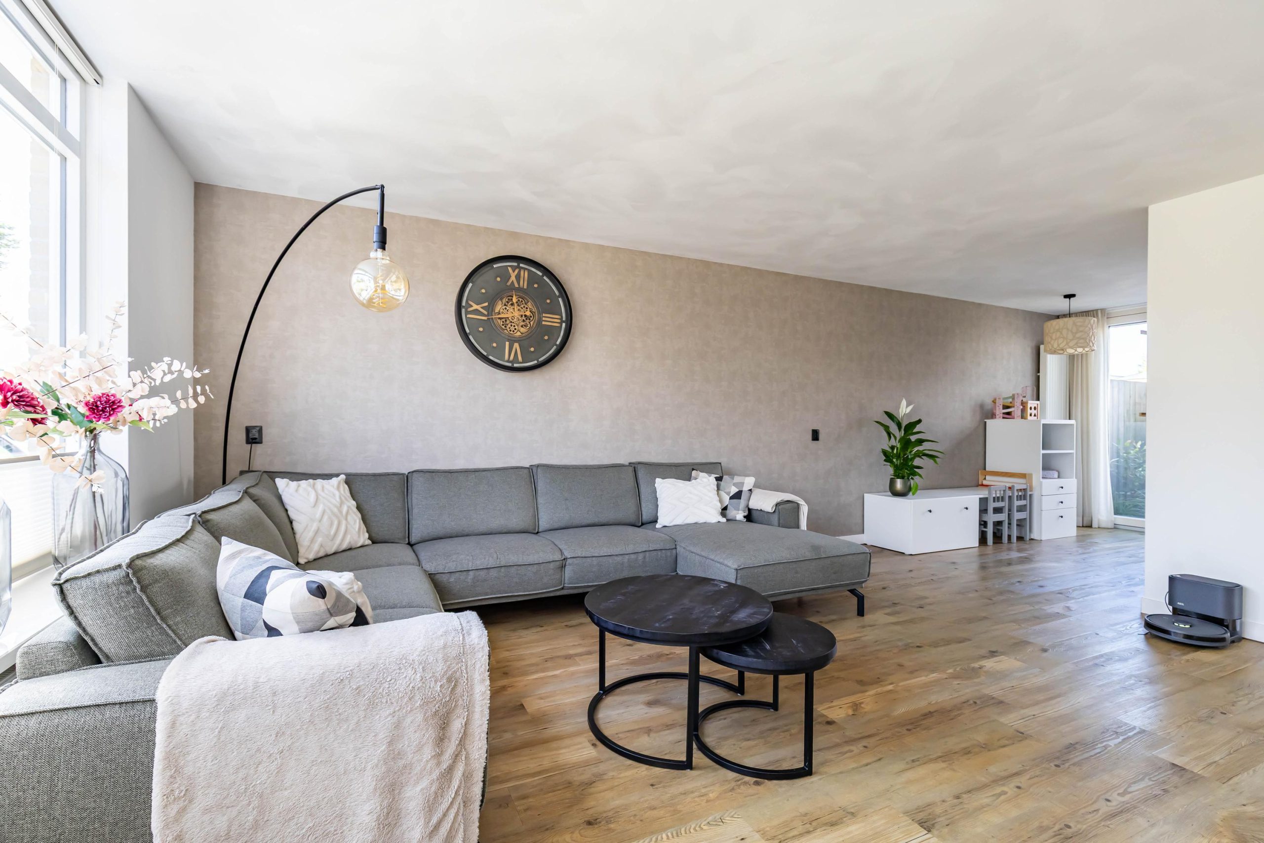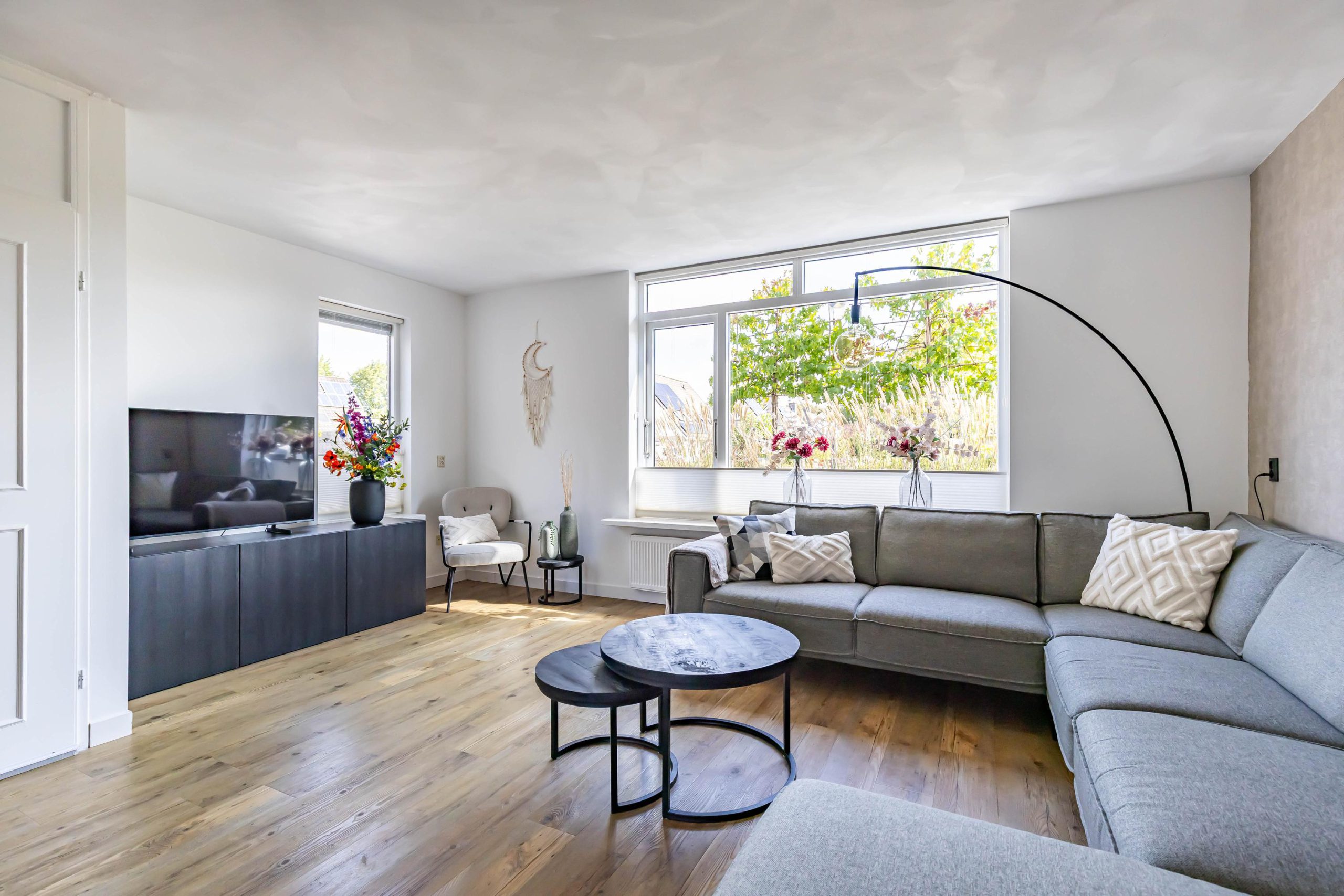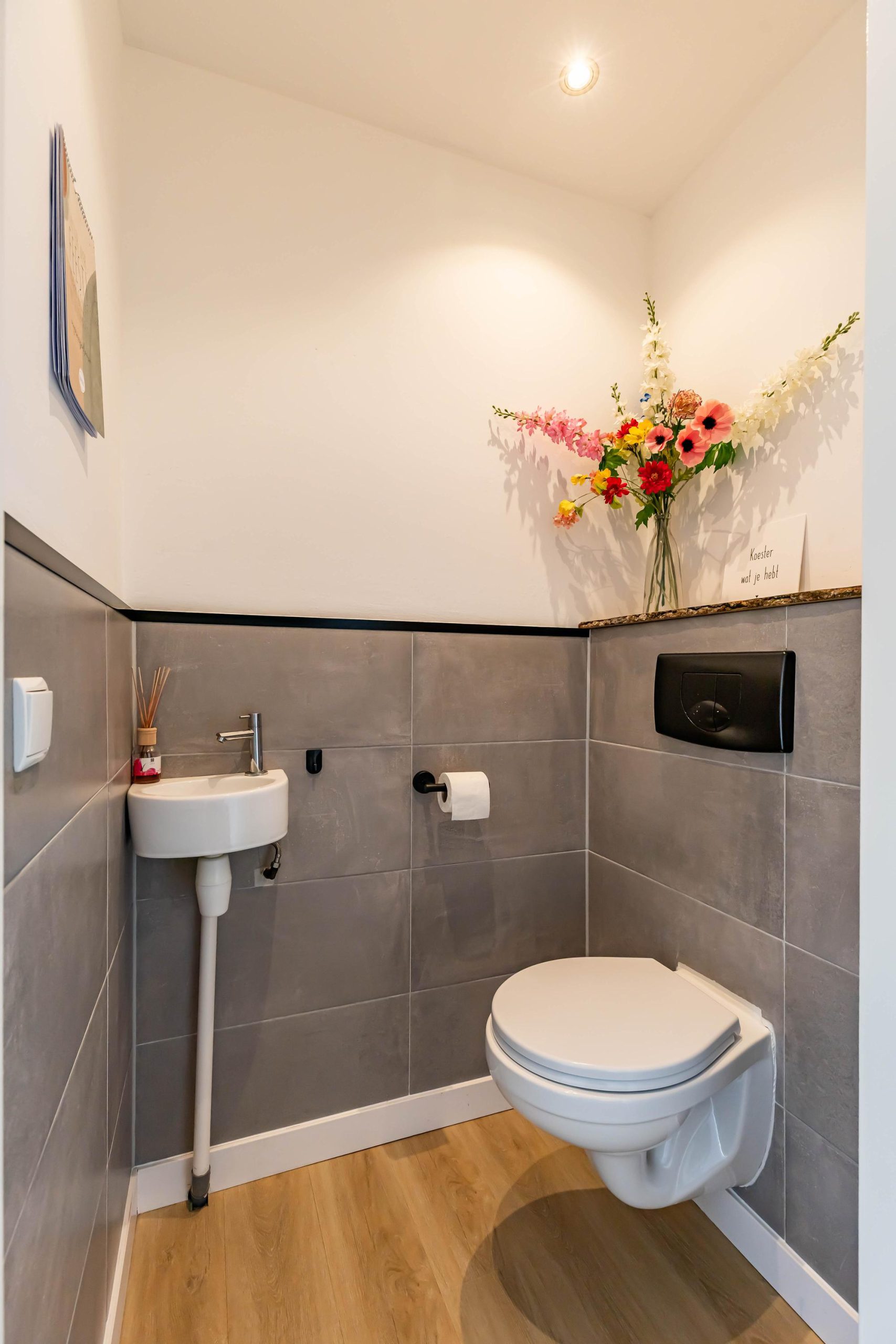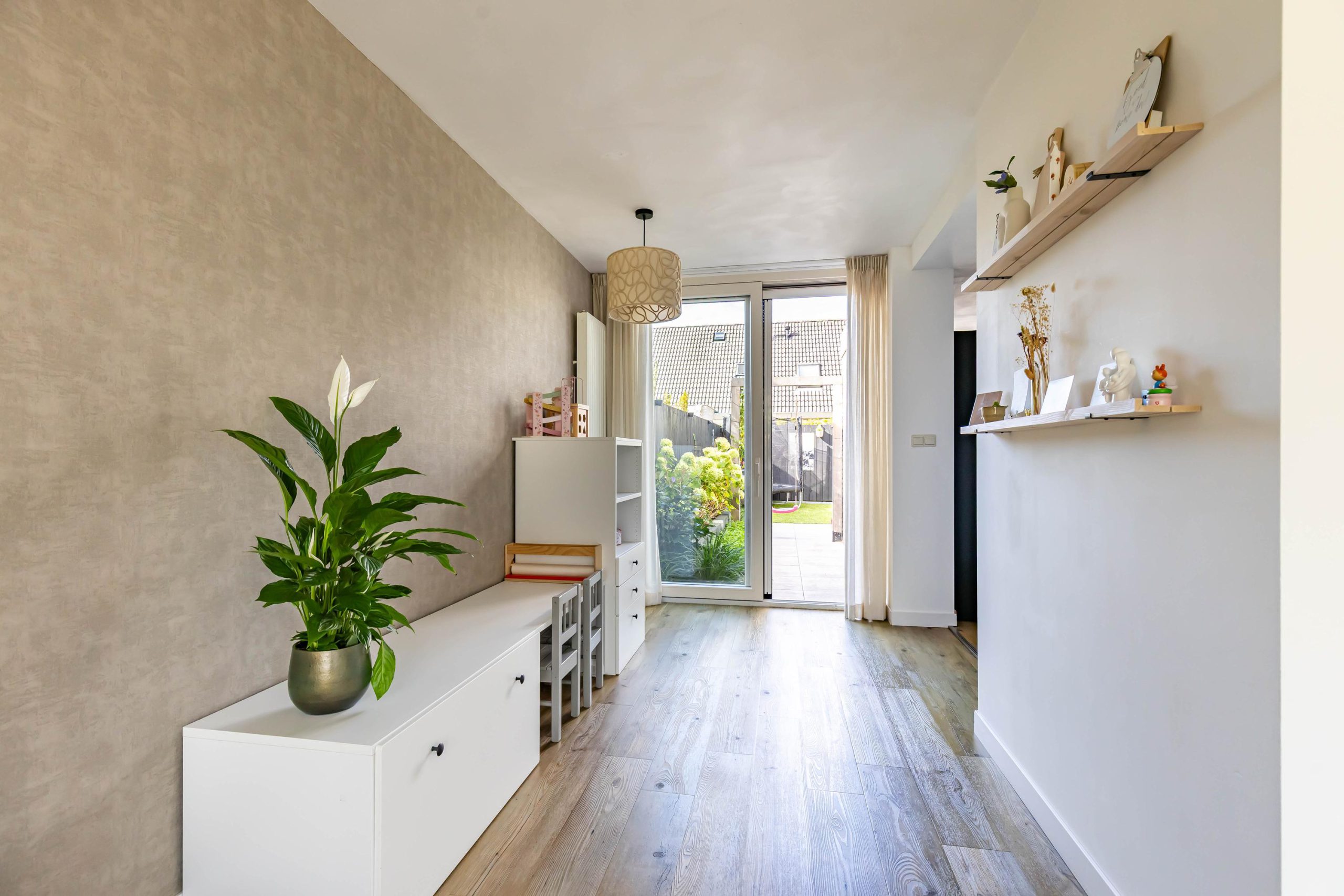 De woonkamer voelt direct ruim en licht dankzij de vele ramen. Hier is ook slim gebruikgemaakt van de ruimte met handige opbergruimte onder de kast. Vanuit de woonkamer stap je via de schuifpui zo de tuin in. De keuken is gezellig en praktisch ingericht, voorzien van een zithoek en moderne apparatuur zoals een 5-pits gasfornuis, een vaatwasser (2024), een koelkast (2024) en een combi-oven. Het geheel maakt dit een fijne plek voor dagelijkse maaltijden en gezellig samenzijn.