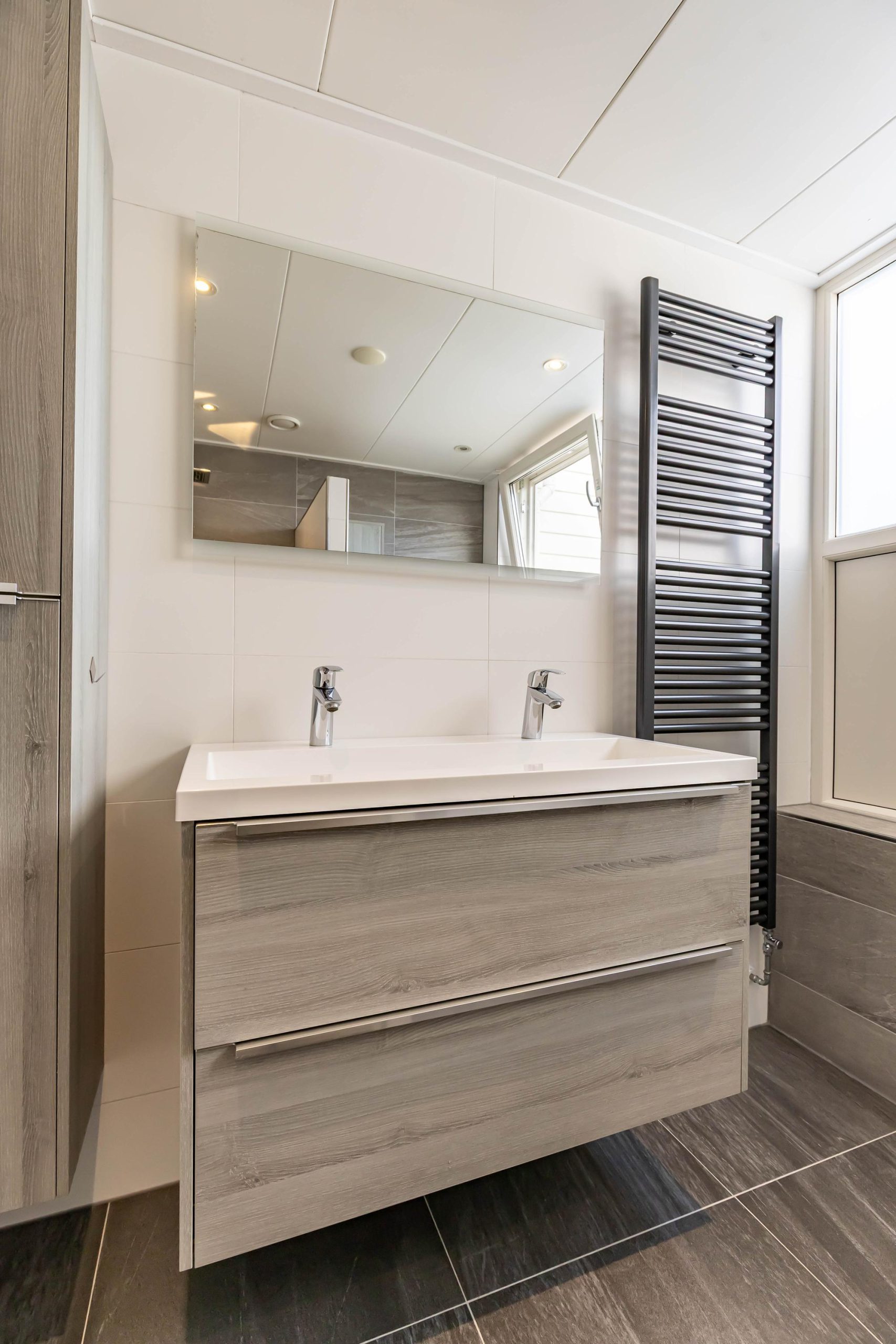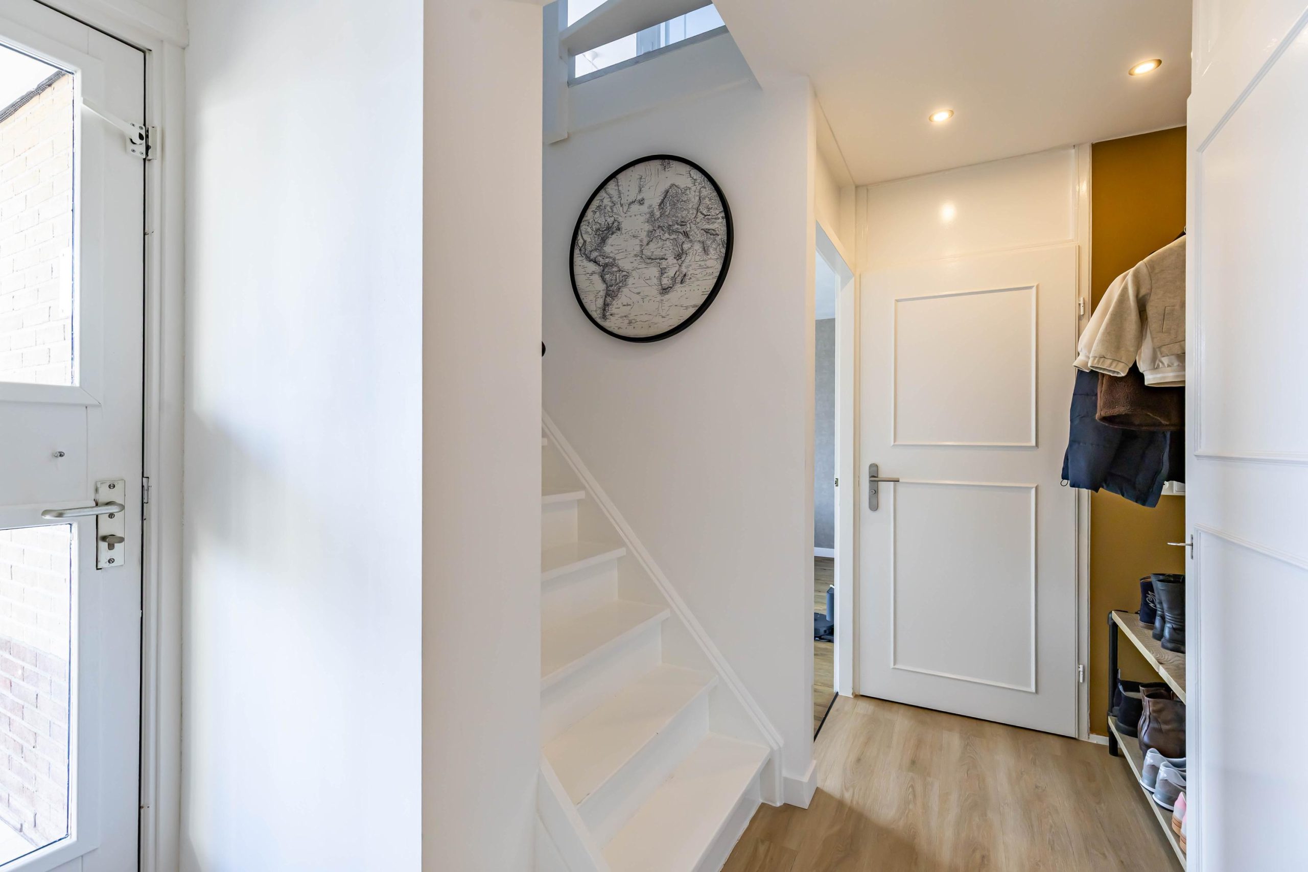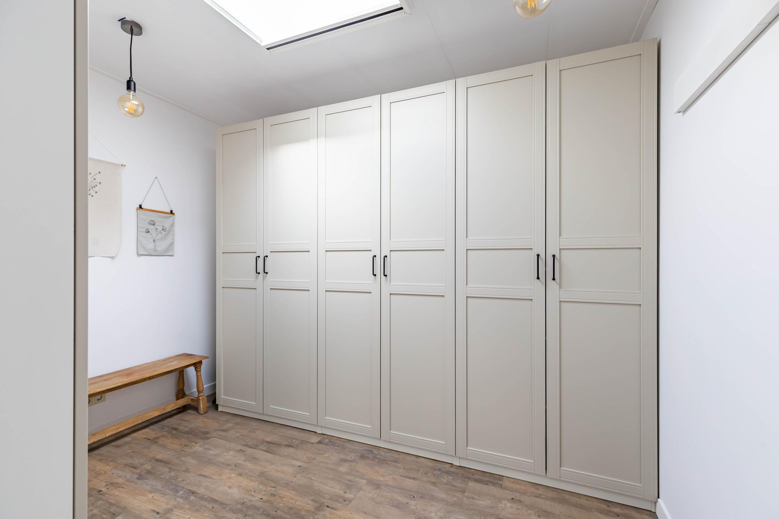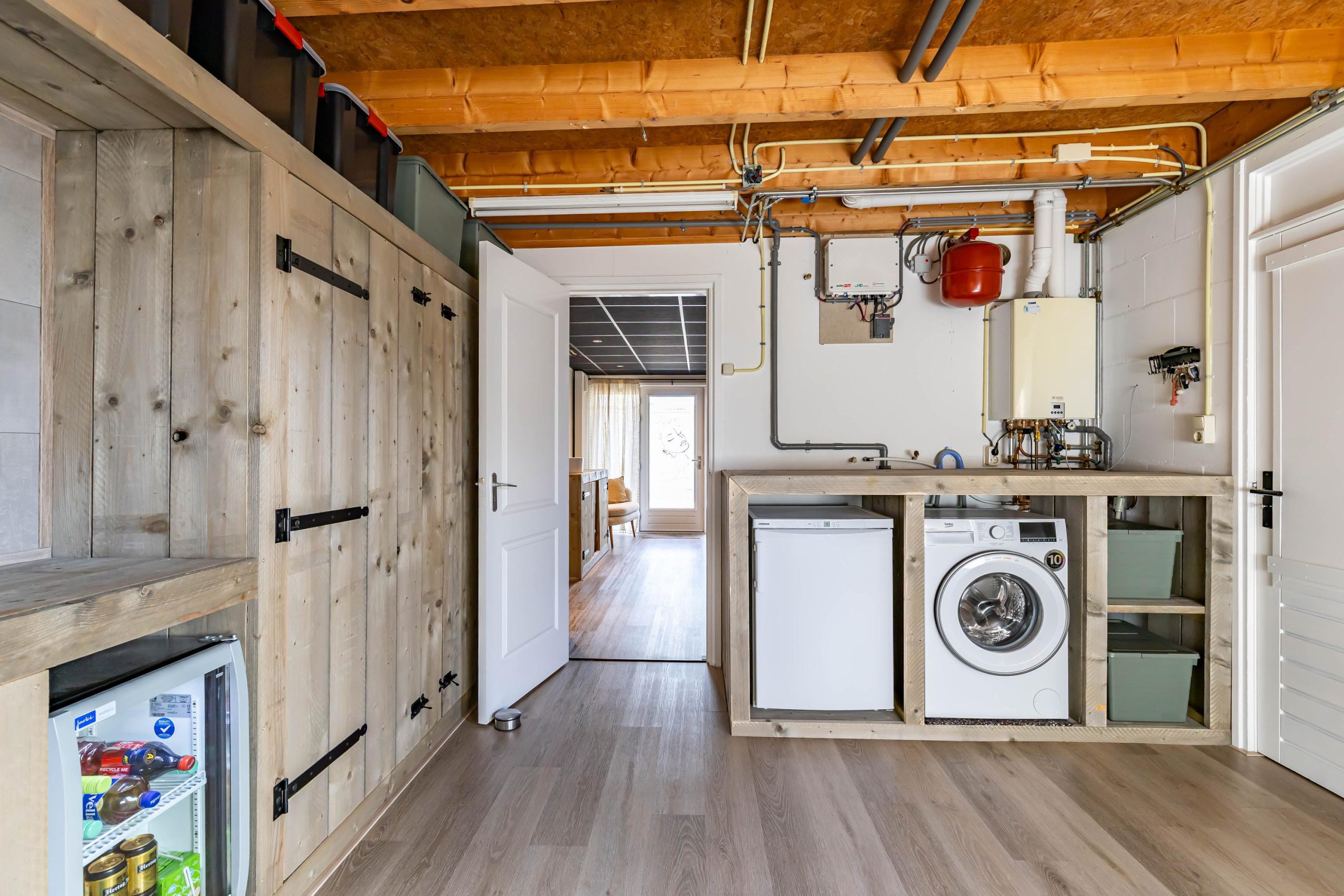 De woonkamer voelt direct ruim en licht dankzij de vele ramen. Hier is ook slim gebruikgemaakt van de ruimte met handige opbergruimte onder de kast. Vanuit de woonkamer stap je via de schuifpui zo de tuin in. De keuken is gezellig en praktisch ingericht, voorzien van een zithoek en moderne apparatuur zoals een 5-pits gasfornuis, een vaatwasser (2024), een koelkast (2024) en een combi-oven. Het geheel maakt dit een fijne plek voor dagelijkse maaltijden en gezellig samenzijn.