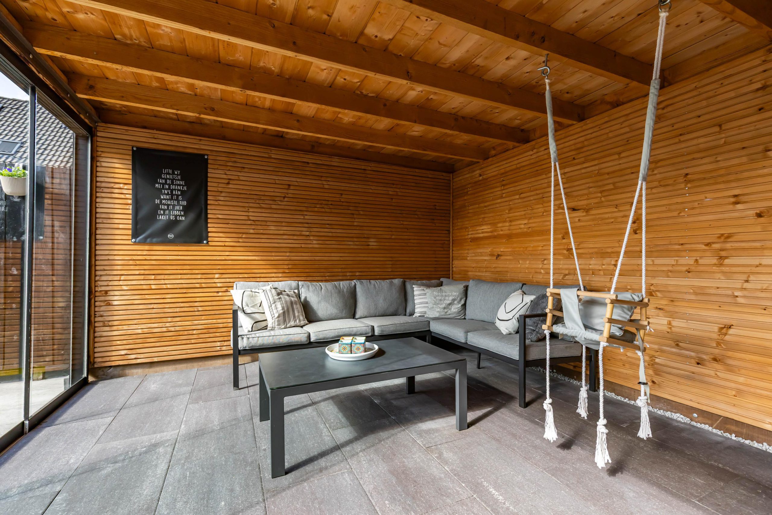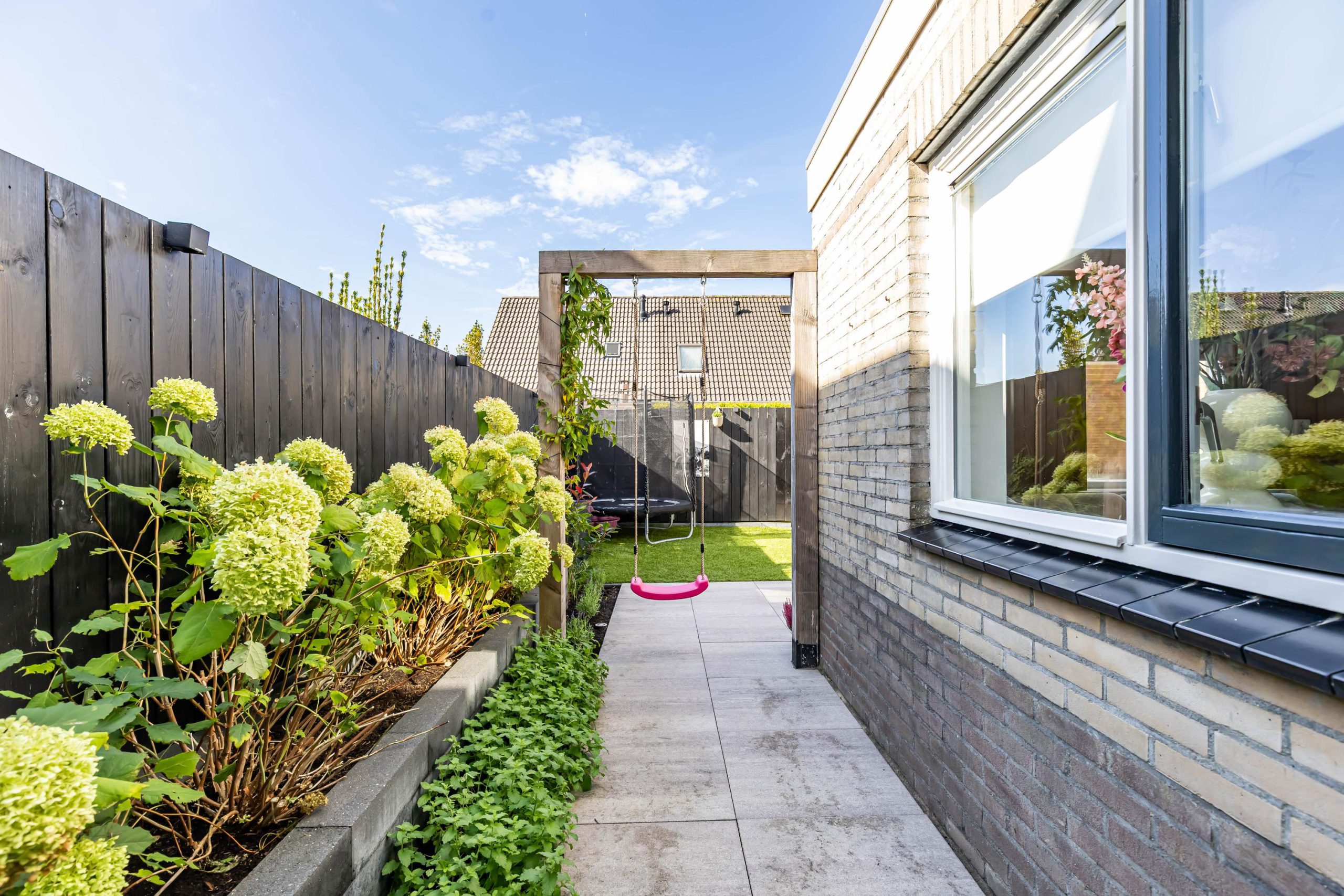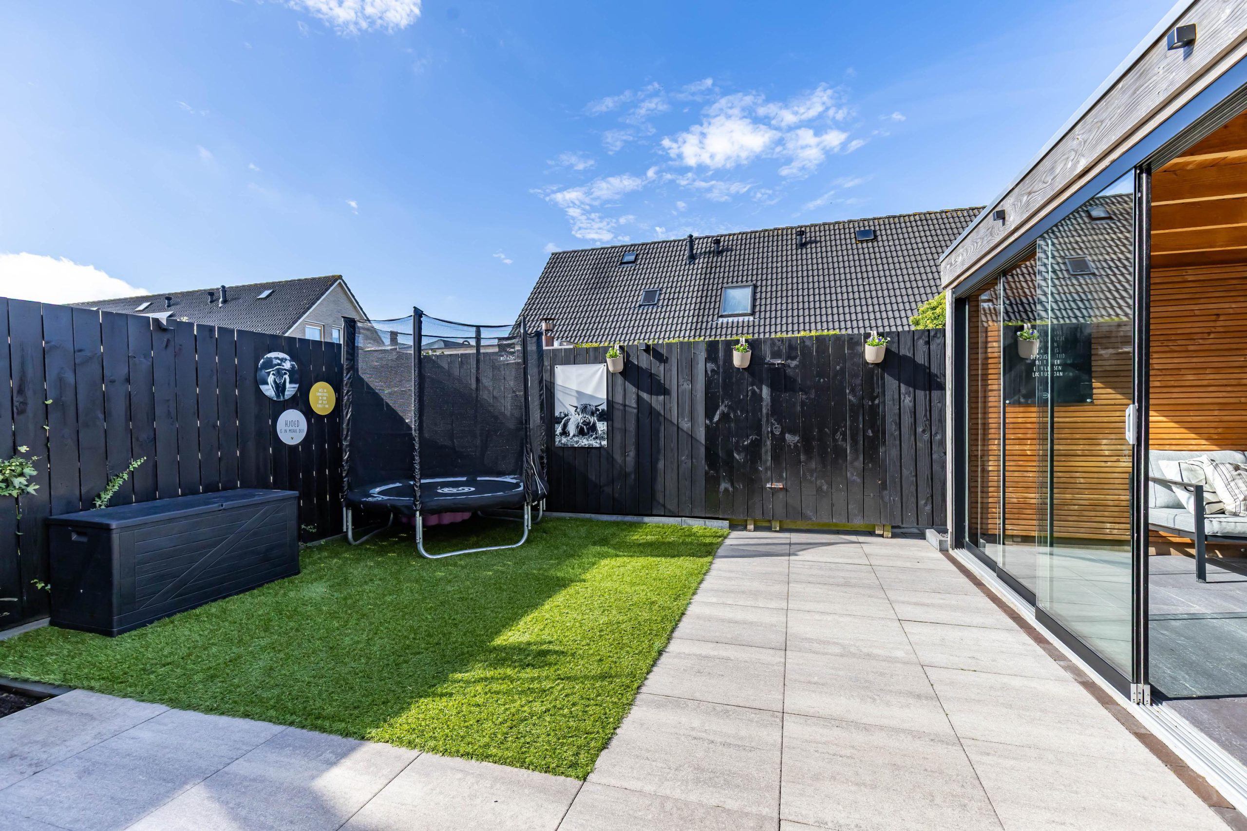 De tuin is een heerlijke plek om te ontspannen. Dankzij de royale overkapping met glazen schuifdeuren geniet je hier het hele jaar door van het buitenleven. Daarnaast is er een berging/bijkeuken met volop opbergmogelijkheden. De voortuin is 2 jaar geleden opnieuw aangelegd, de achtertuin 3 jaar geleden – beide netjes en verzorgd.