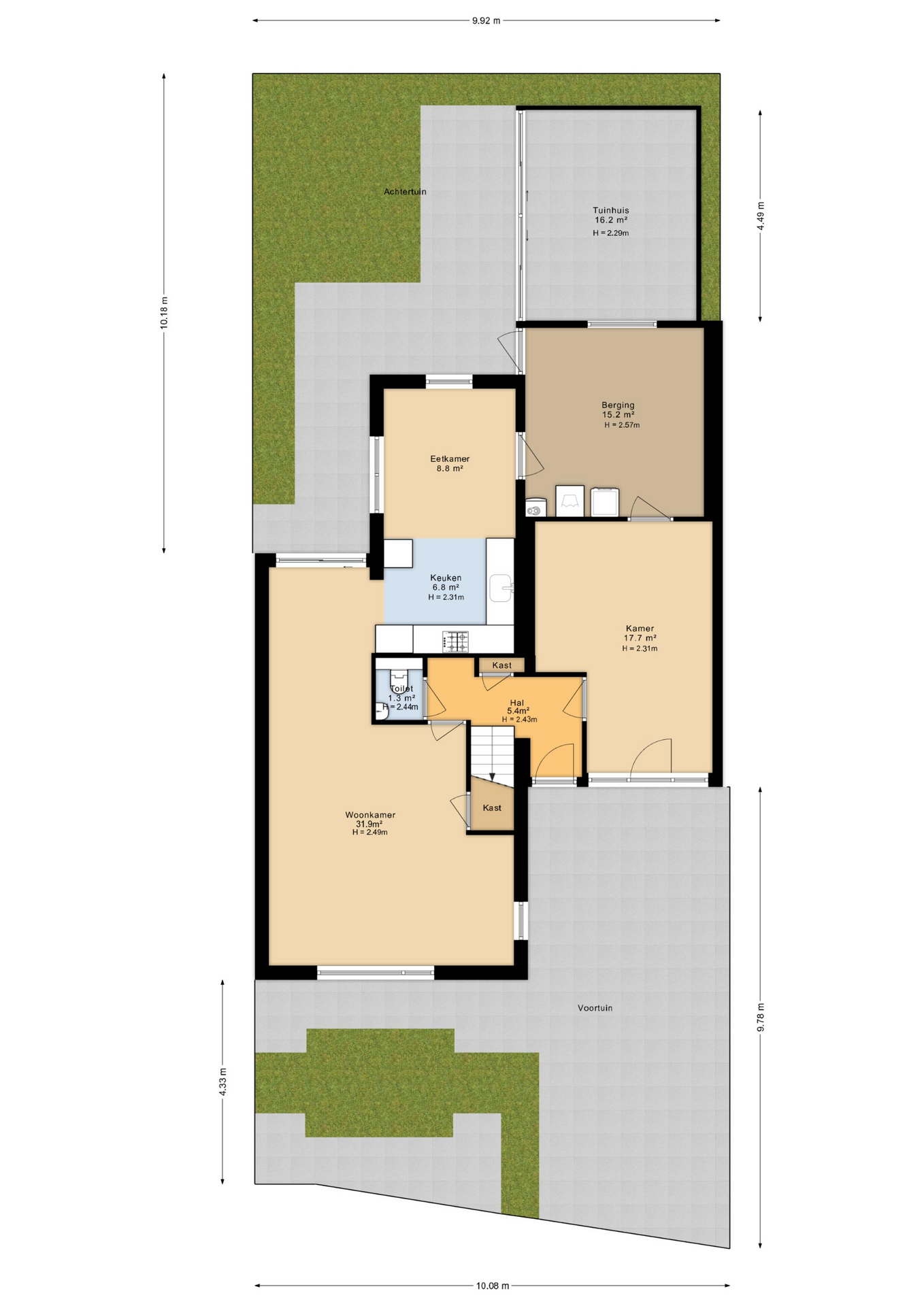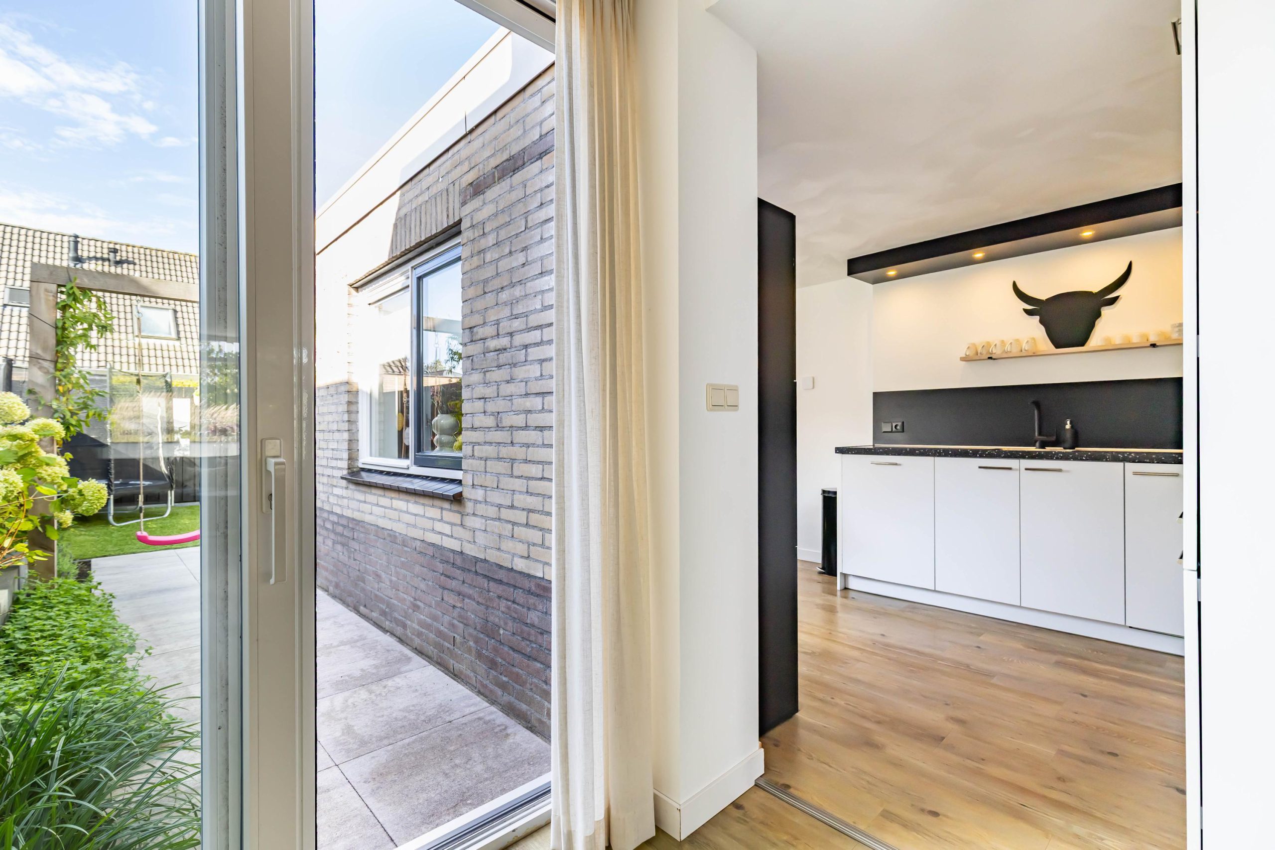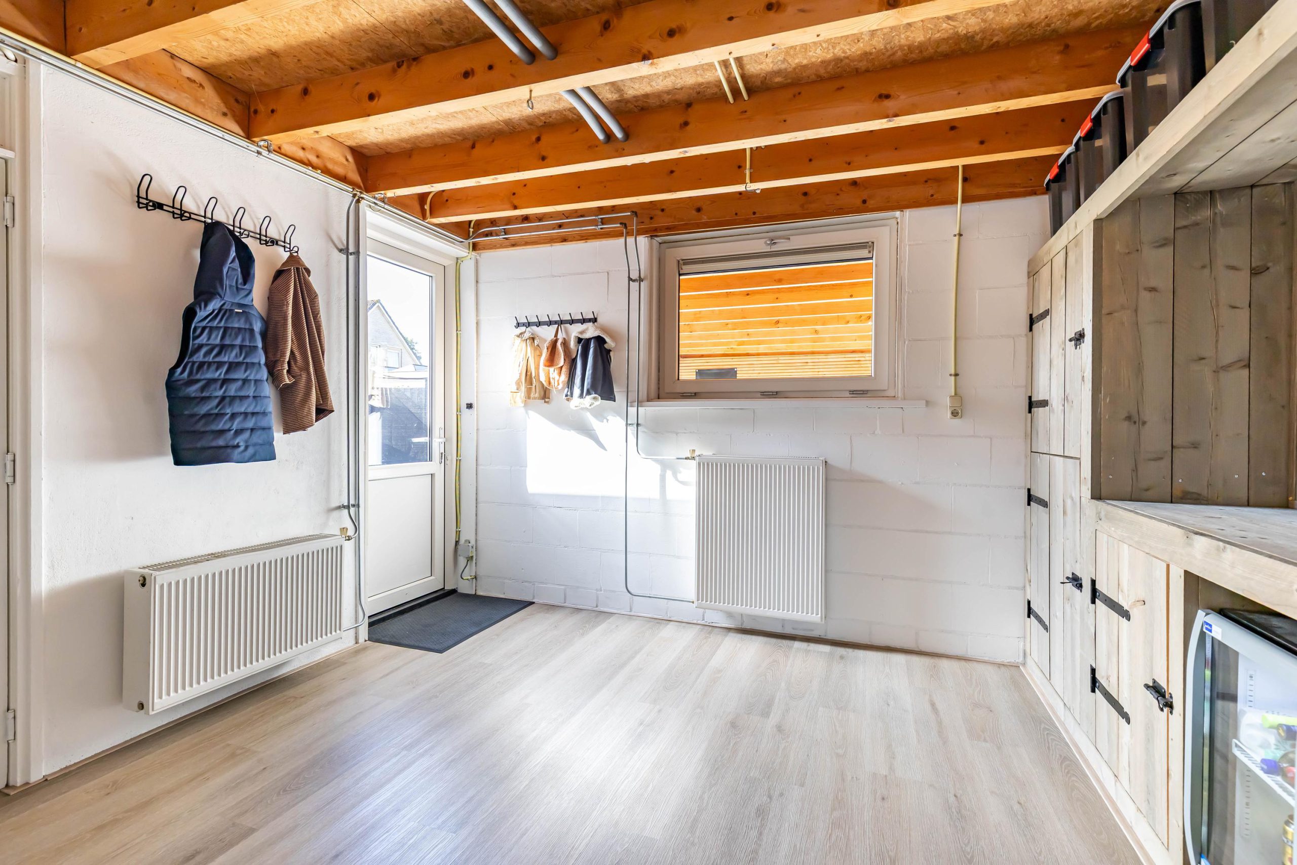 De tuin is een heerlijke plek om te ontspannen. Dankzij de royale overkapping met glazen schuifdeuren geniet je hier het hele jaar door van het buitenleven. Daarnaast is er een berging/bijkeuken met volop opbergmogelijkheden. De voortuin is 2 jaar geleden opnieuw aangelegd, de achtertuin 3 jaar geleden – beide netjes en verzorgd.