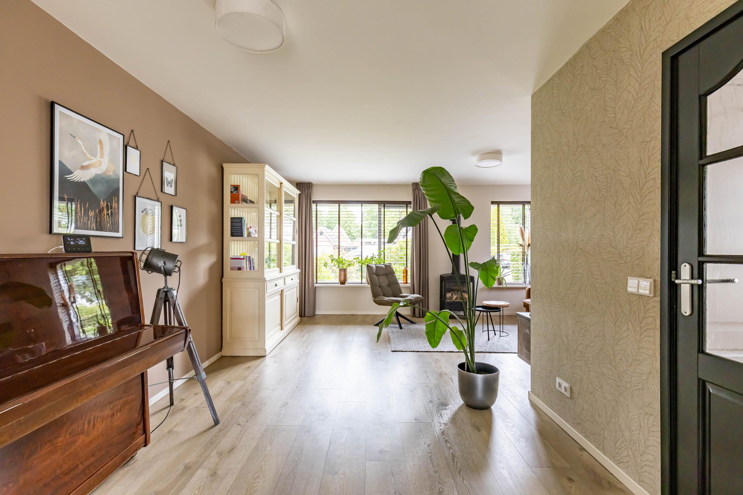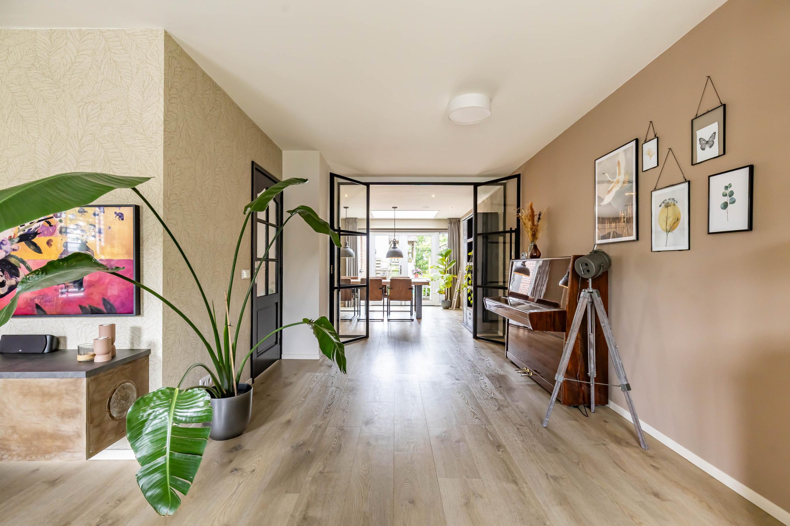 Via de entree kom je binnen in de hal met meterkast, toilet, trapopgang naar de eerste verdieping en toegang tot de woonkamer.