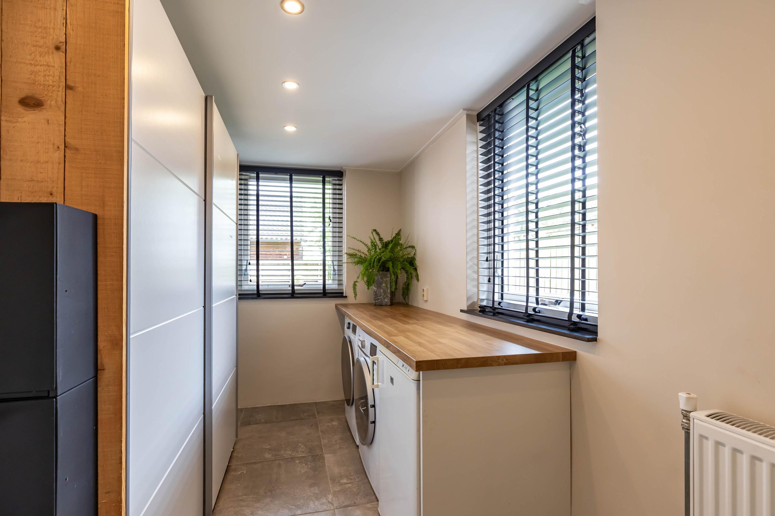 Aansluitend aan de keuken bevindt zich de ruime bijkeuken, met aansluiting voor het witgoed en voldoende ruimte voor voorraad of extra apparatuur.