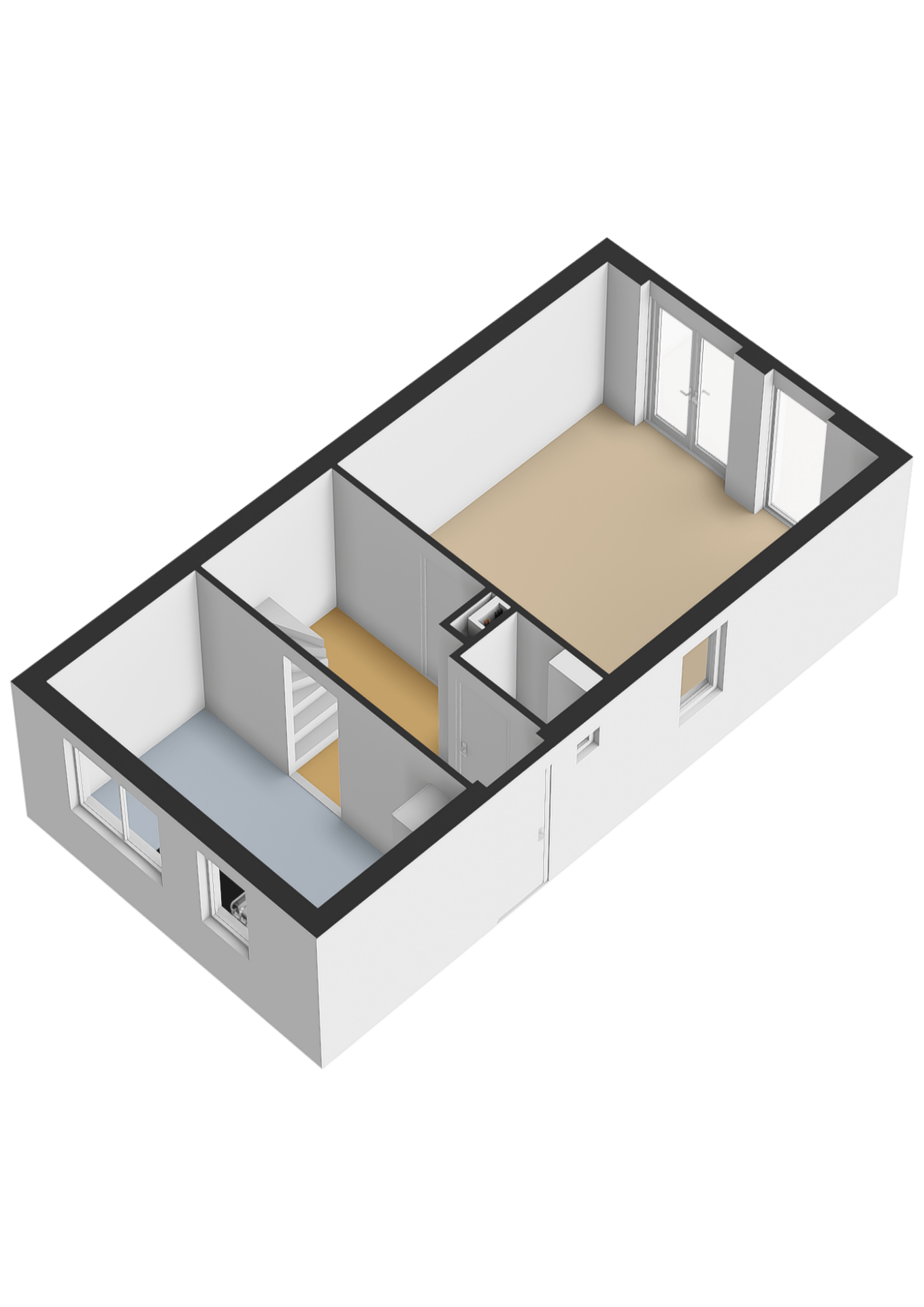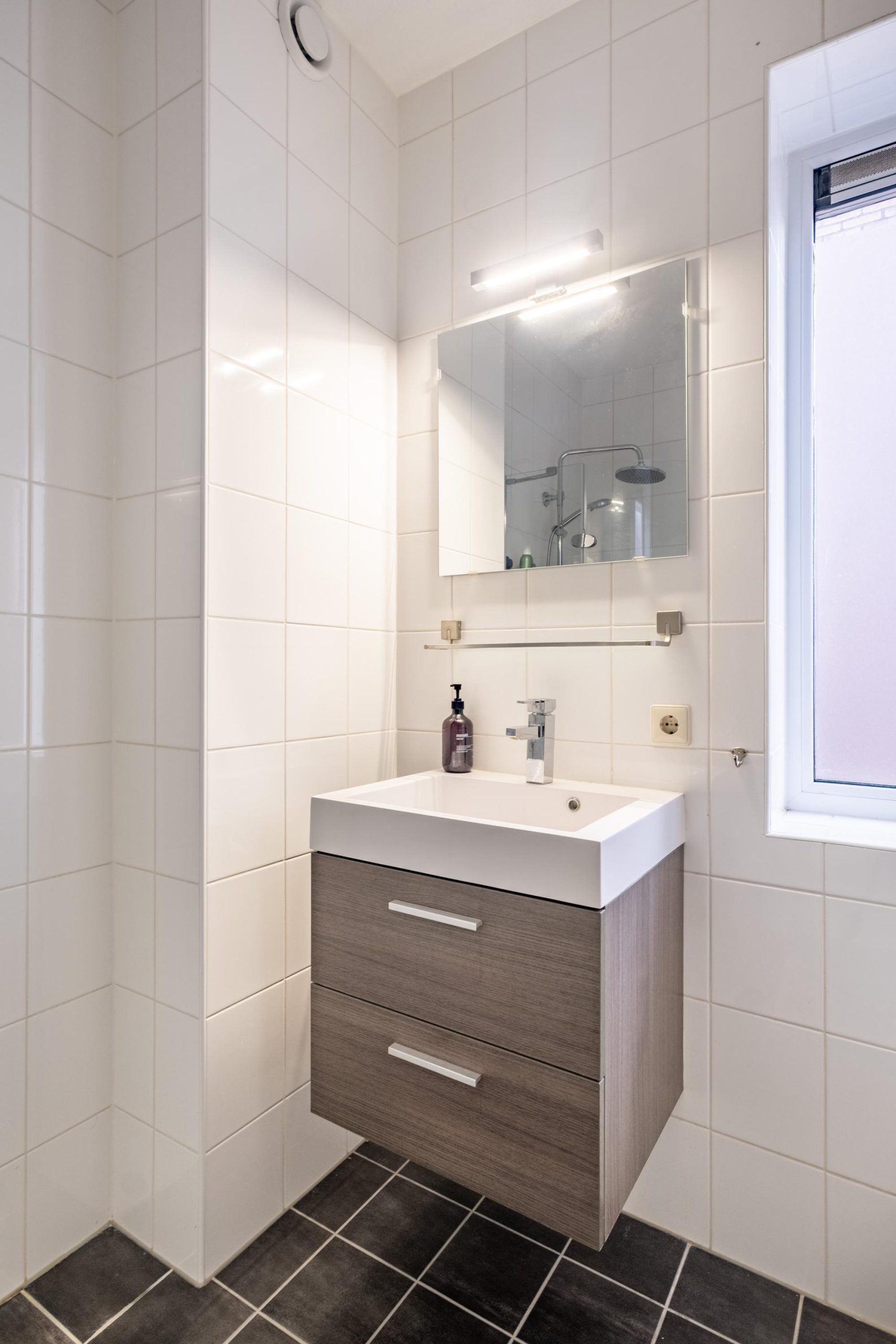 Op de eerste verdieping vind je twee slaapkamers en een badkamer met douche, wastafelmeubel met opbergruimte en witgoedaansluiting. Dankzij de grote ramen zijn de ruimtes licht en prettig in gebruik. Deze verdieping biedt volop mogelijkheden voor slapen, werken of hobby’s. Ook vind je hier een praktische berging, ideaal voor het opbergen van spullen die je liever uit het zicht houdt.