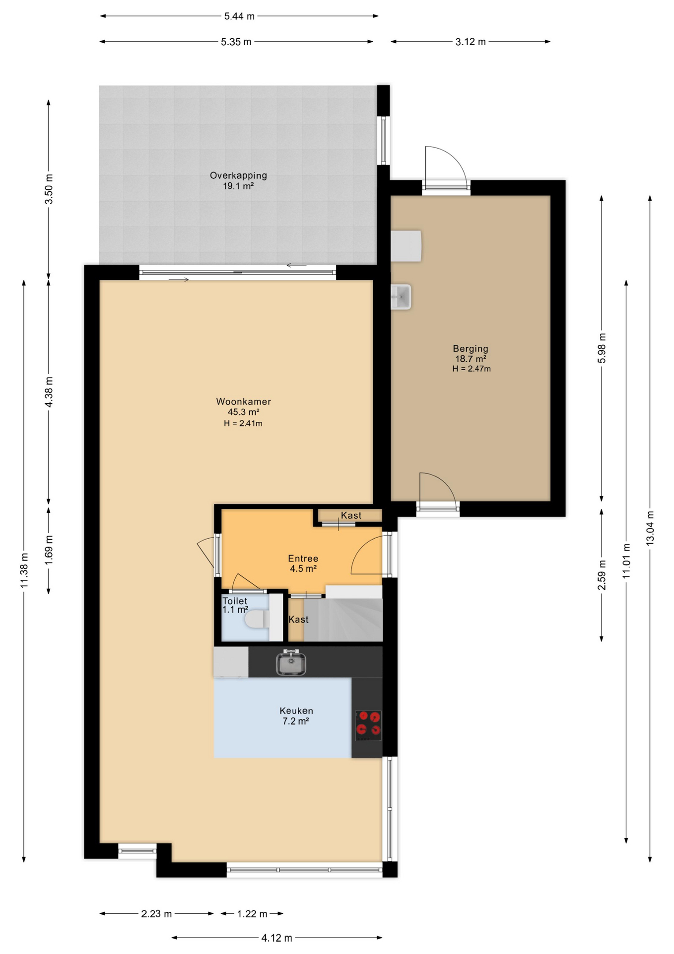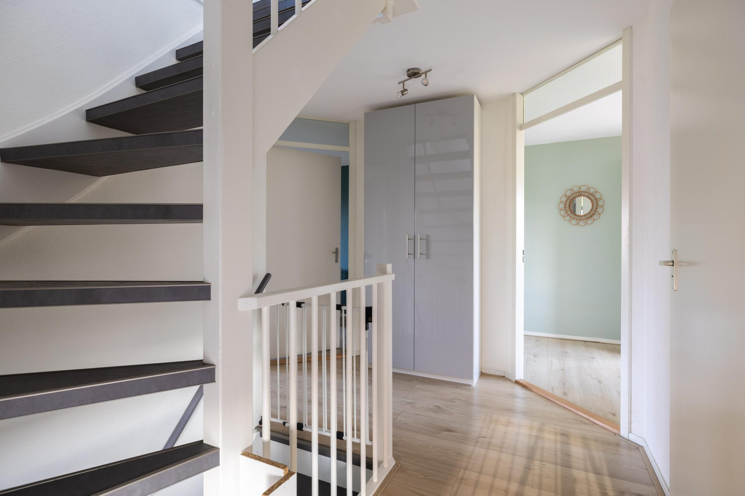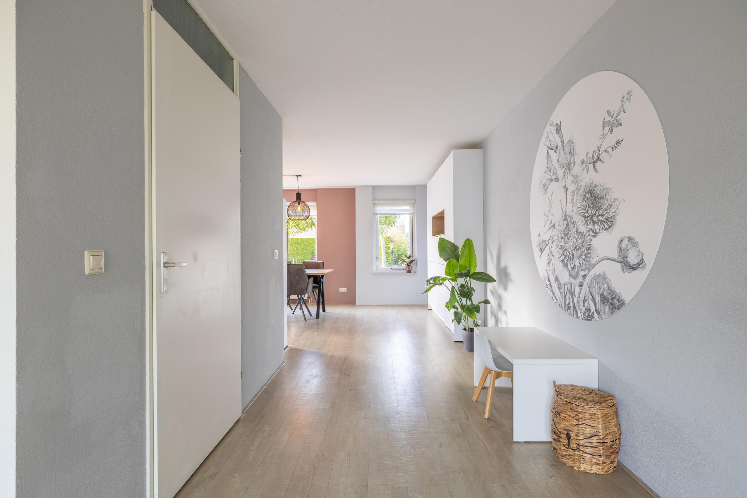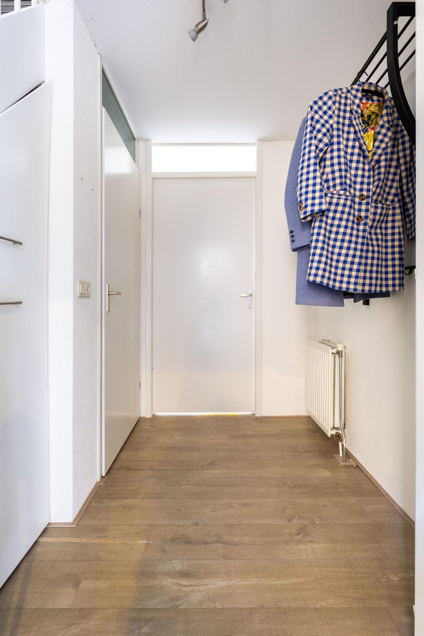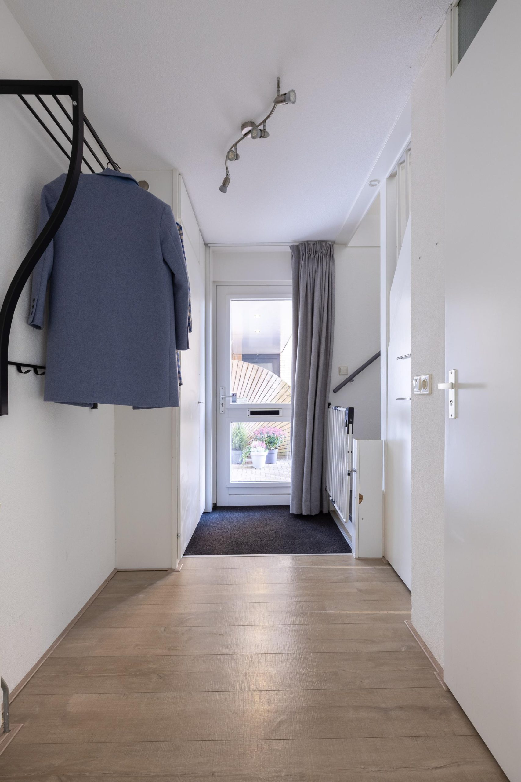 Je parkeert op je eigen oprit, met directe toegang tot de garage. Via de overdekte entree stap je binnen in een nette hal met toilet, een praktische trapkast voor het opbergen van spullen.