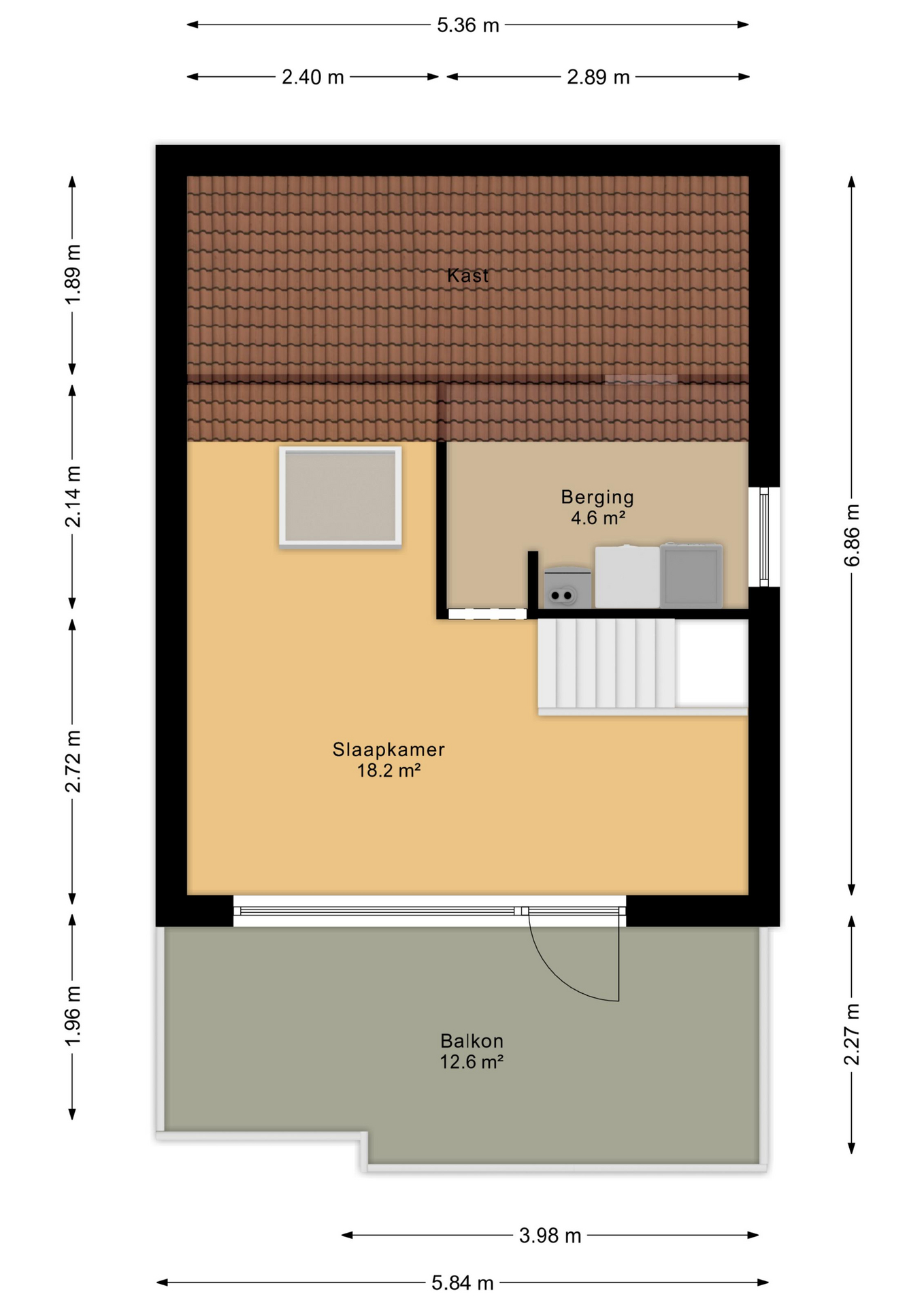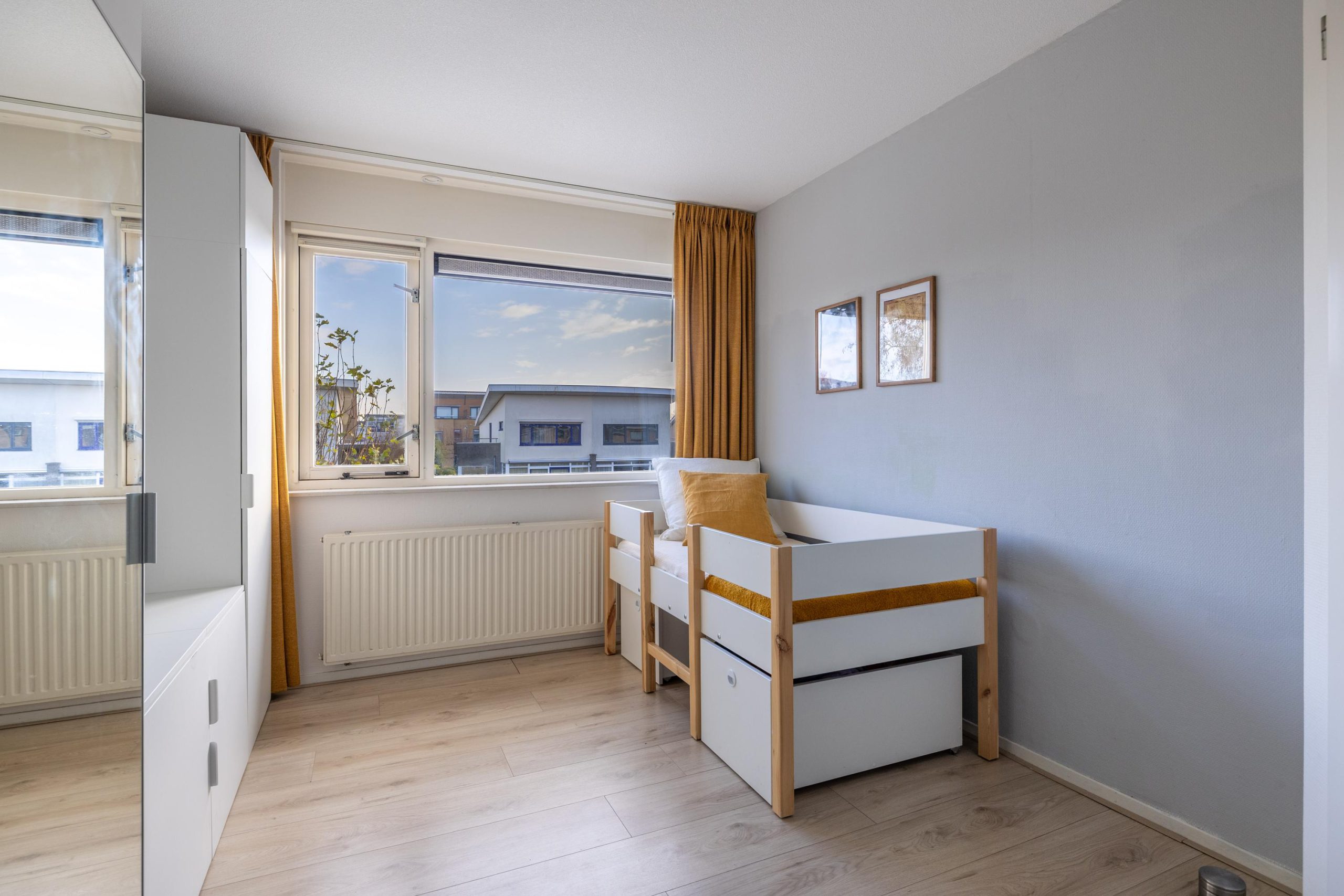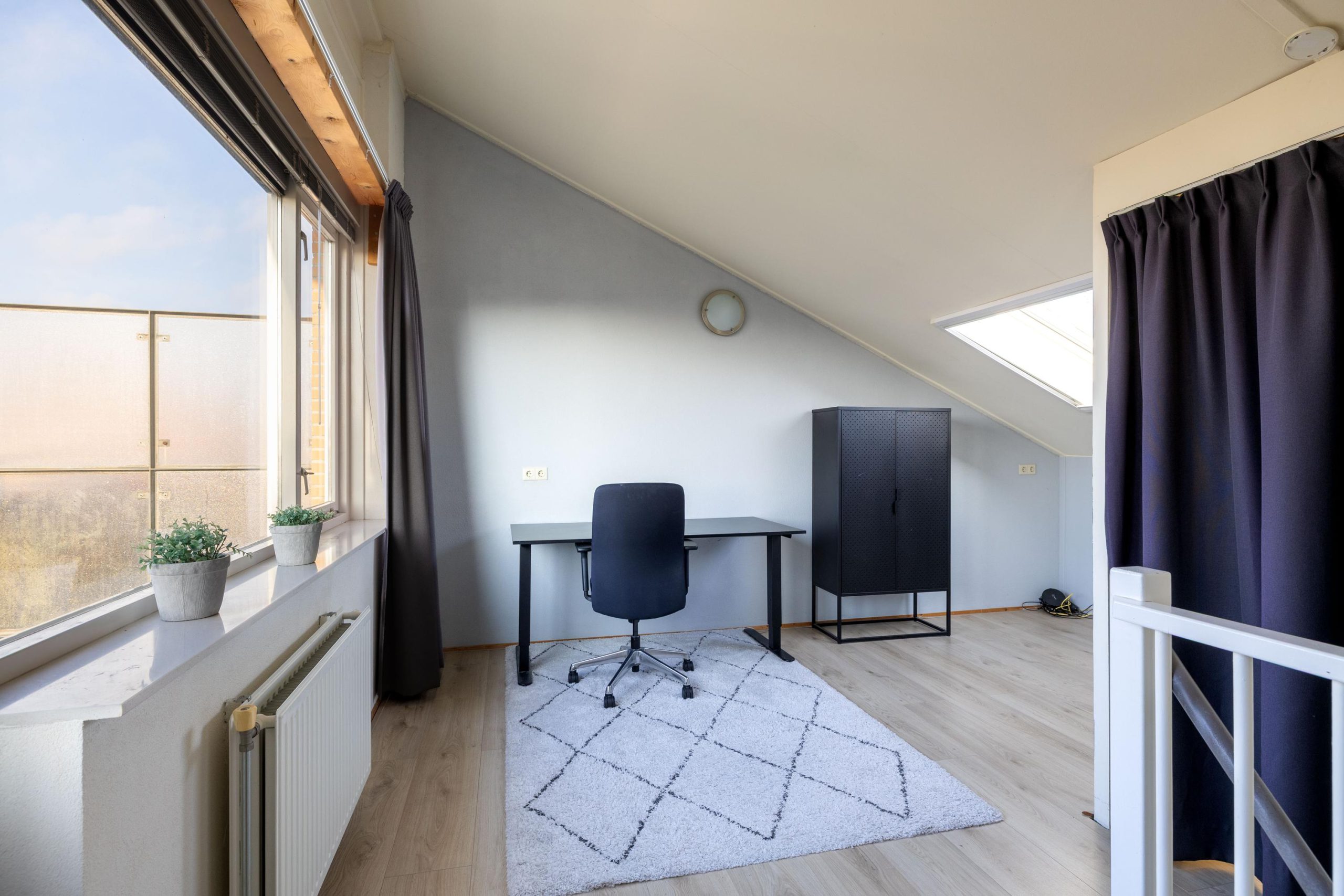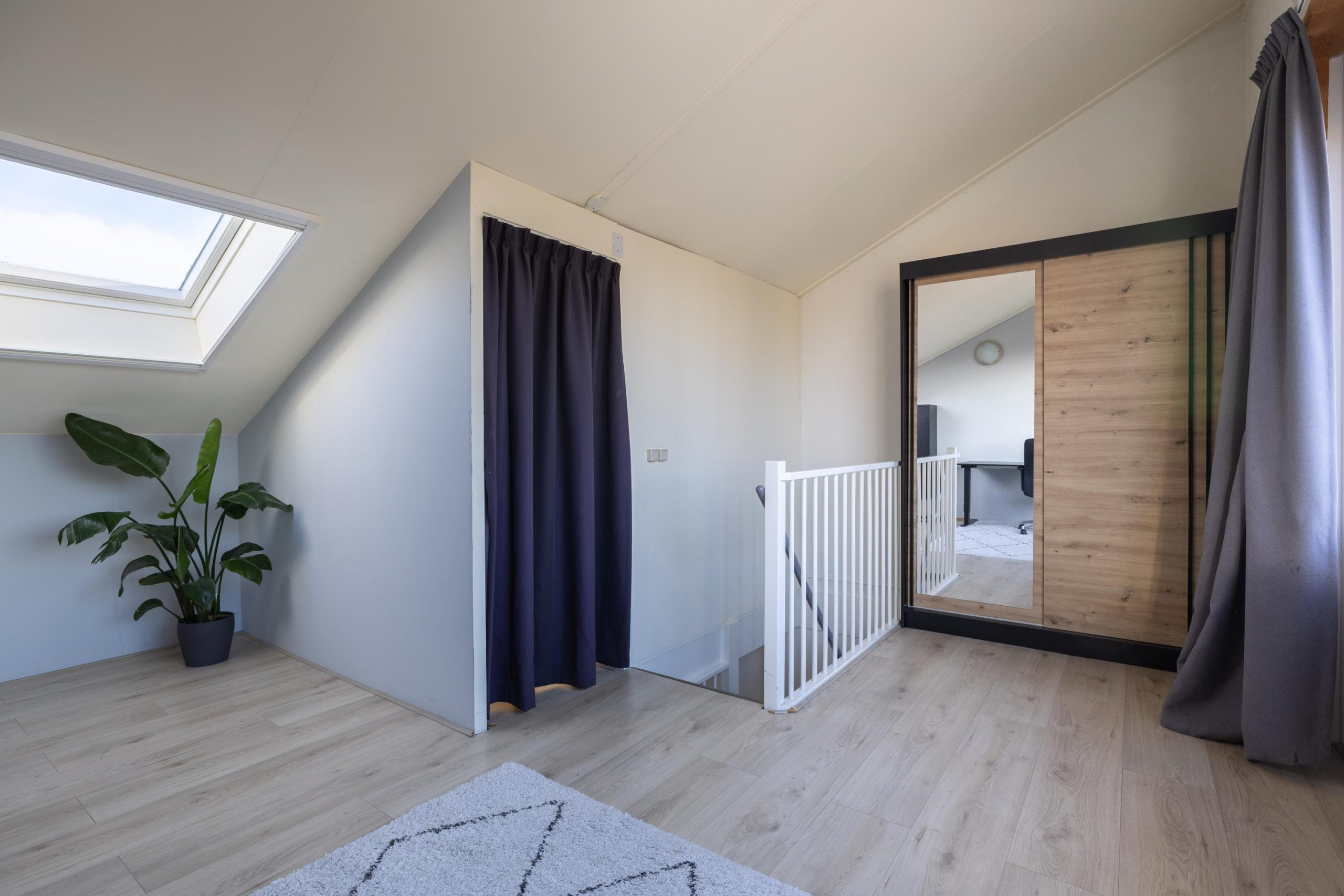 De tweede verdieping biedt een verrassend royale extra kamer, met handige bergruimte. Vanuit deze verdieping stap je bovendien zo op het zonnige dakterras, een heerlijke plek om je even terug te trekken of om in alle rust van het uitzicht te genieten. De balkon die bij deze ruimte extra kamer is ook nog eens gelegen op het zuiden.