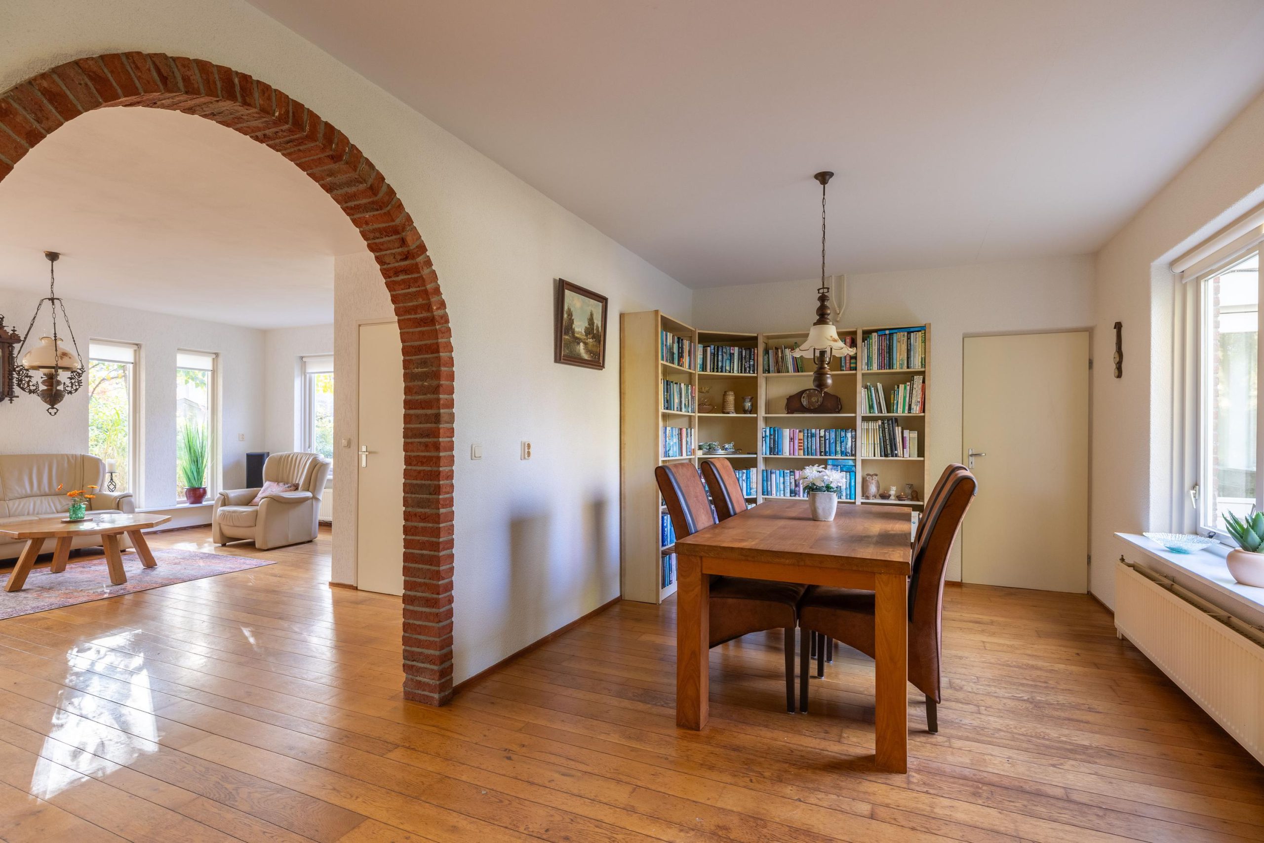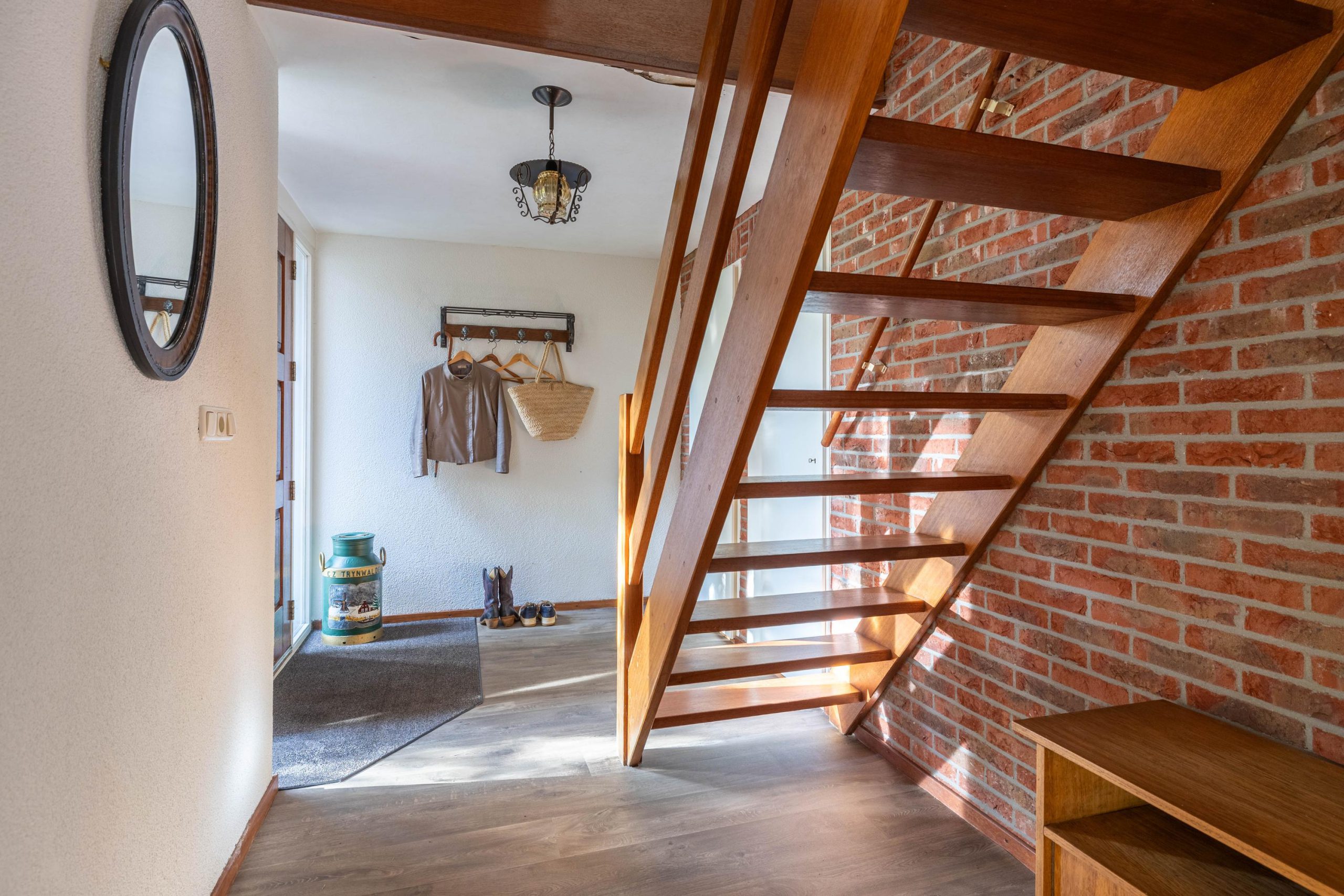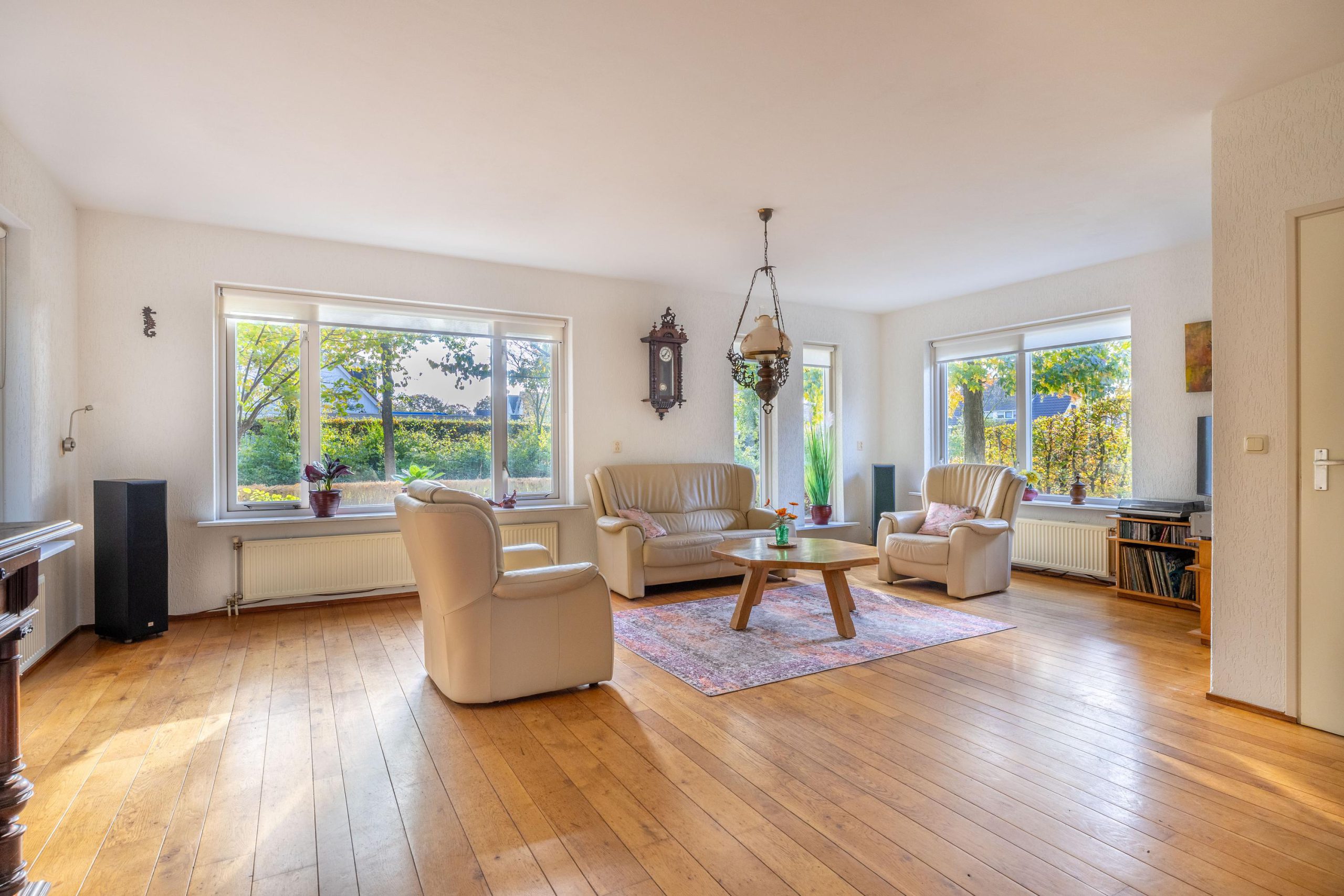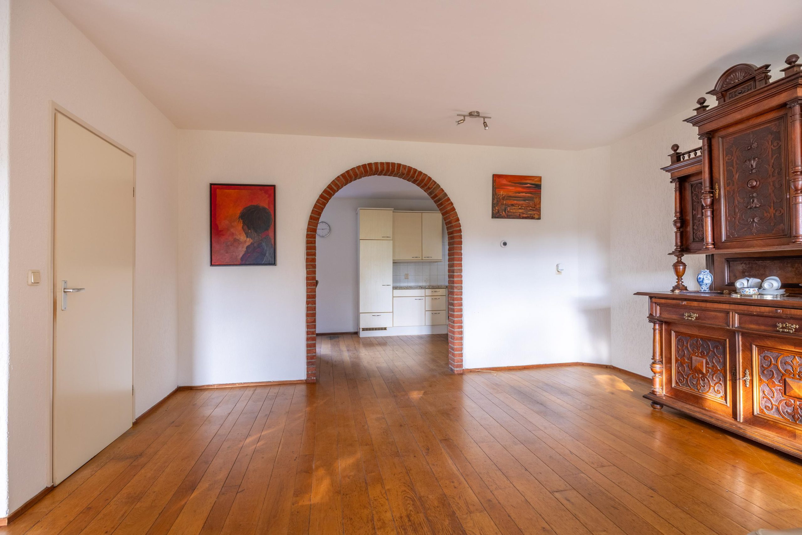 Je komt binnen in de hal met meterkast en toilet. Vanuit hier loop je door naar de lichte woonkamer met grote raampartijen en dubbel glas. De houten vloer zorgt voor een warme uitstraling, terwijl de open indeling de ruimte extra laat spreken.