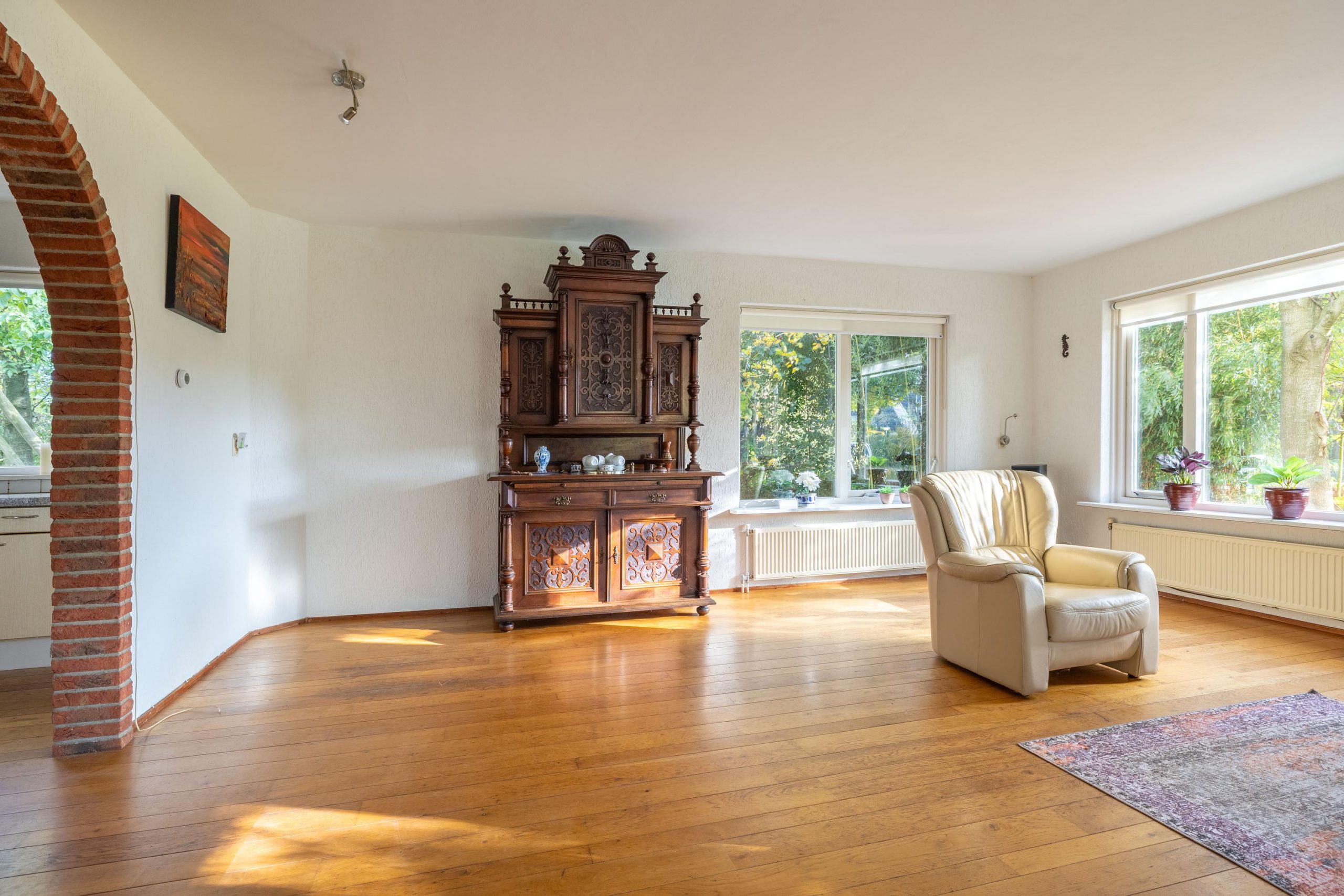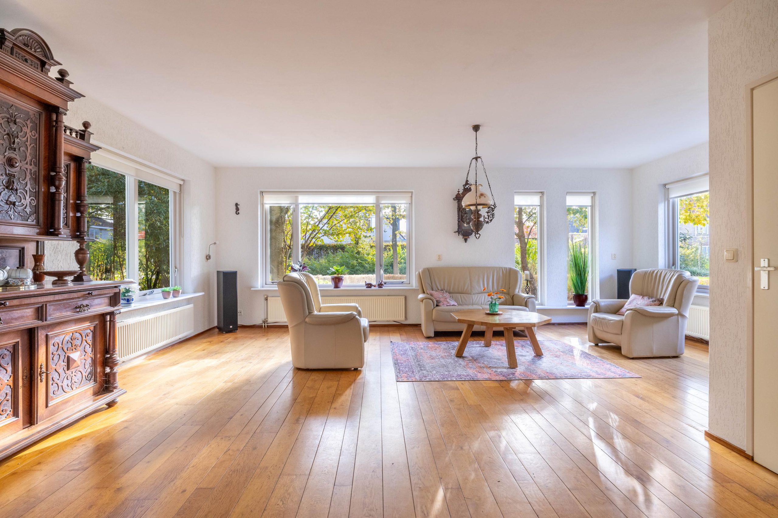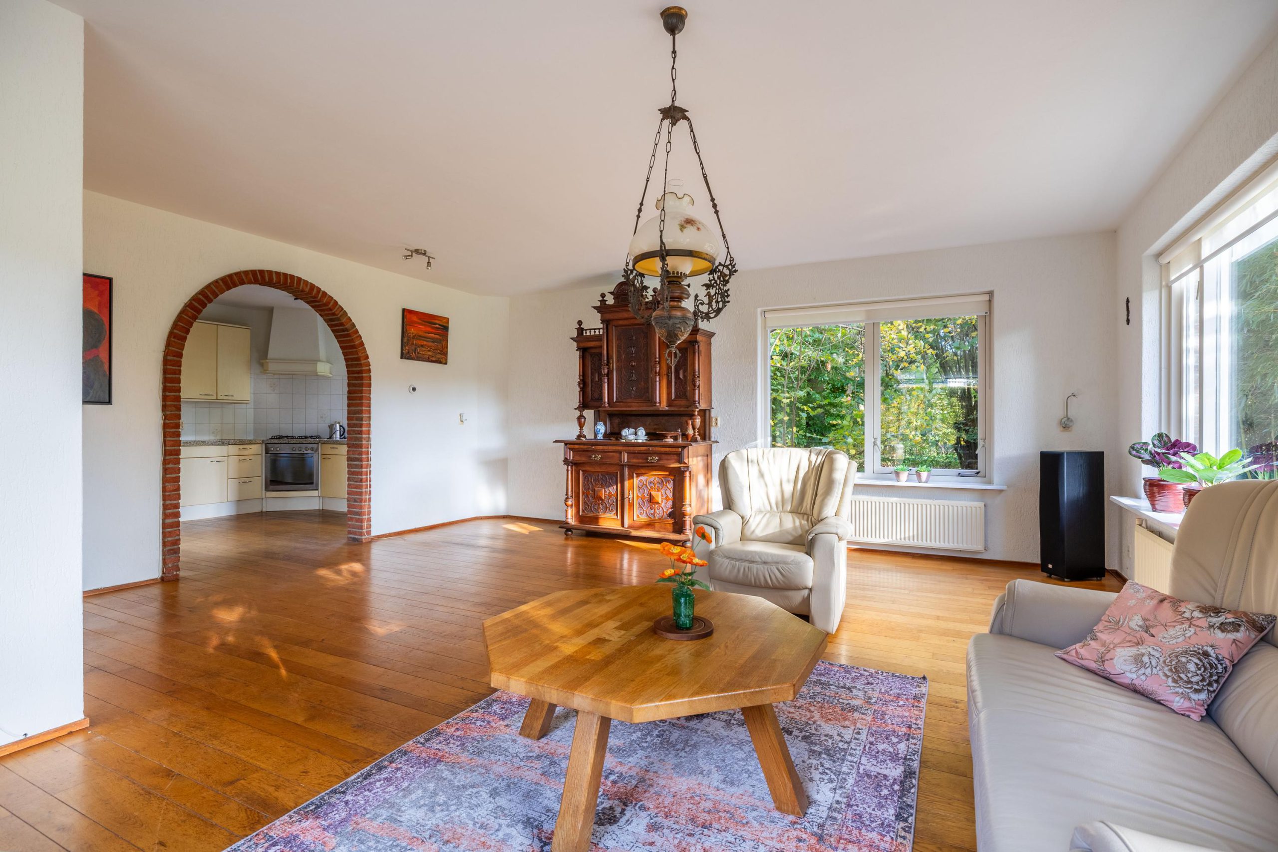 Je komt binnen in de hal met meterkast en toilet. Vanuit hier loop je door naar de lichte woonkamer met grote raampartijen en dubbel glas. De houten vloer zorgt voor een warme uitstraling, terwijl de open indeling de ruimte extra laat spreken.