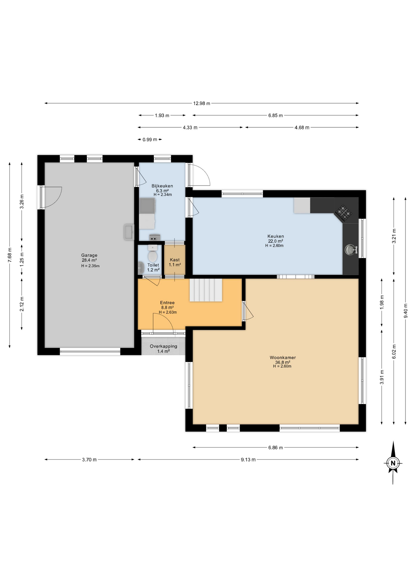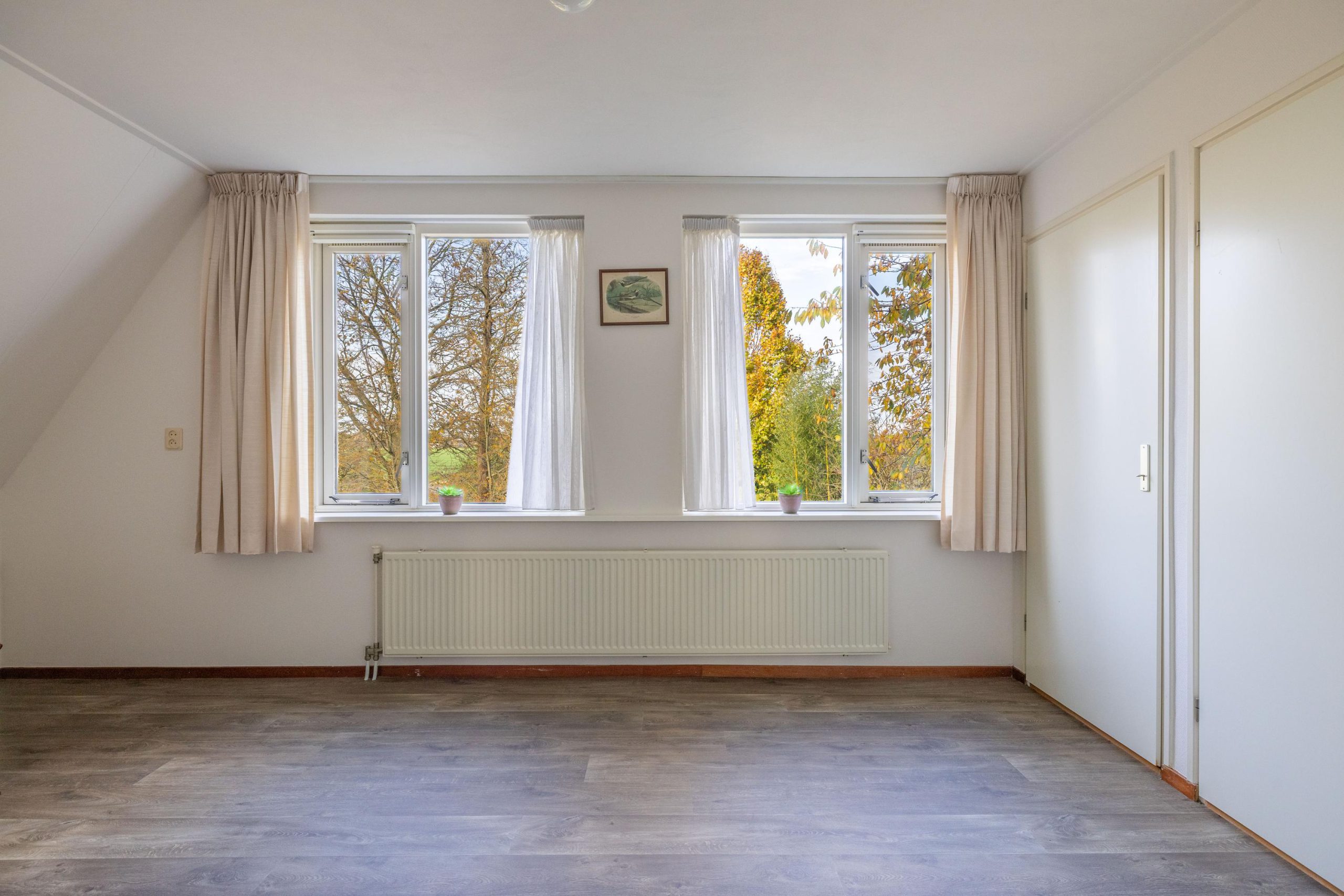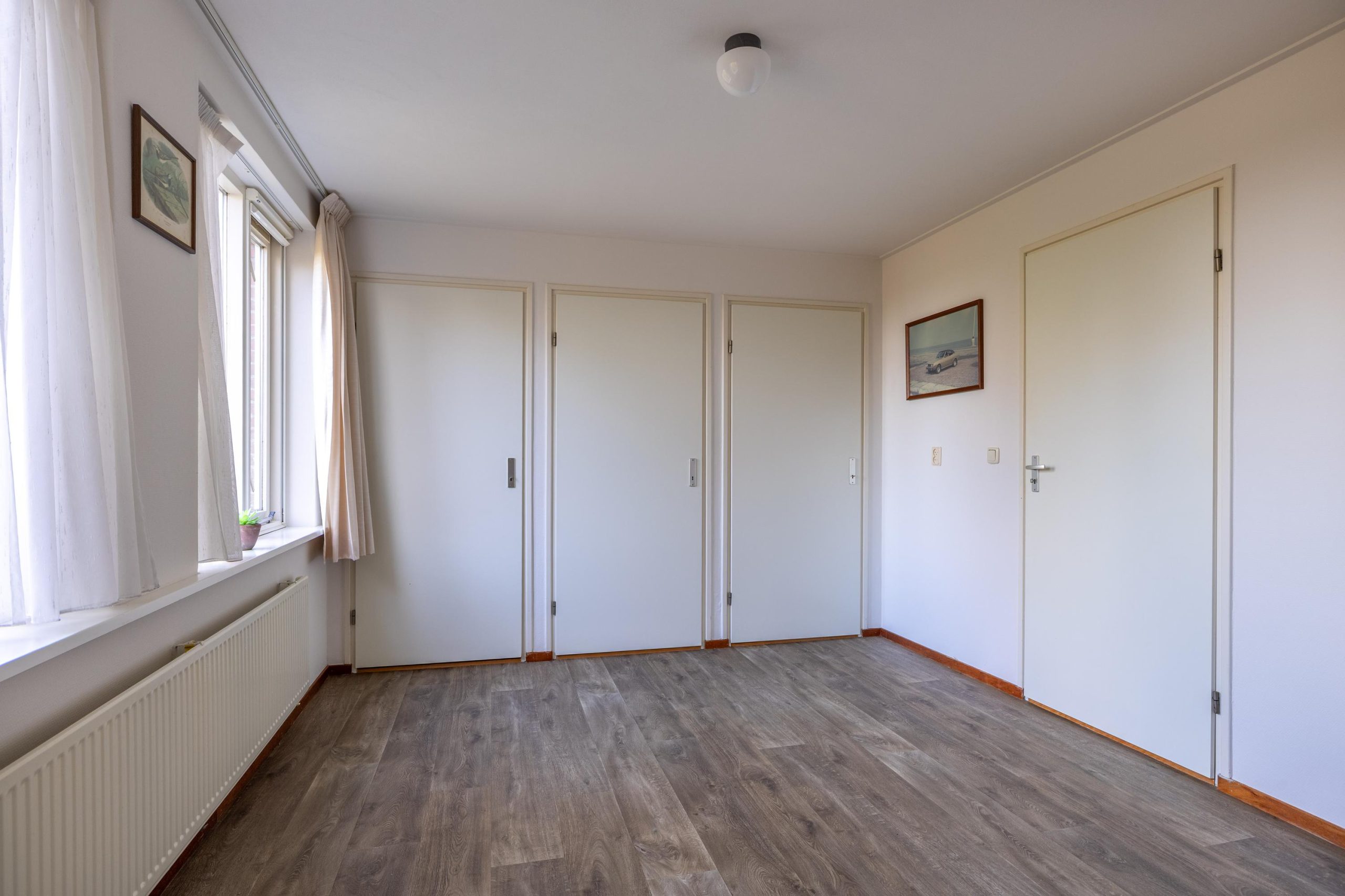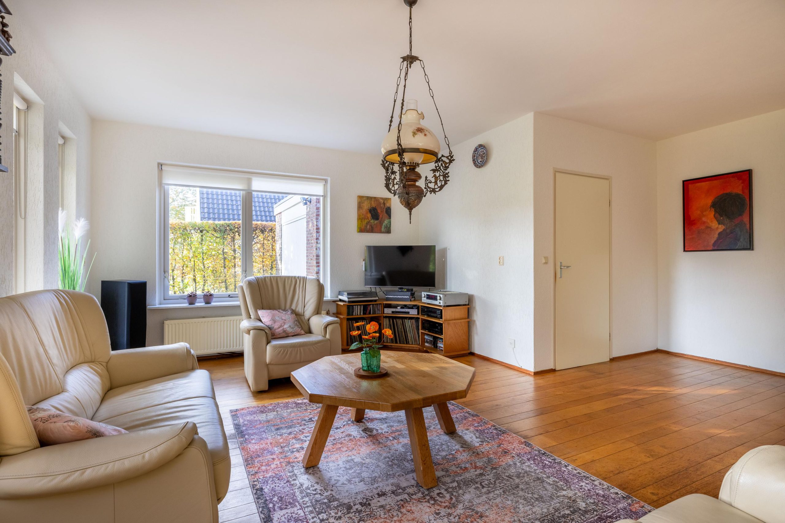 Je komt binnen in de hal met meterkast en toilet. Vanuit hier loop je door naar de lichte woonkamer met grote raampartijen en dubbel glas. De houten vloer zorgt voor een warme uitstraling, terwijl de open indeling de ruimte extra laat spreken.