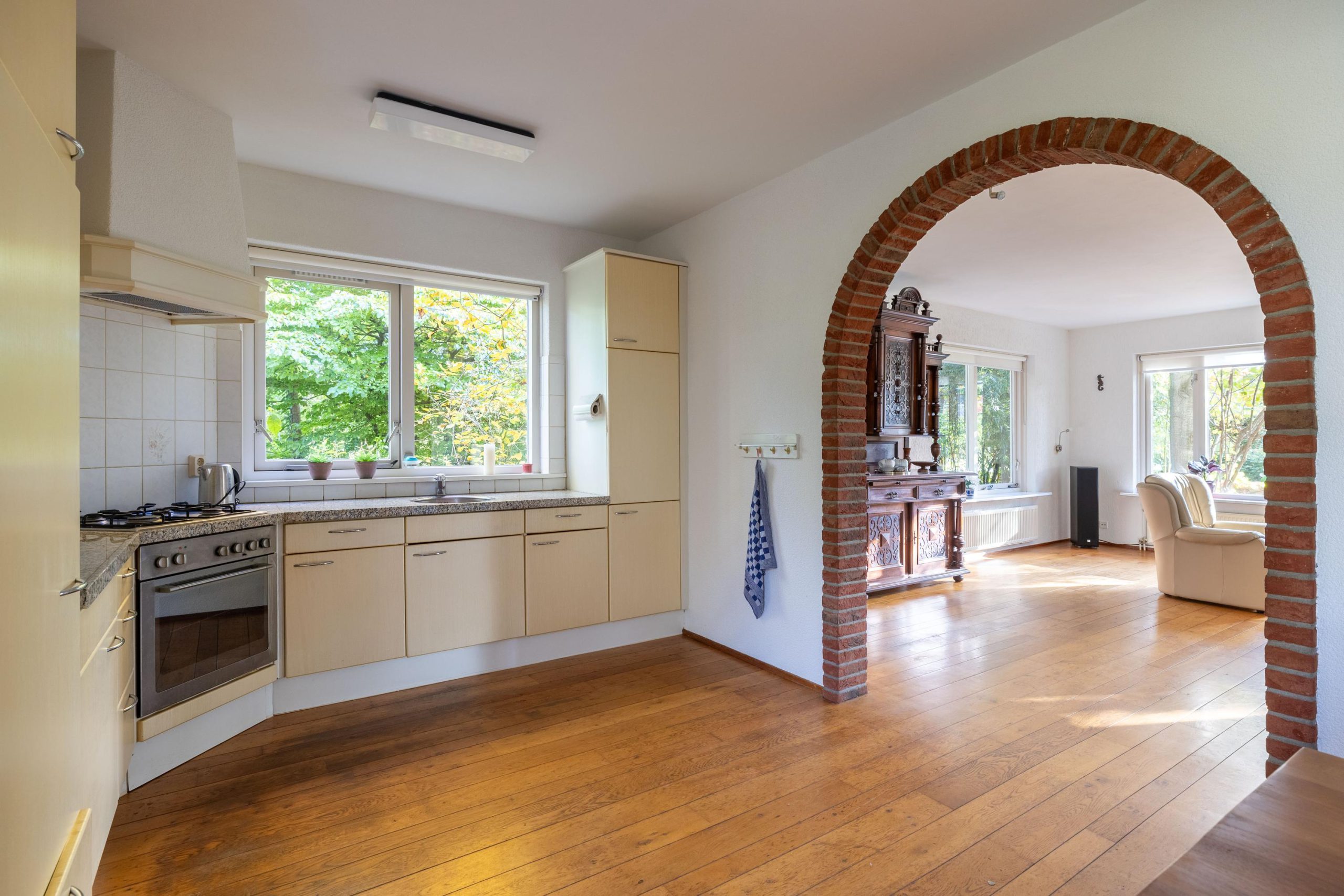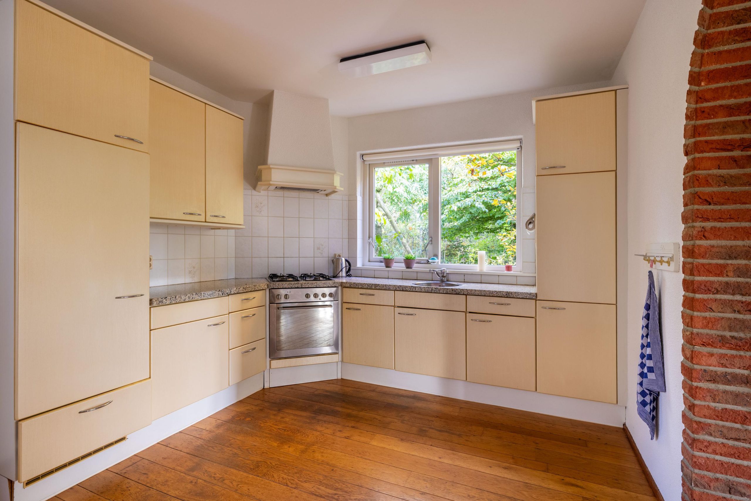 De keuken is praktisch ingericht en voorzien van een koelkast, oven en gaskookplaat. Aansluitend bevindt zich de bijkeuken met de Intergas cv-ketel (2012) en de aansluiting voor de wasmachine – handig en functioneel!