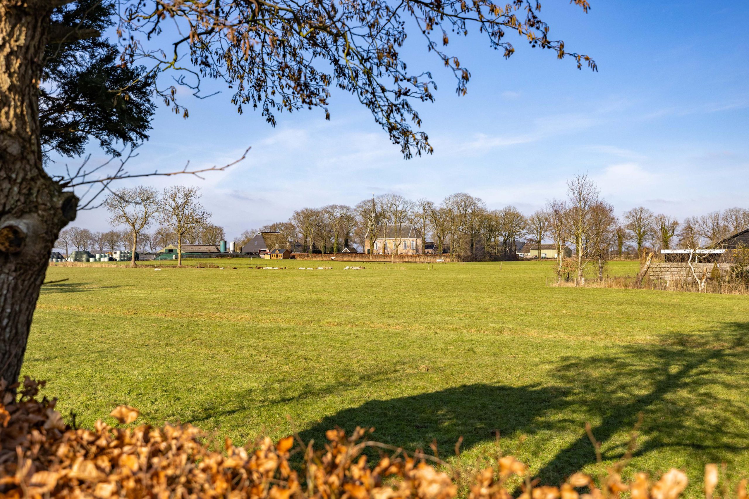 Vrij uitzicht over weiland en landschap