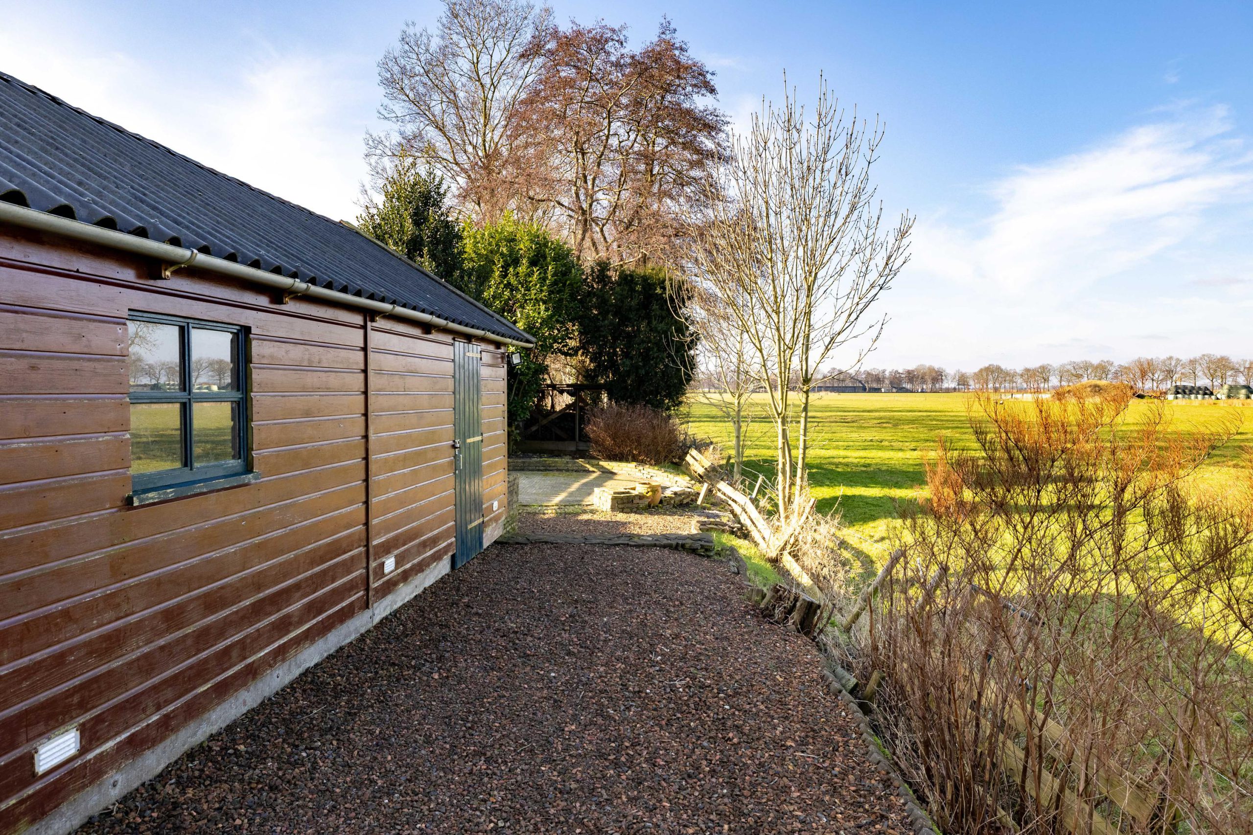 Buiten beschik je over een ruime schuur, ideaal voor hobby, opslag of het stallen van fietsen. De voortuin geeft de woning een vriendelijke aanblik en de achtertuin kun je helemaal naar eigen wens inrichten. Een terras, een moestuin of juist lekker onderhoudsvriendelijk. Wat je ook kiest, het uitzicht is en blijft het goud van deze woning. De schaapjes die je ’s ochtends begroeten krijg je er gewoon bij.