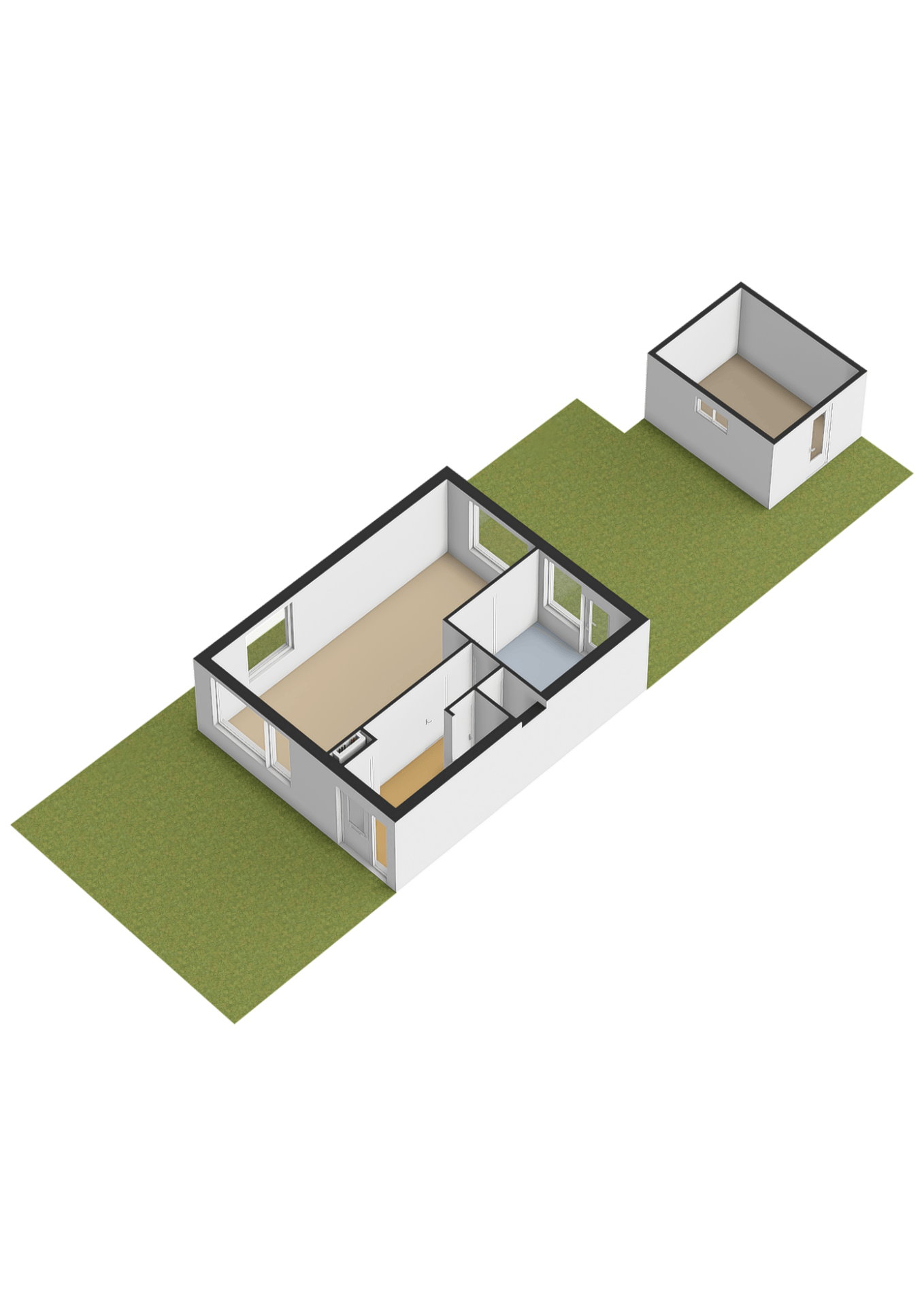 Zonnige tuin met stenen berging