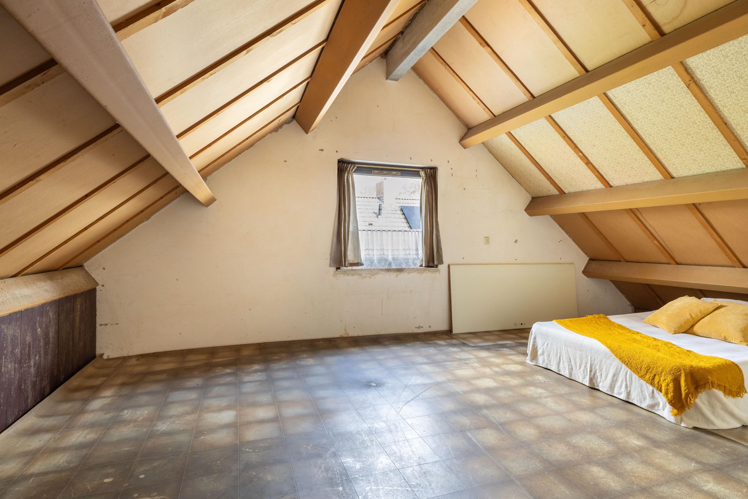 De tweede verdieping bereik je via een vaste trap. Hier vind je een ruime zolderkamer met aan de rechterzijde een berging, waar ook de meterkast is geplaatst. Deze verdieping biedt volop mogelijkheden, bijvoorbeeld voor een extra slaapkamer, werkruimte of hobbykamer.