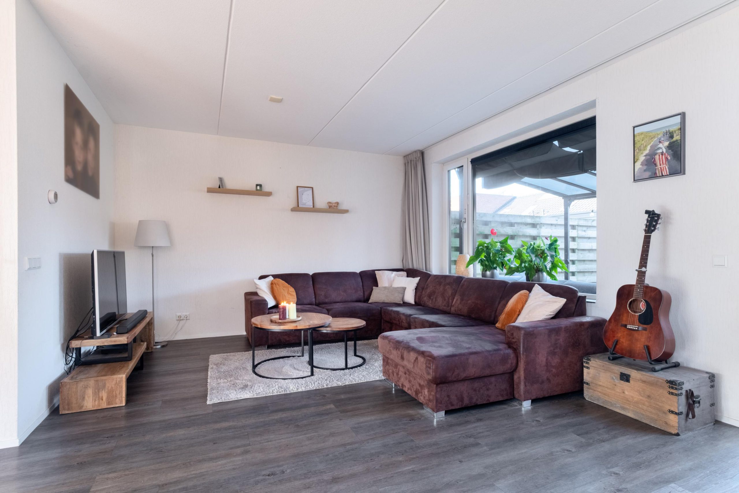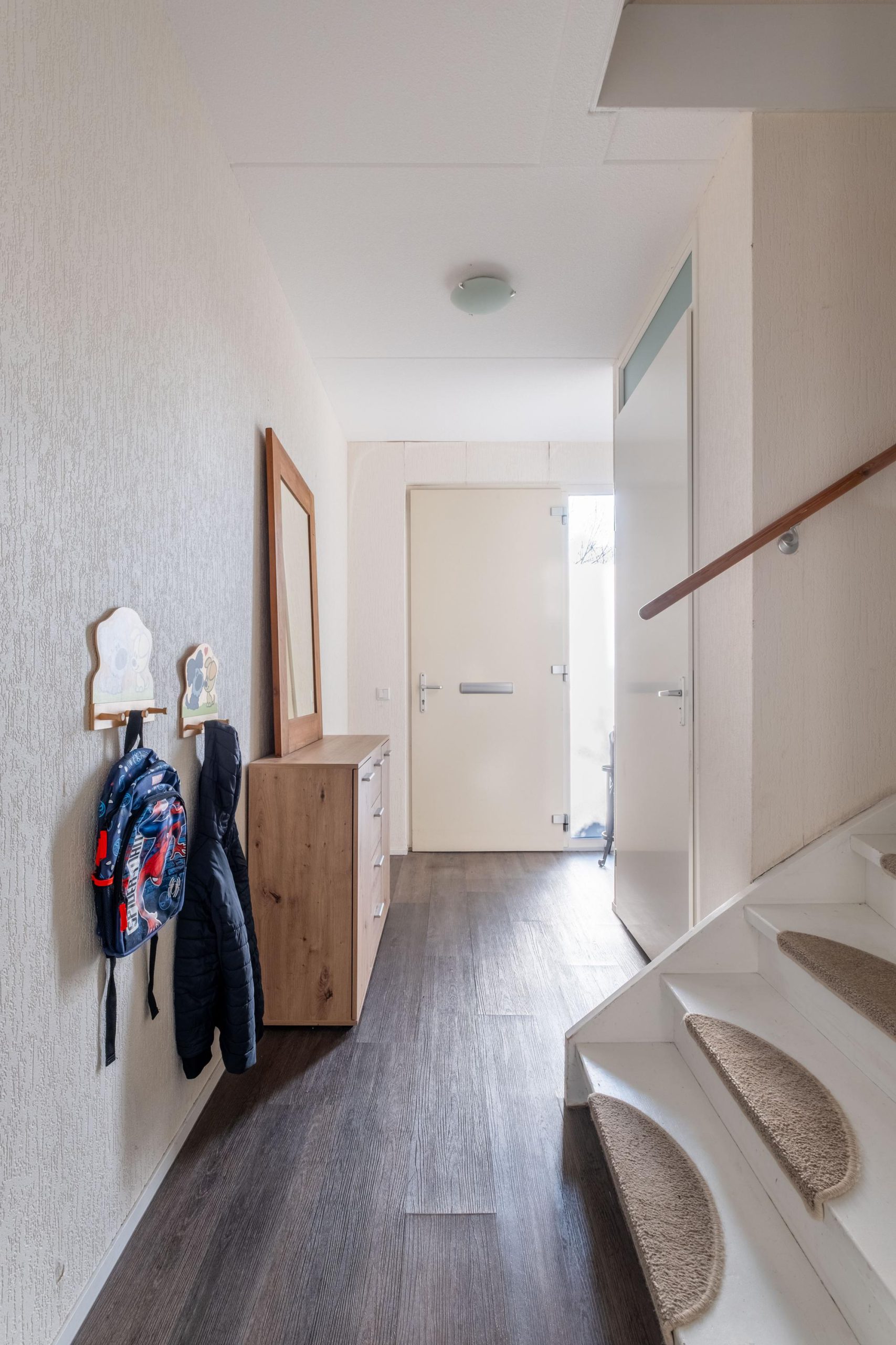 Via de voortuin kom je aan bij de woning. De entree voelt meteen verzorgd en overzichtelijk, met in de hal de meterkast en het toilet. Vanuit hier loop je door naar de woonkamer, waar het daglicht royaal naar binnen valt. De click PVC-vloer met vloerverwarming zorgt voor comfort en een rustige uitstraling. Een fijne leefruimte waar ontspannen wonen centraal staat.