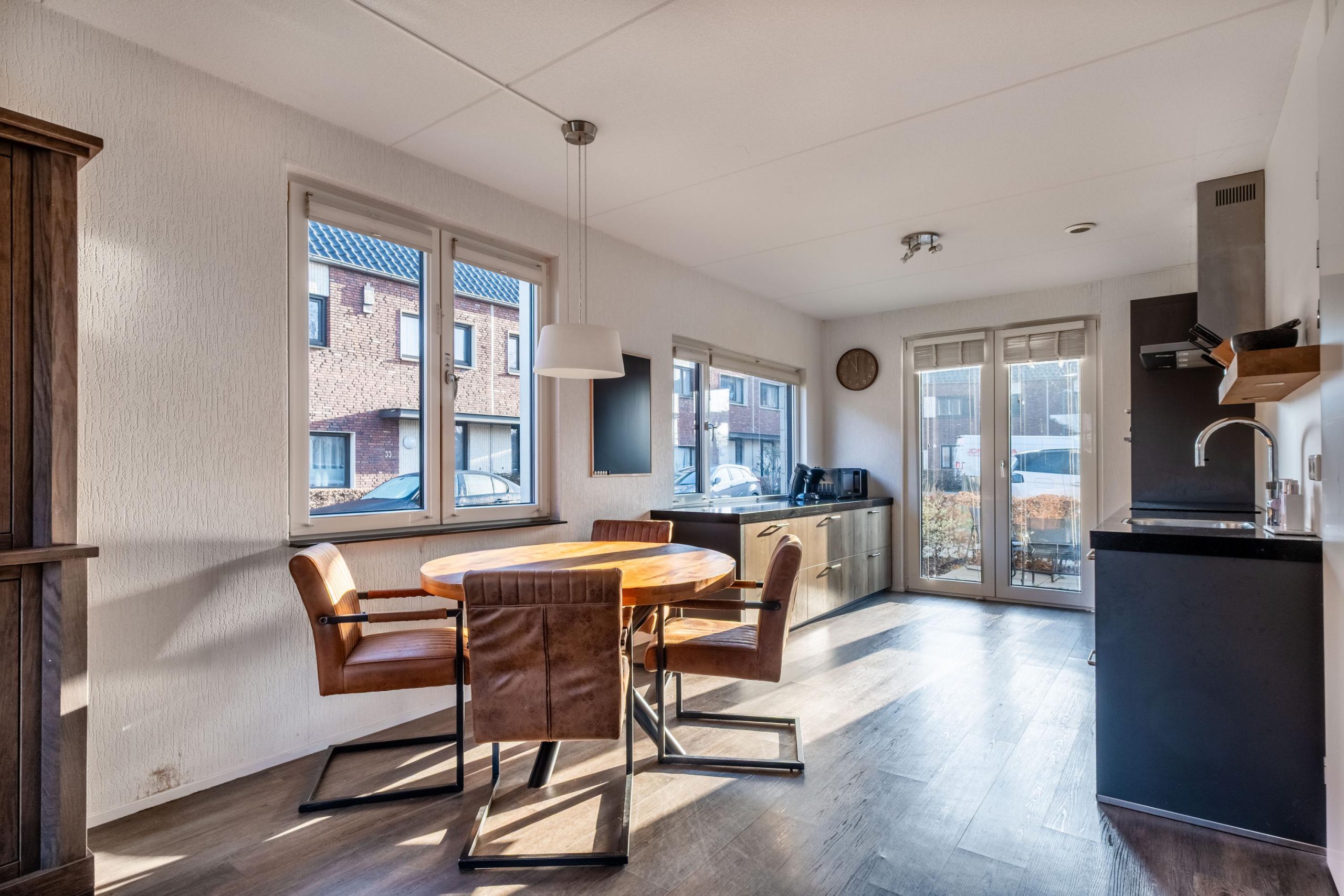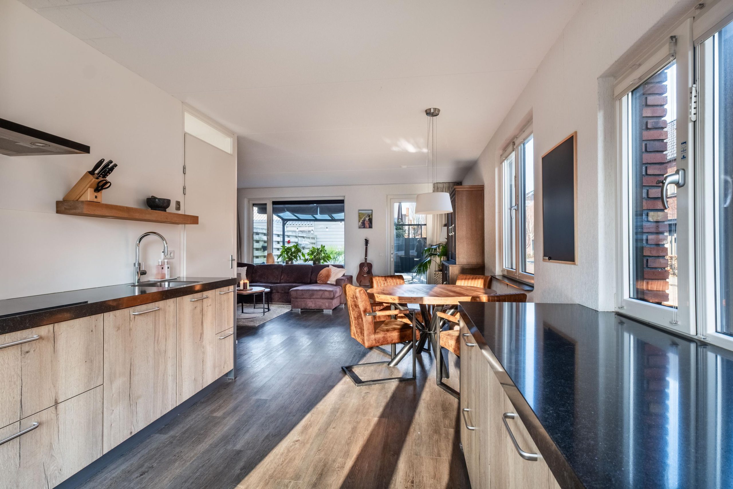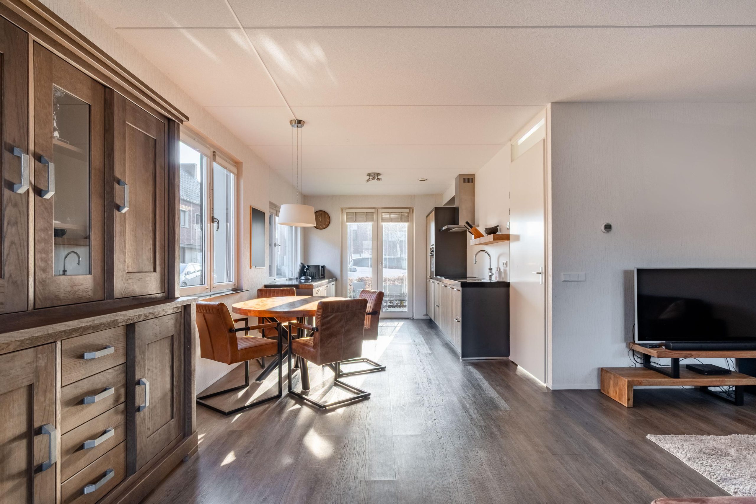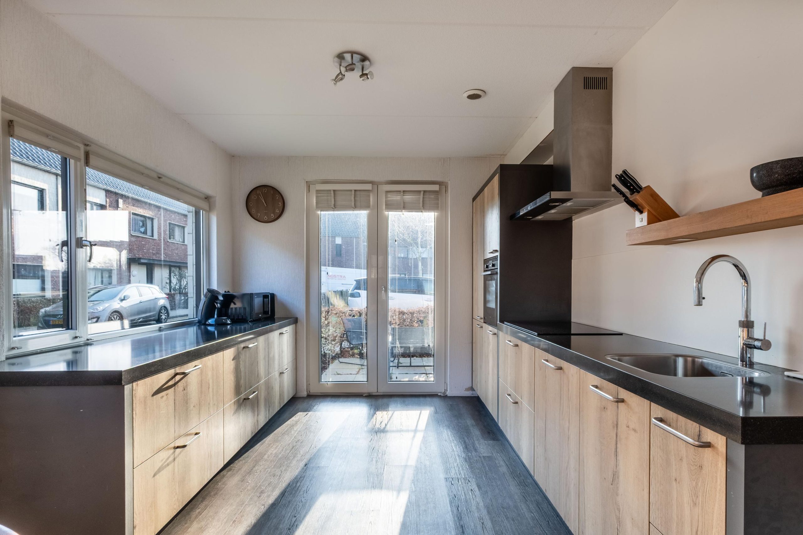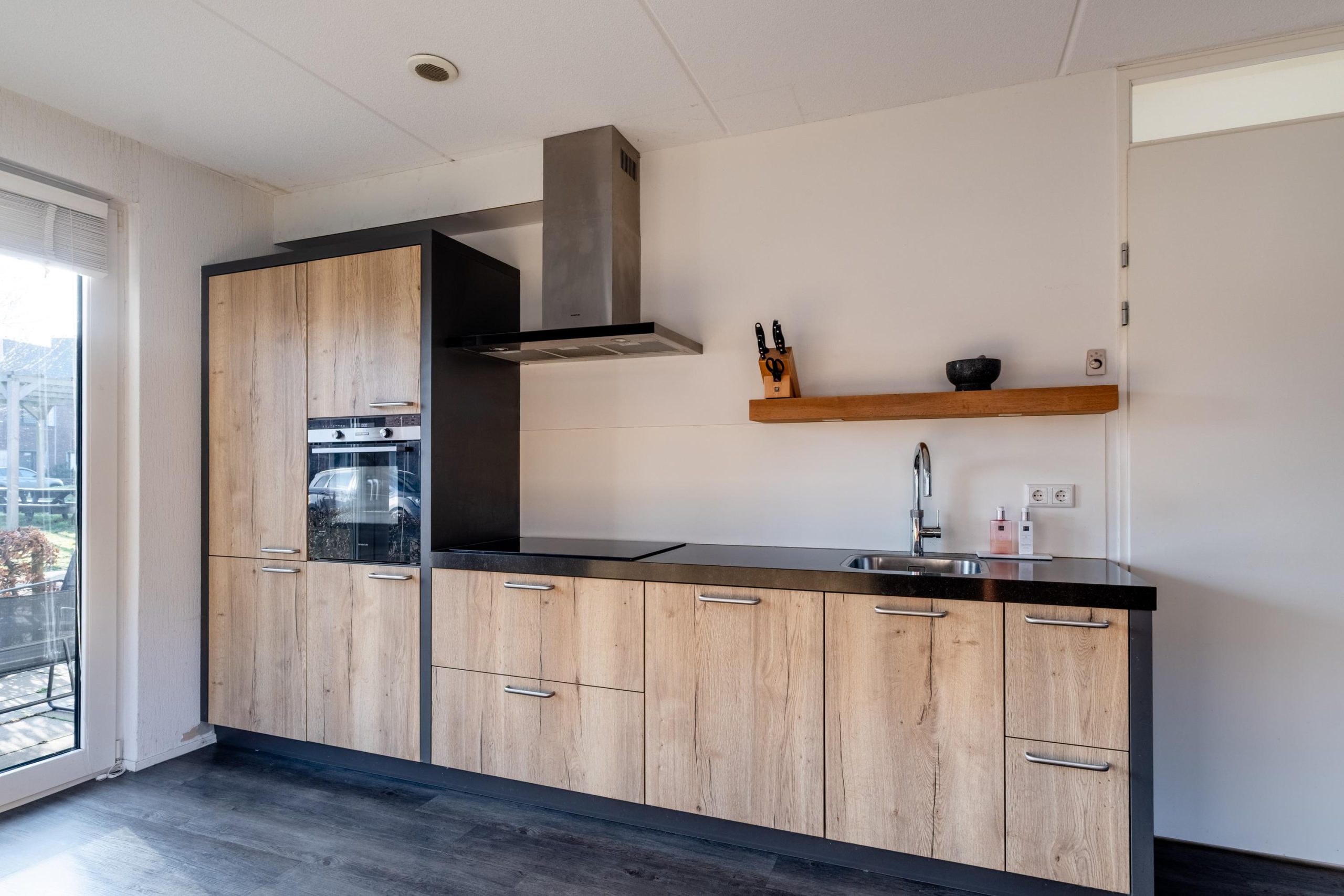 De keuken sluit hier mooi op aan en is in 2018 geplaatst. Strak en praktisch ingericht met alle voorzieningen. De openslaande deuren bij de keuken maken de verbinding met buiten vanzelfsprekend en zorgen ervoor dat de voortuin echt onderdeel wordt van het woonleven.