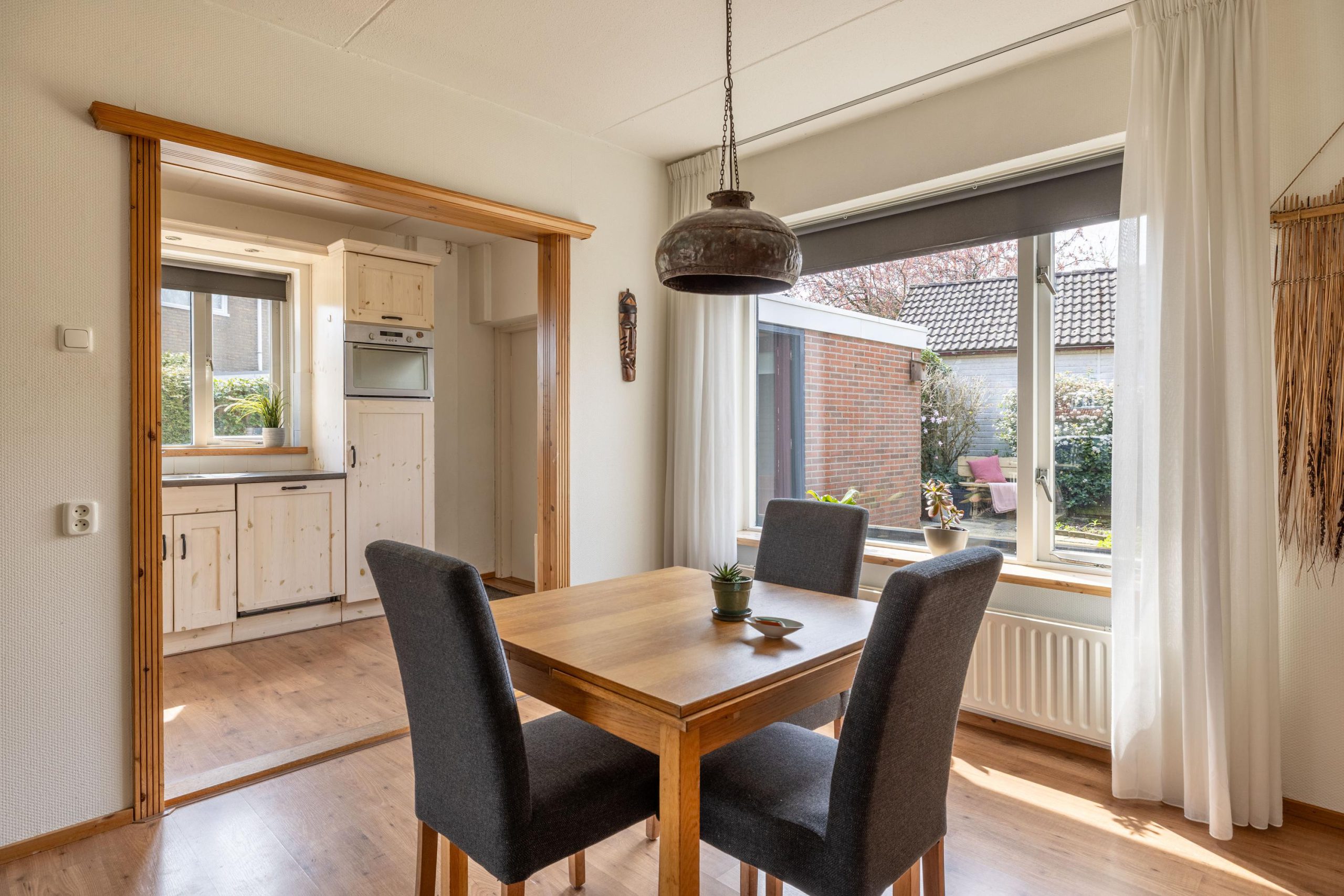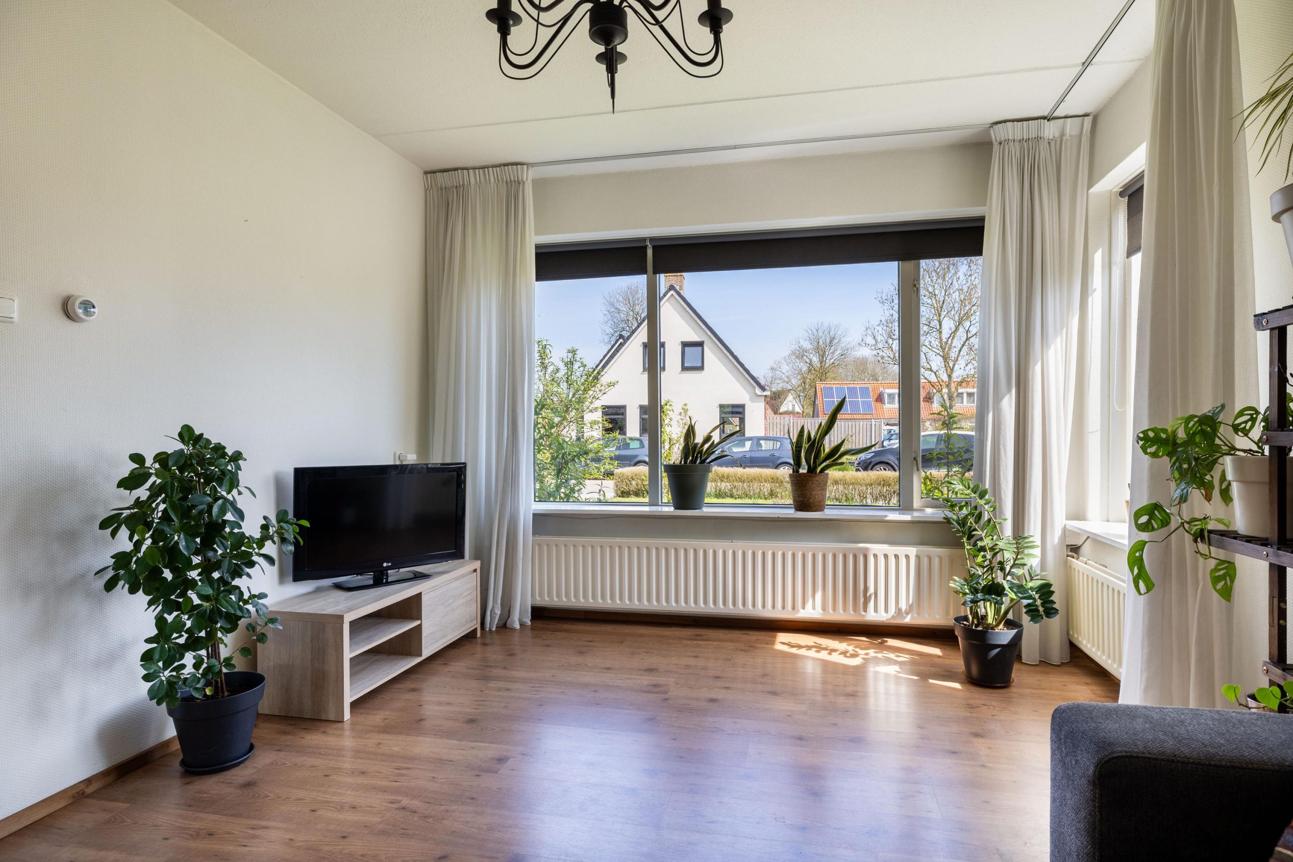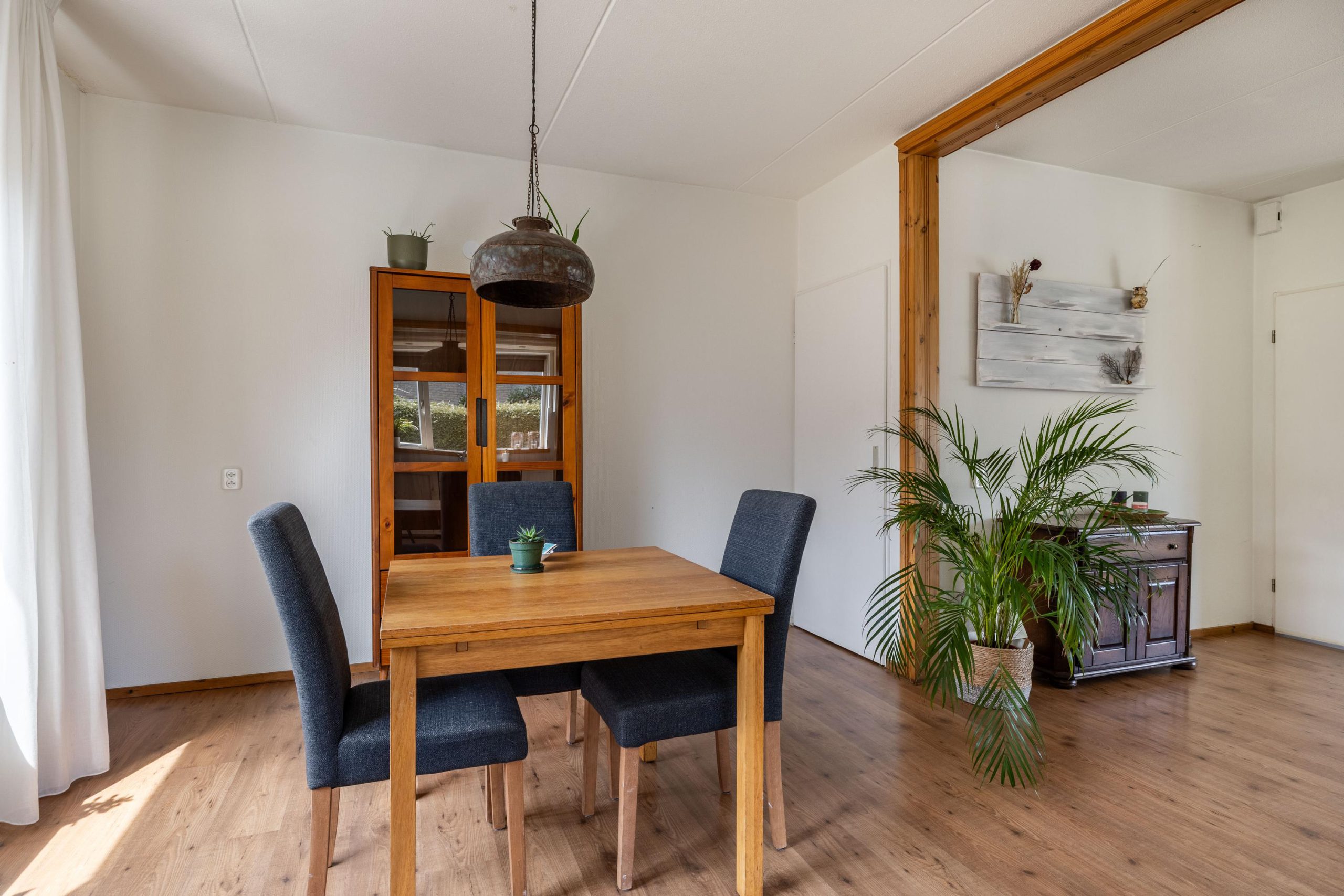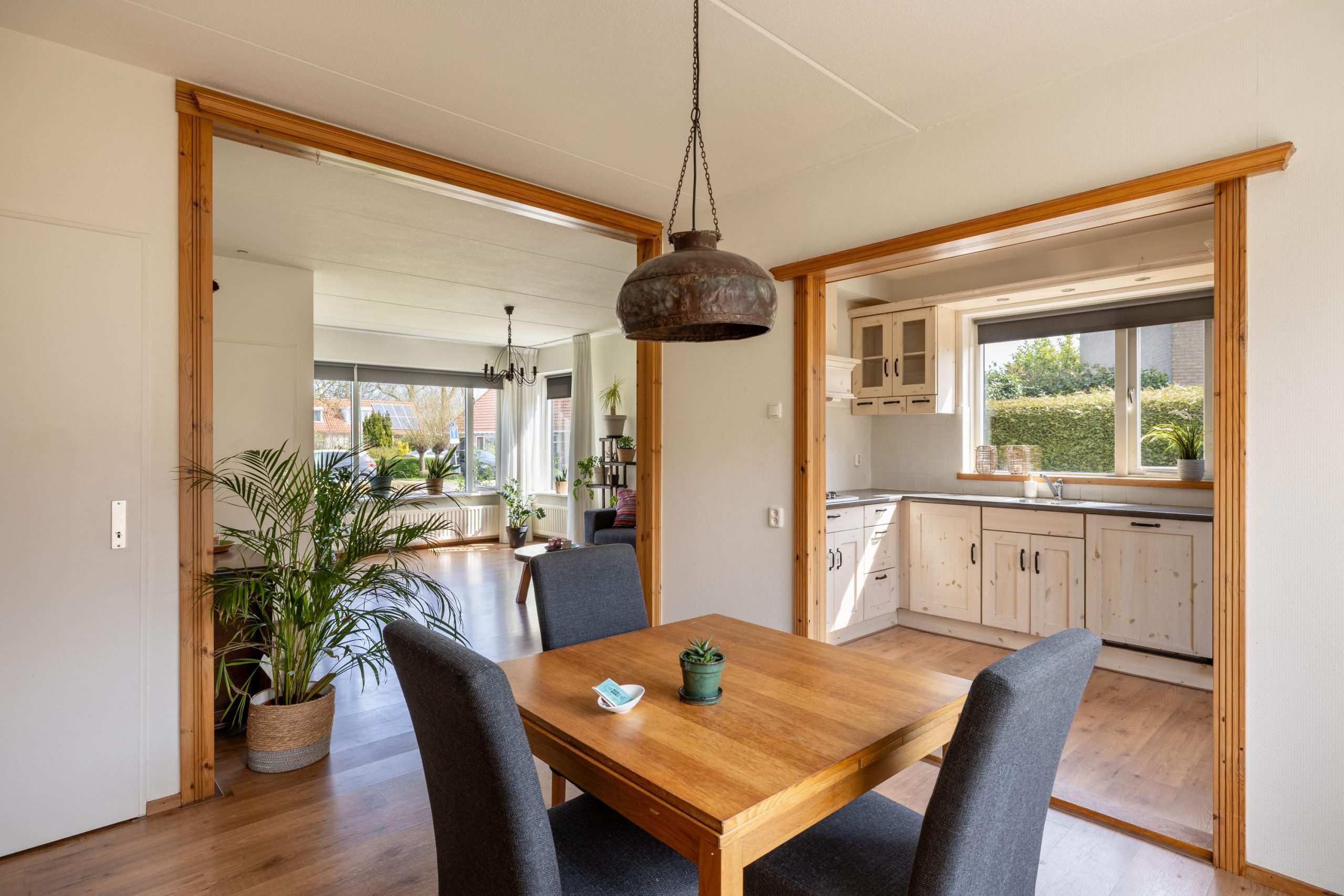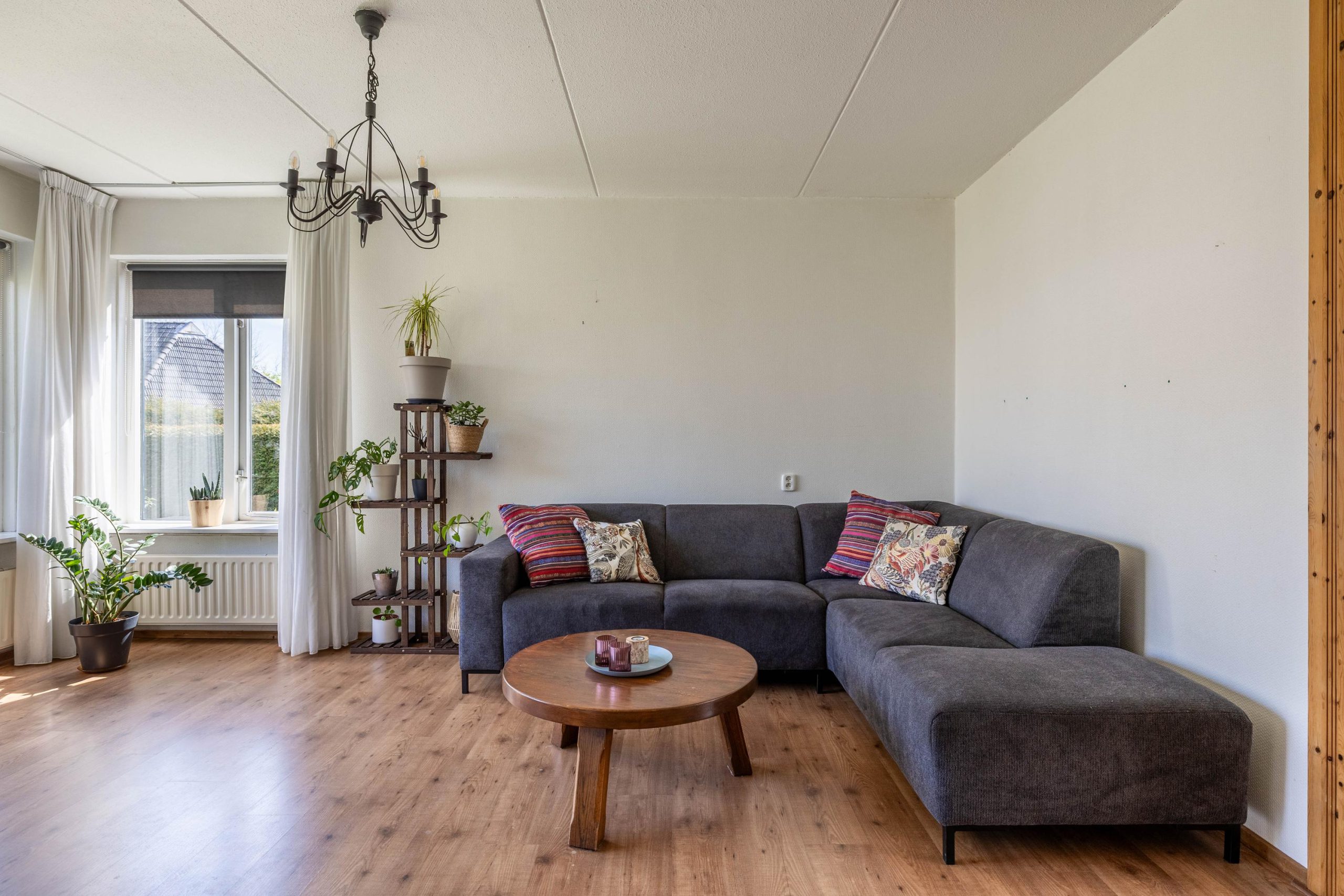 De woonkamer voelt verrassend ruim en open aan. - De huidige indeling is gericht op licht en verbinding en de houten bogen geven karakter aan de ruimte. De woonkamer loopt naadloos over in de keuken, wat zorgt voor een fijne, open leefomgeving.