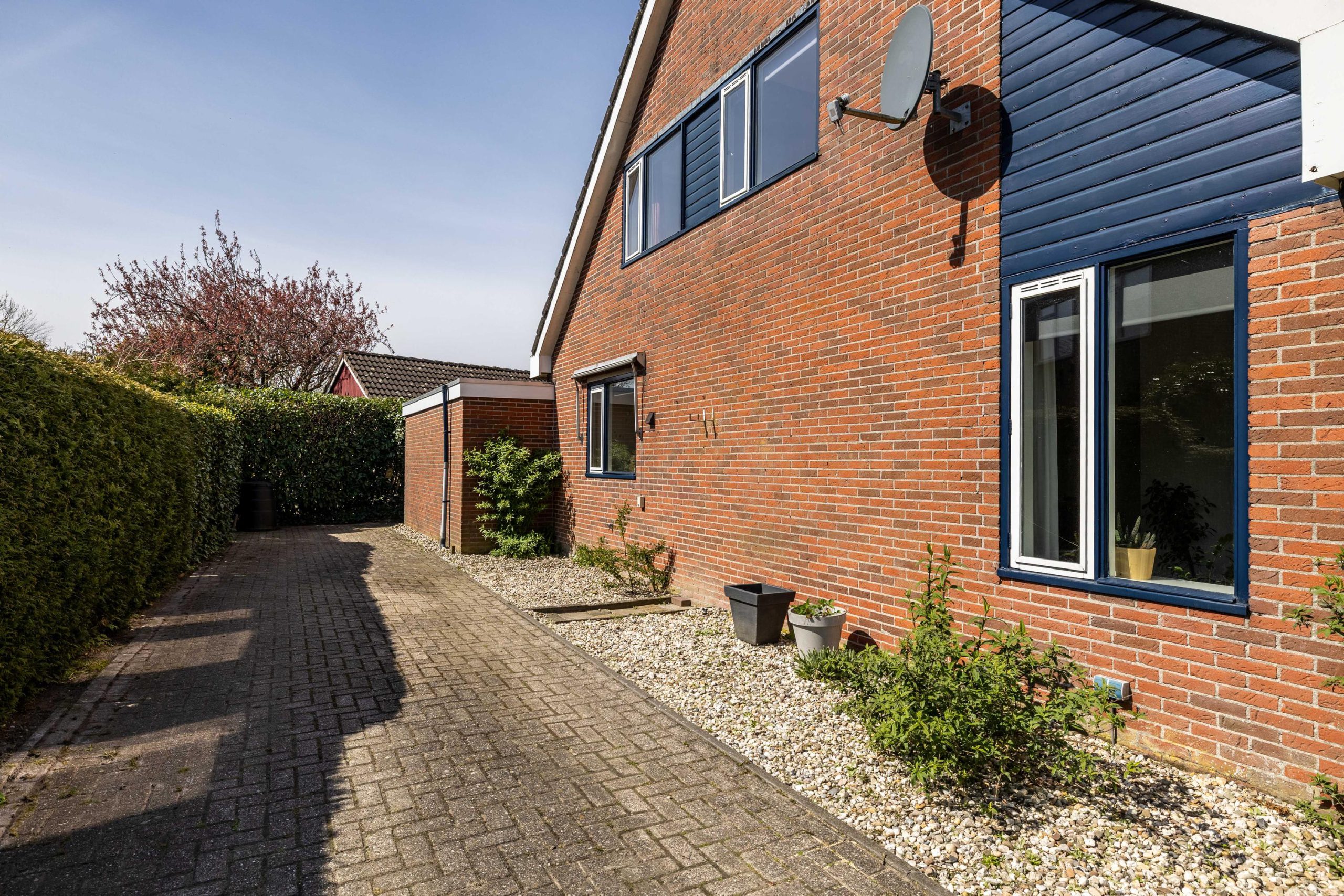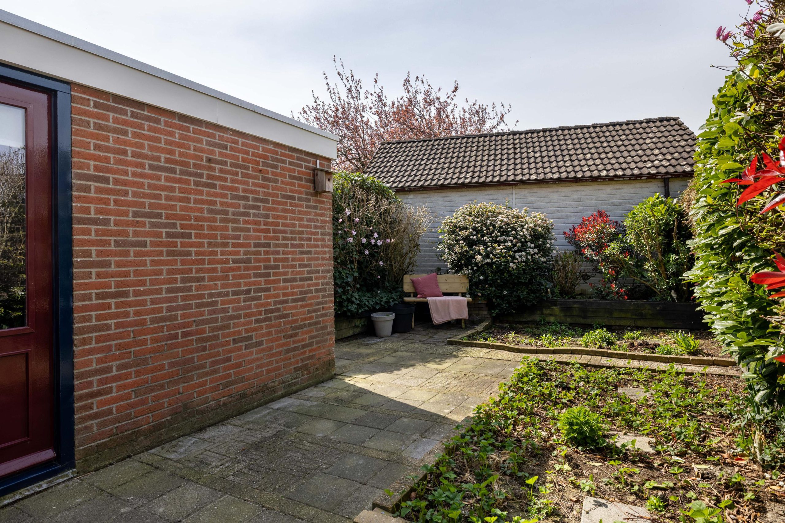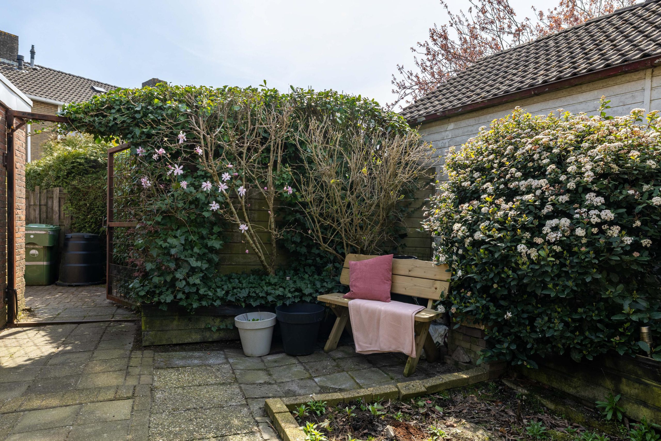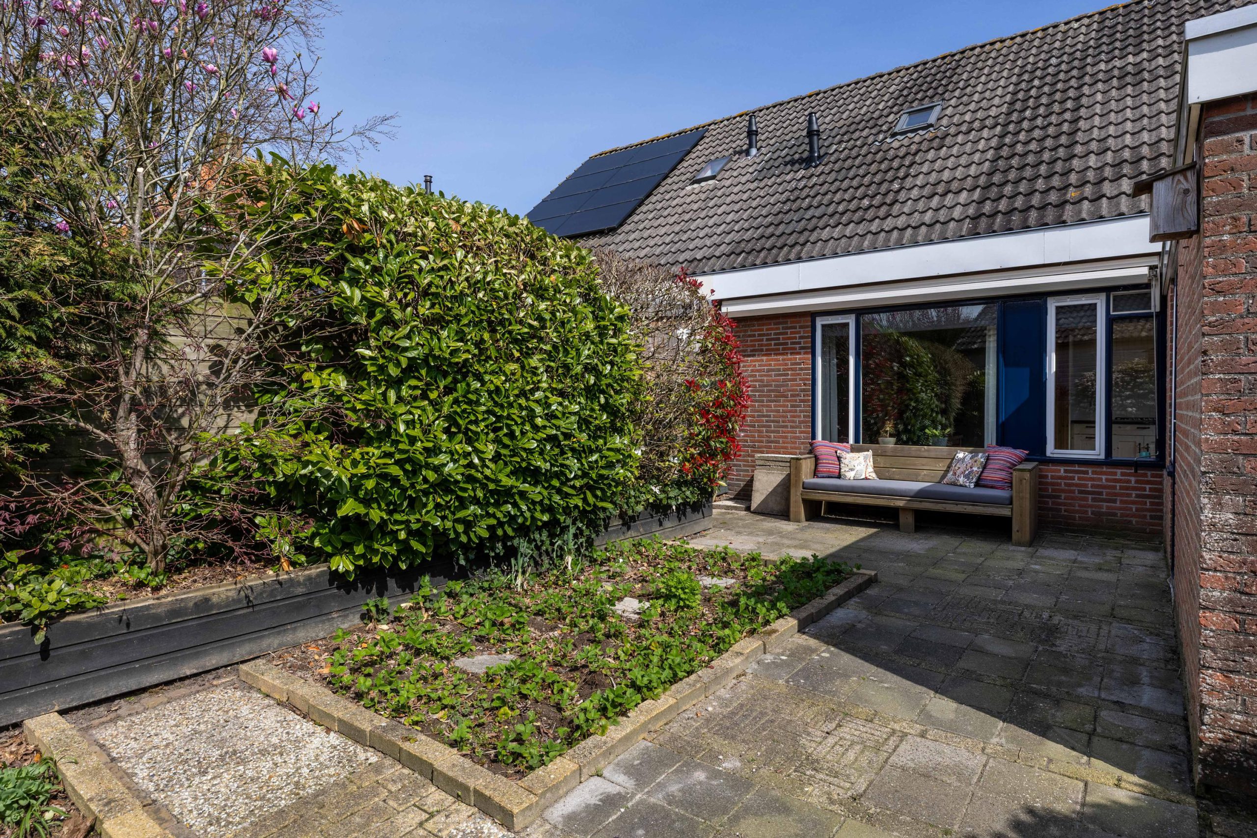 De achtertuin is via de lange oprit gemakkelijk bereikbaar en voelt heerlijk privé aan. Hier geniet je van een fijne mix tussen groen en terras. Of je nu graag tuiniert, buiten eet met vrienden of simpelweg wilt ontspannen met een goed boek, deze tuin biedt voor ieder moment van de dag een passende plek en een heerlijk vrij gevoel.