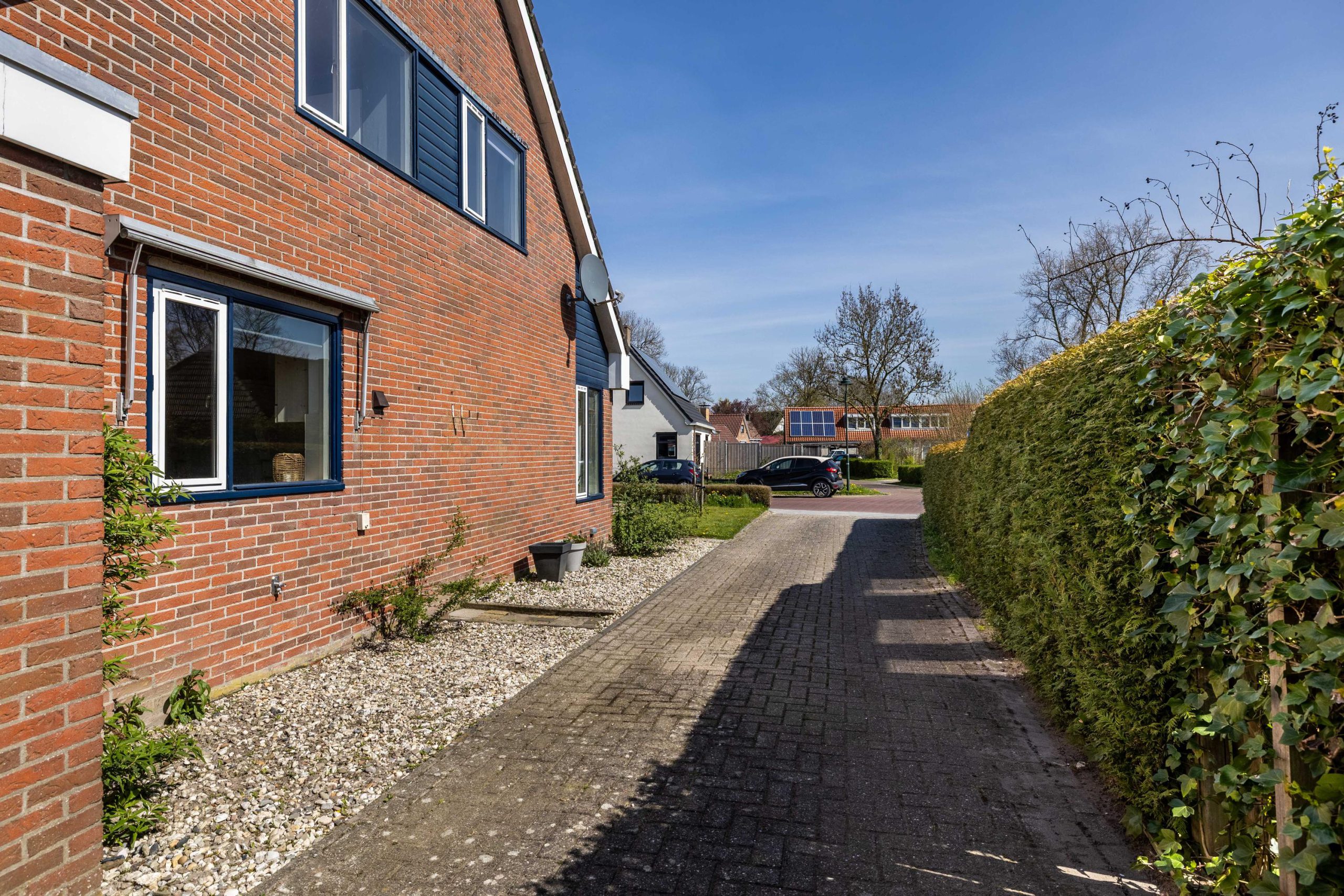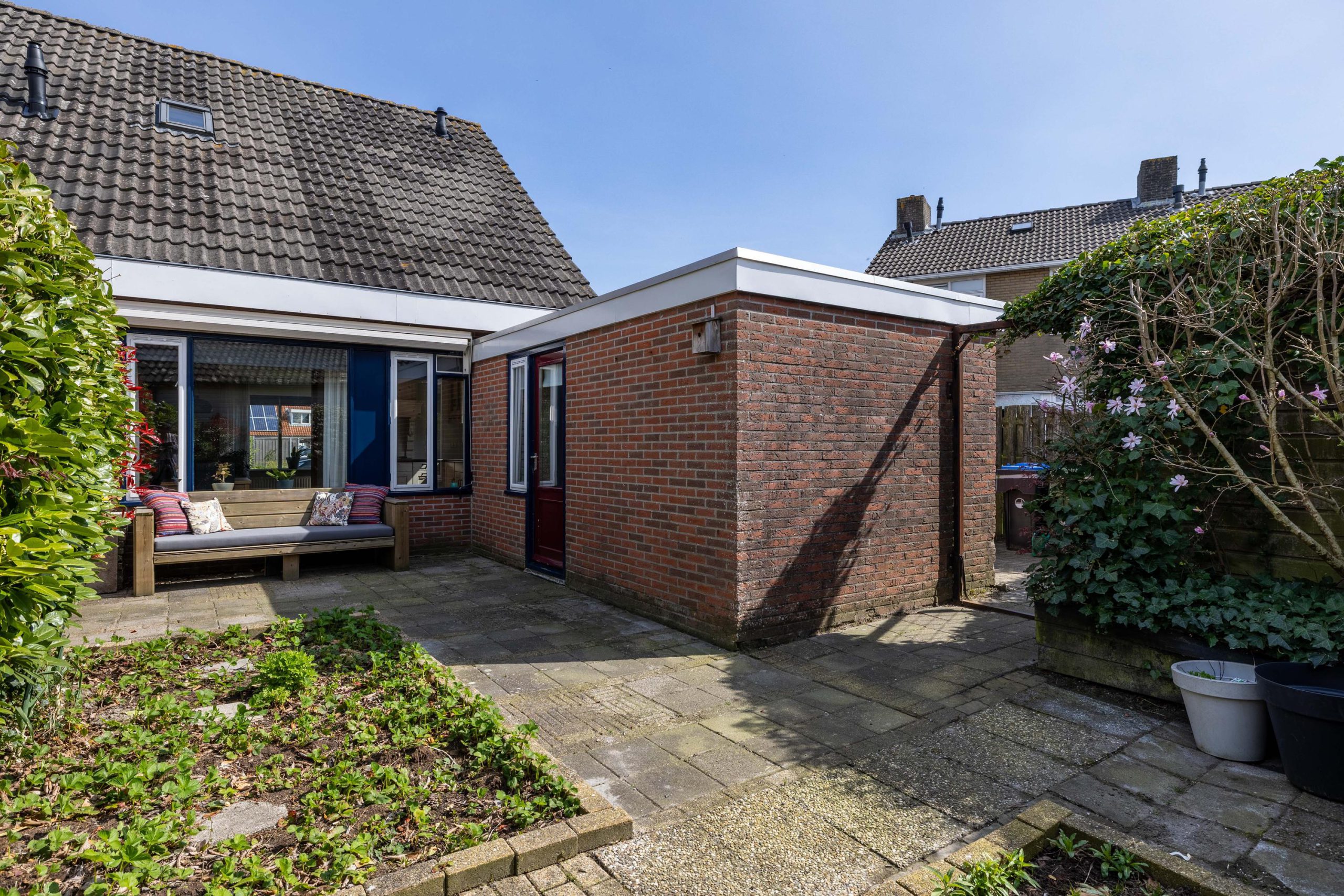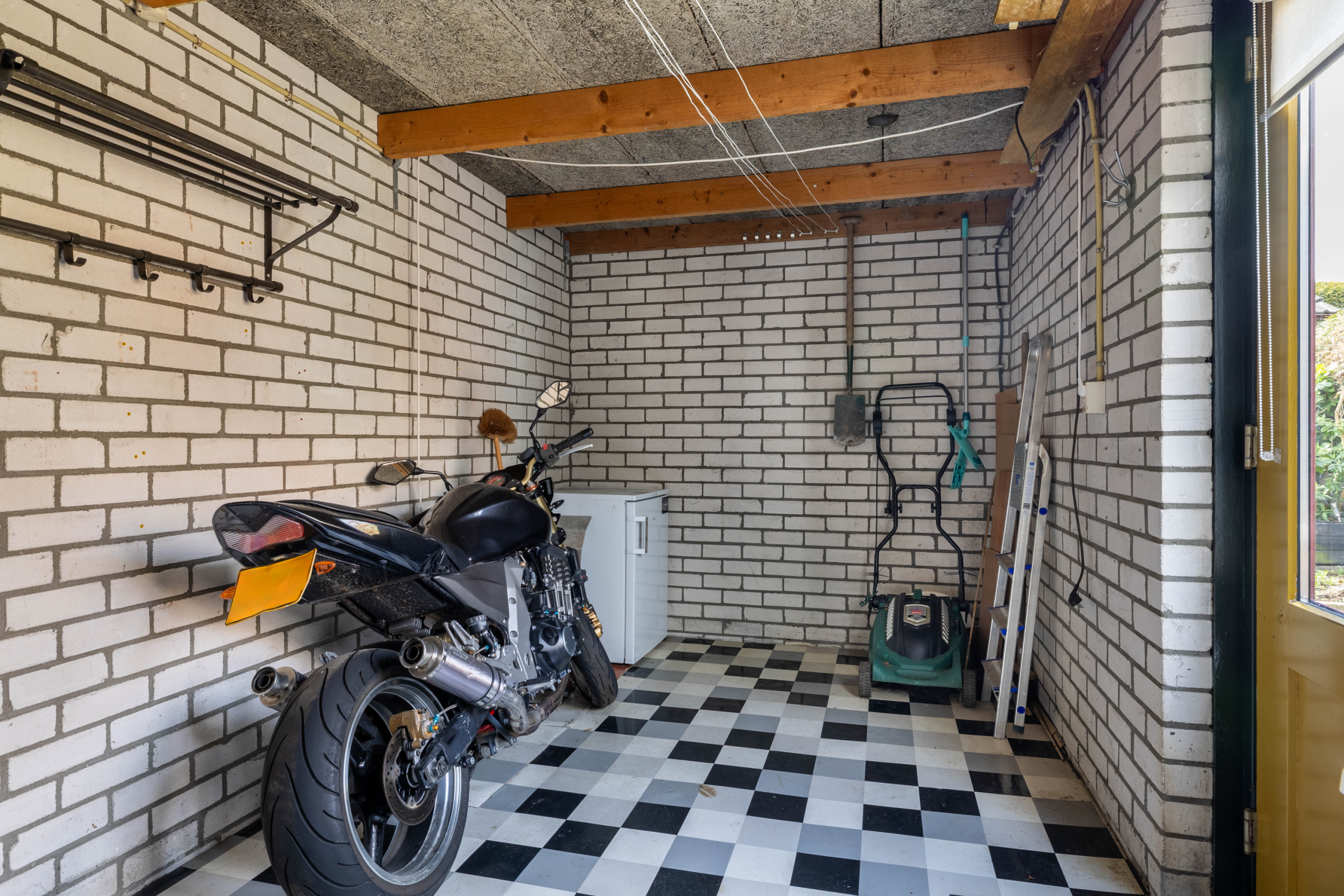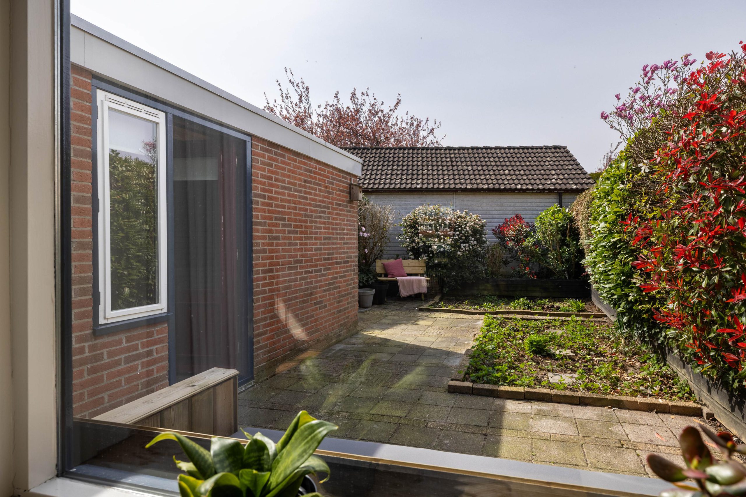 De achtertuin is via de lange oprit gemakkelijk bereikbaar en voelt heerlijk privé aan. Hier geniet je van een fijne mix tussen groen en terras. Of je nu graag tuiniert, buiten eet met vrienden of simpelweg wilt ontspannen met een goed boek, deze tuin biedt voor ieder moment van de dag een passende plek en een heerlijk vrij gevoel.