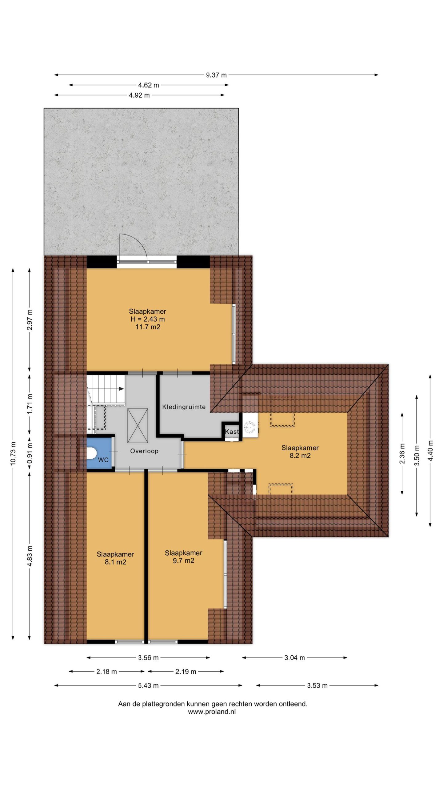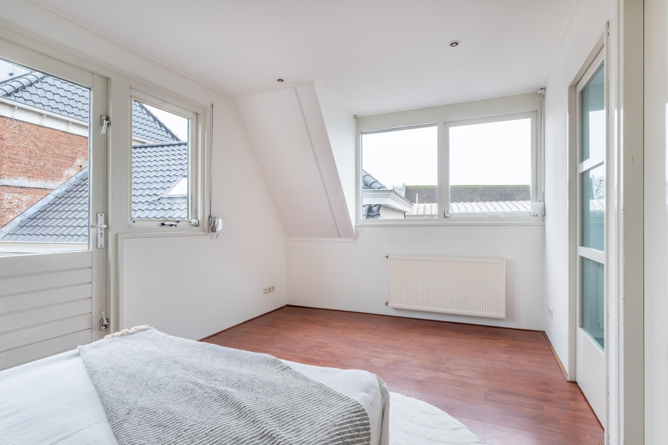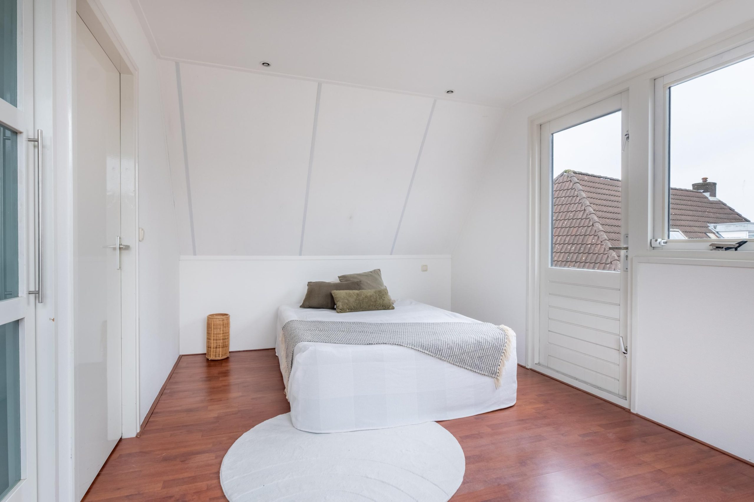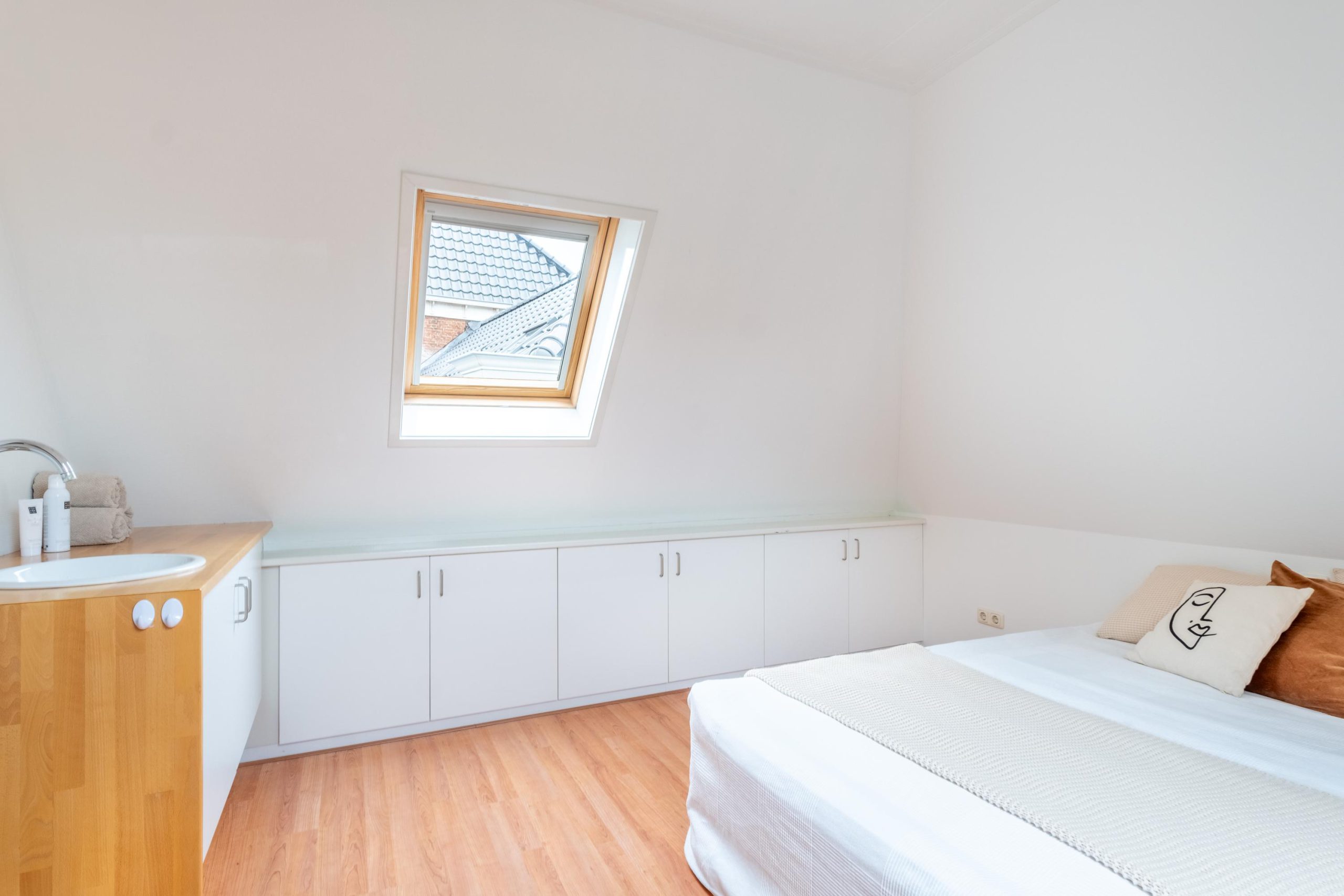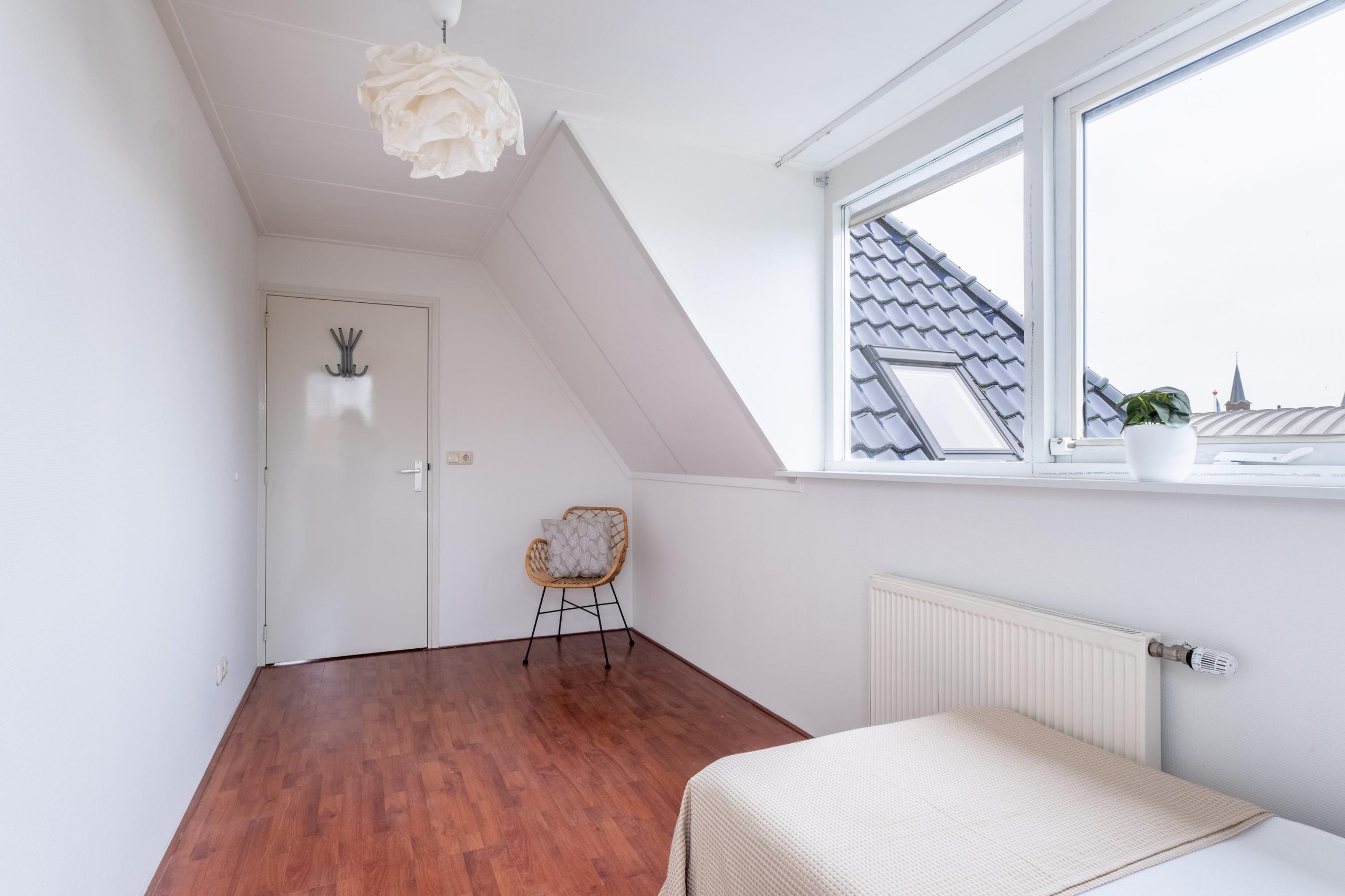 Via de trap in de woonkamer komen we terecht op de eerste verdieping. Hier vind je vier ruime slaapkamers, allemaal voorzien van een nette laminaatvloer en houten kozijnen. De kamers hebben elk een fijne lichtinval en bieden voldoende ruimte voor een bed en opbergmogelijkheden. De grootste slaapkamer heeft bovendien toegang tot een eigen balkon, waar je kunt genieten van het uitzicht over het dorp. Op deze verdieping bevindt zich een toilet. De zolderverdieping, bereikbaar via een vlizotrap, is goed geïsoleerd dankzij een unidek dak. Deze ruimte biedt veel opbergruimte.
