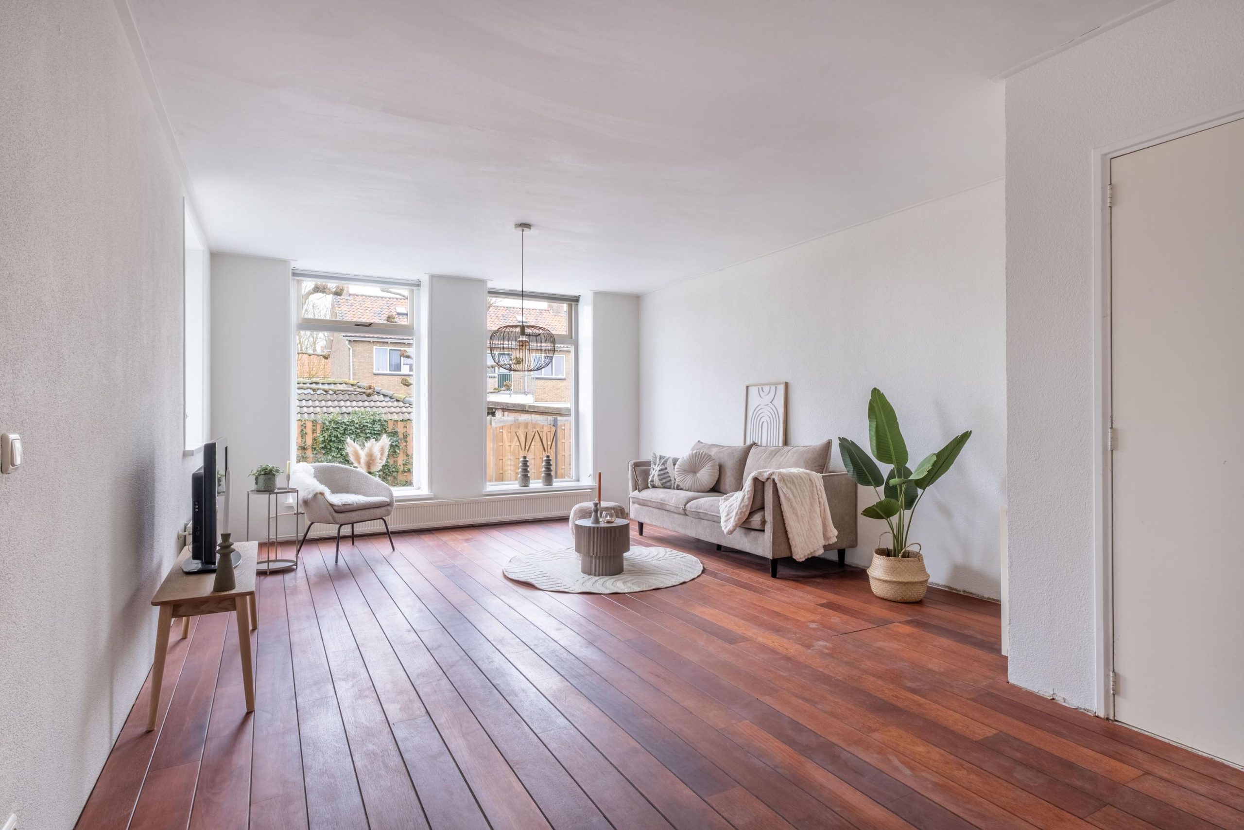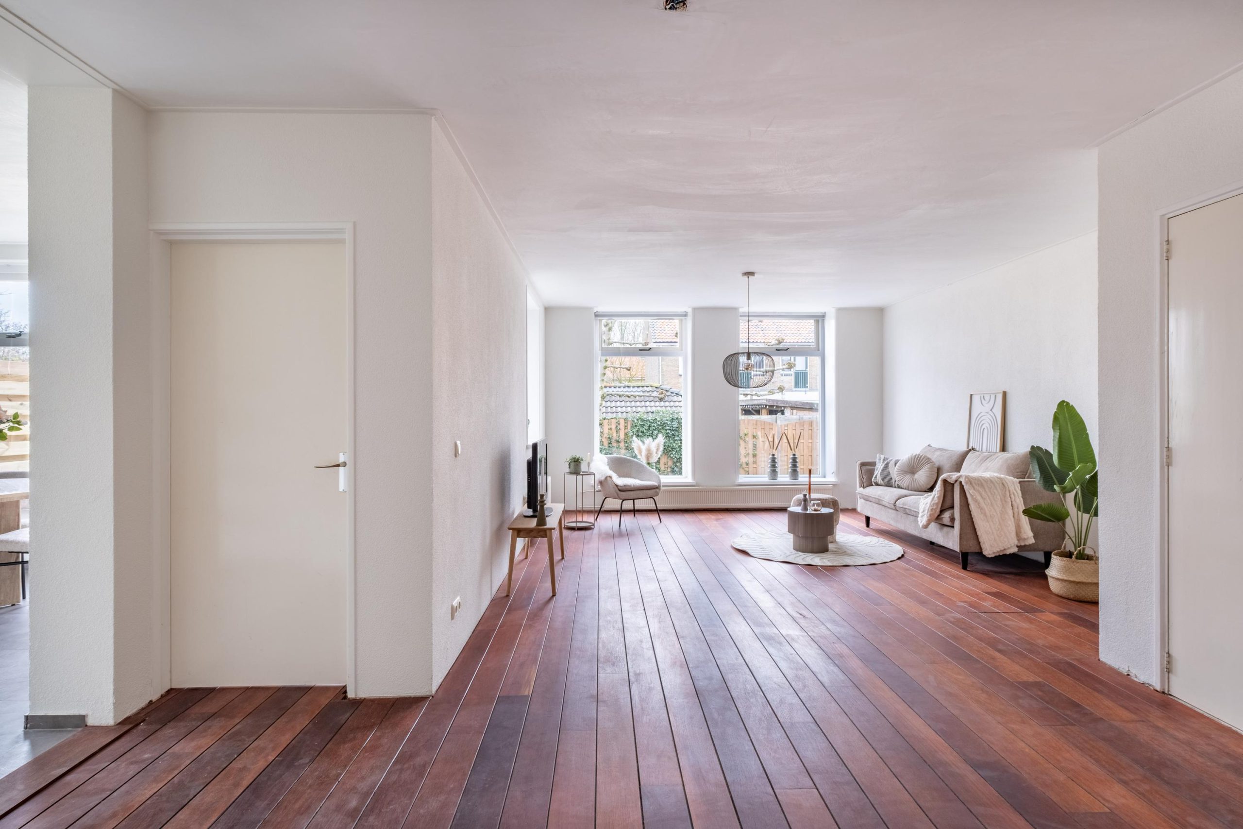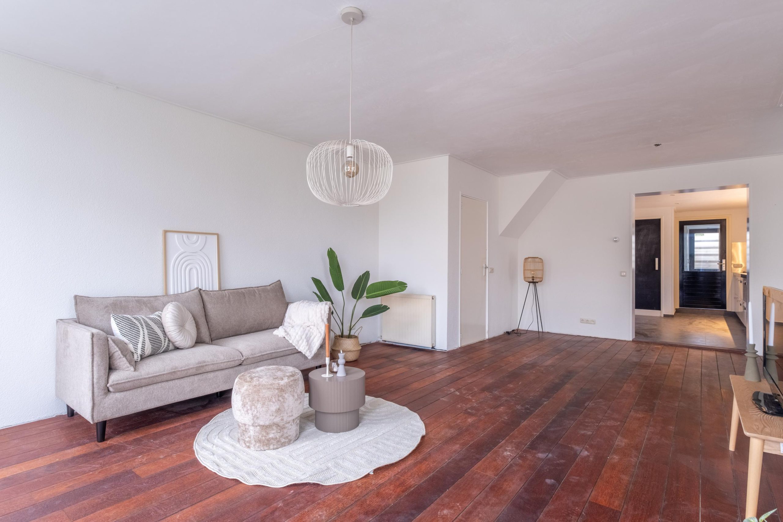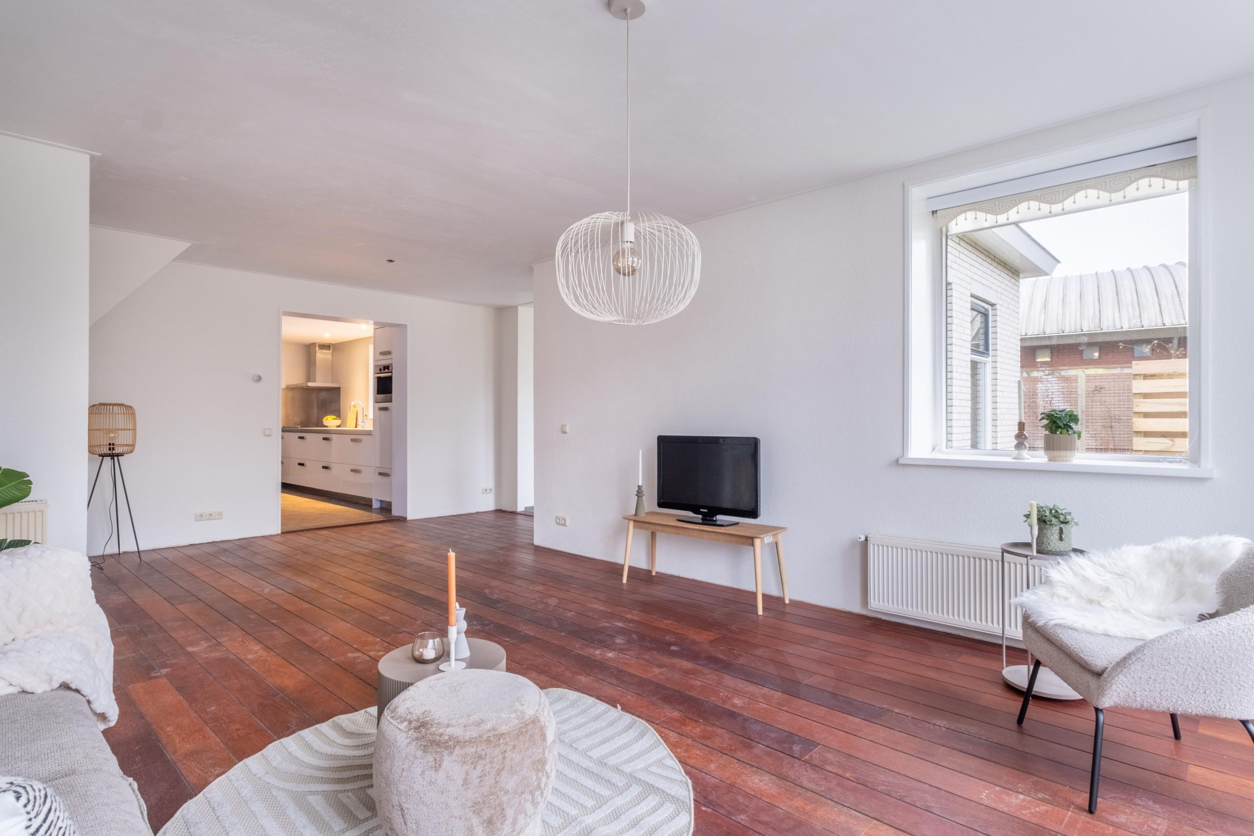 We betreden de woning via de hal. Hier bevindt zich de meterkast met 1-fase en 10 groepen. Vanuit de hal lopen we door naar de royale woonkamer. Hier zorgt de massief eiken houten vloer voor een warme uitstraling, terwijl de grote raampartijen het daglicht prachtig naar binnen laten stromen. De indeling biedt volop mogelijkheden om een gezellige zithoek en eethoek te creëren. Zo is ook de eethoek een lichte fijne ruimte. Vanuit de eetkamer stap je in de zonnige, op het zuiden gelegen, tuin.