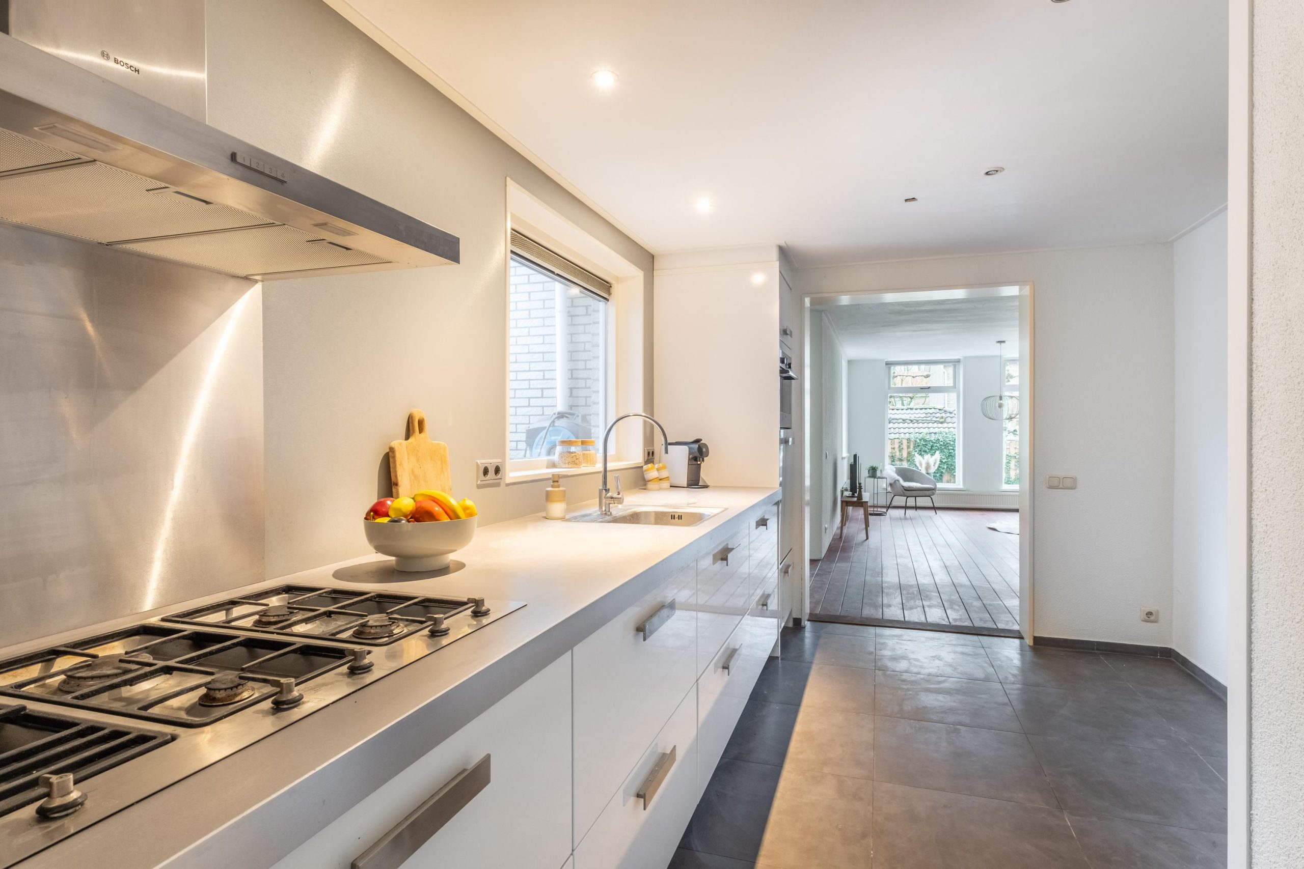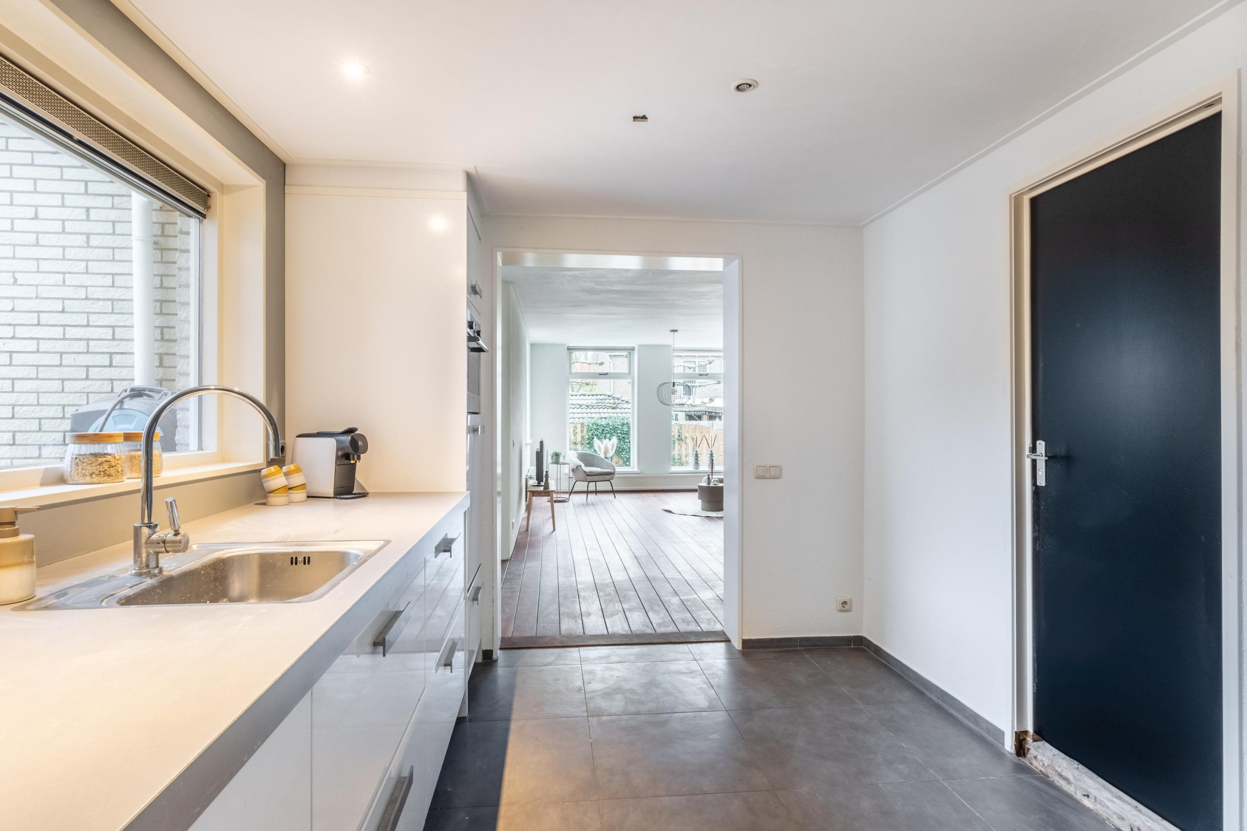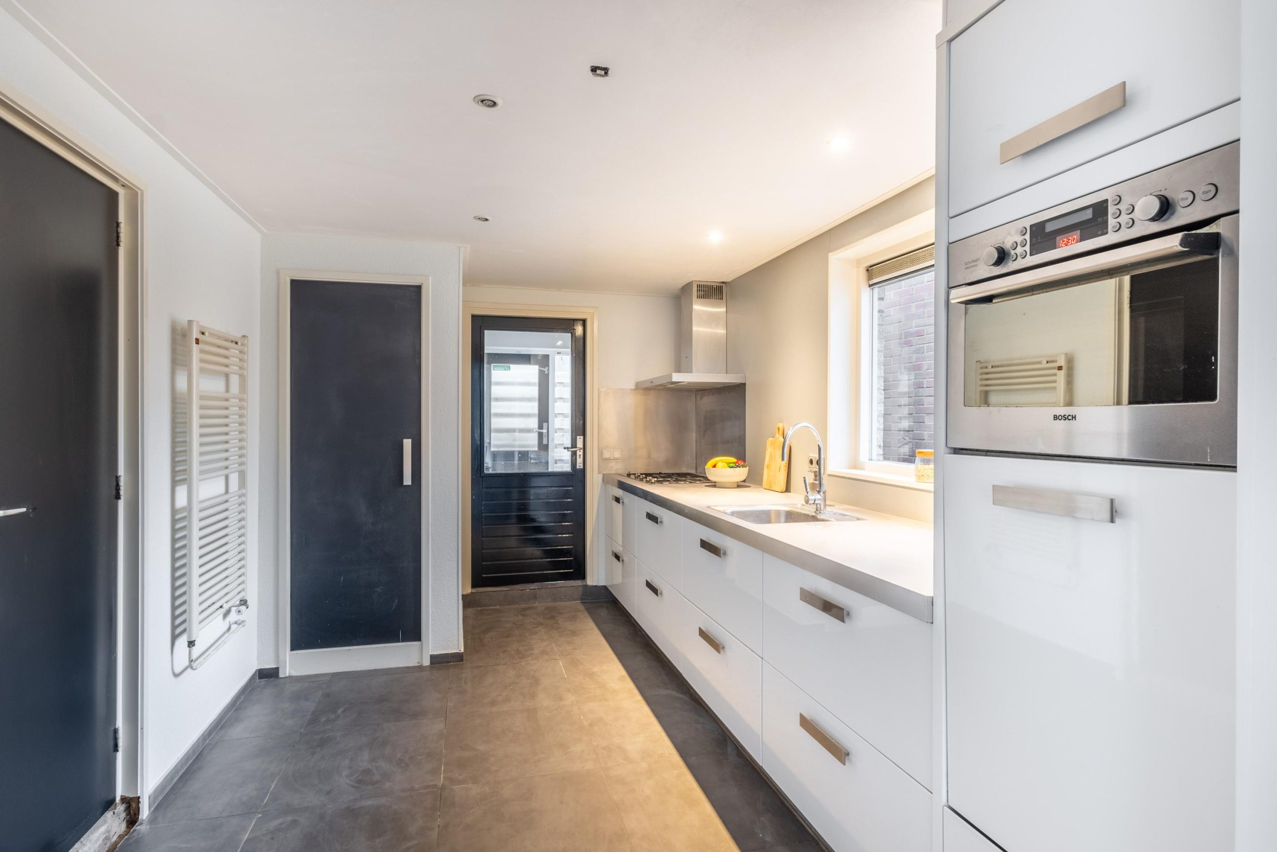 Via de woonkamer kom je in de keuken. Deze is praktisch ingedeeld en beschikt over voldoende kastruimte. Aansluitend aan de keuken vind je de recent opgeleverd badkamer, met inloopdouche, ligbad, wastafelmeubel en toilet. Aan de achterzijde van de woning bevindt zich bijkeuken en een extra kamer met een dakkoepel voor extra natuurlijk licht. Het raam wordt dichtgemaakt met folie, wat zorgt voor een nette afwerking.