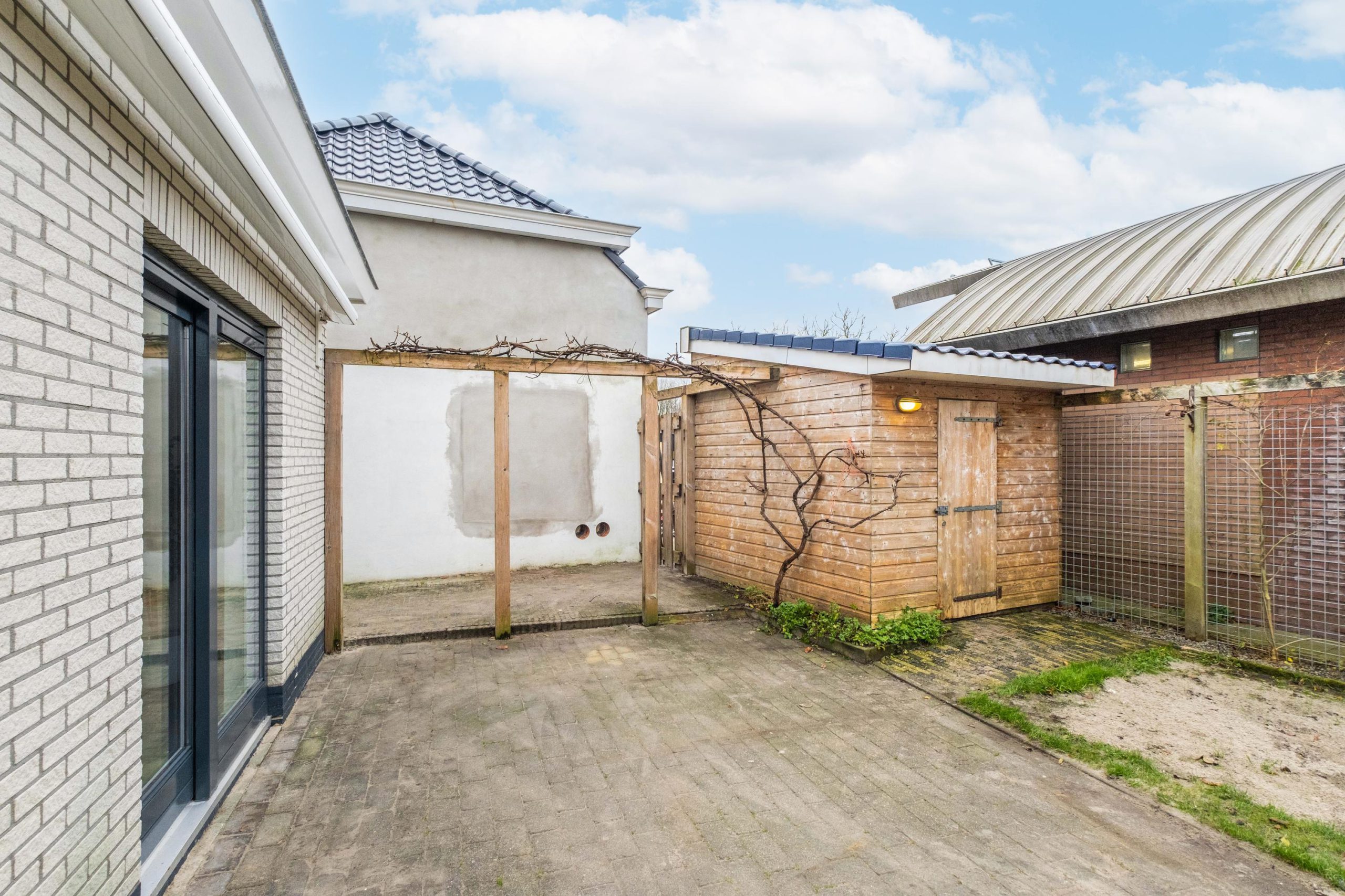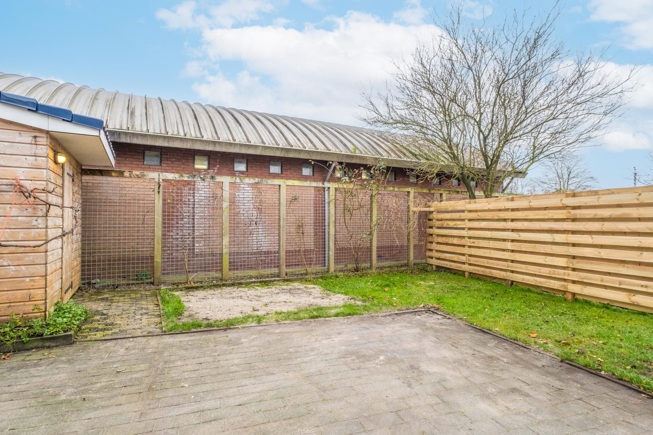 De tuin biedt een fijne combinatie van groen en bestrating. Het ruime perceel biedt voldoende plek om buiten te ontspannen, een speelplek voor kinderen te maken of zelfs een moestuin aan te leggen.