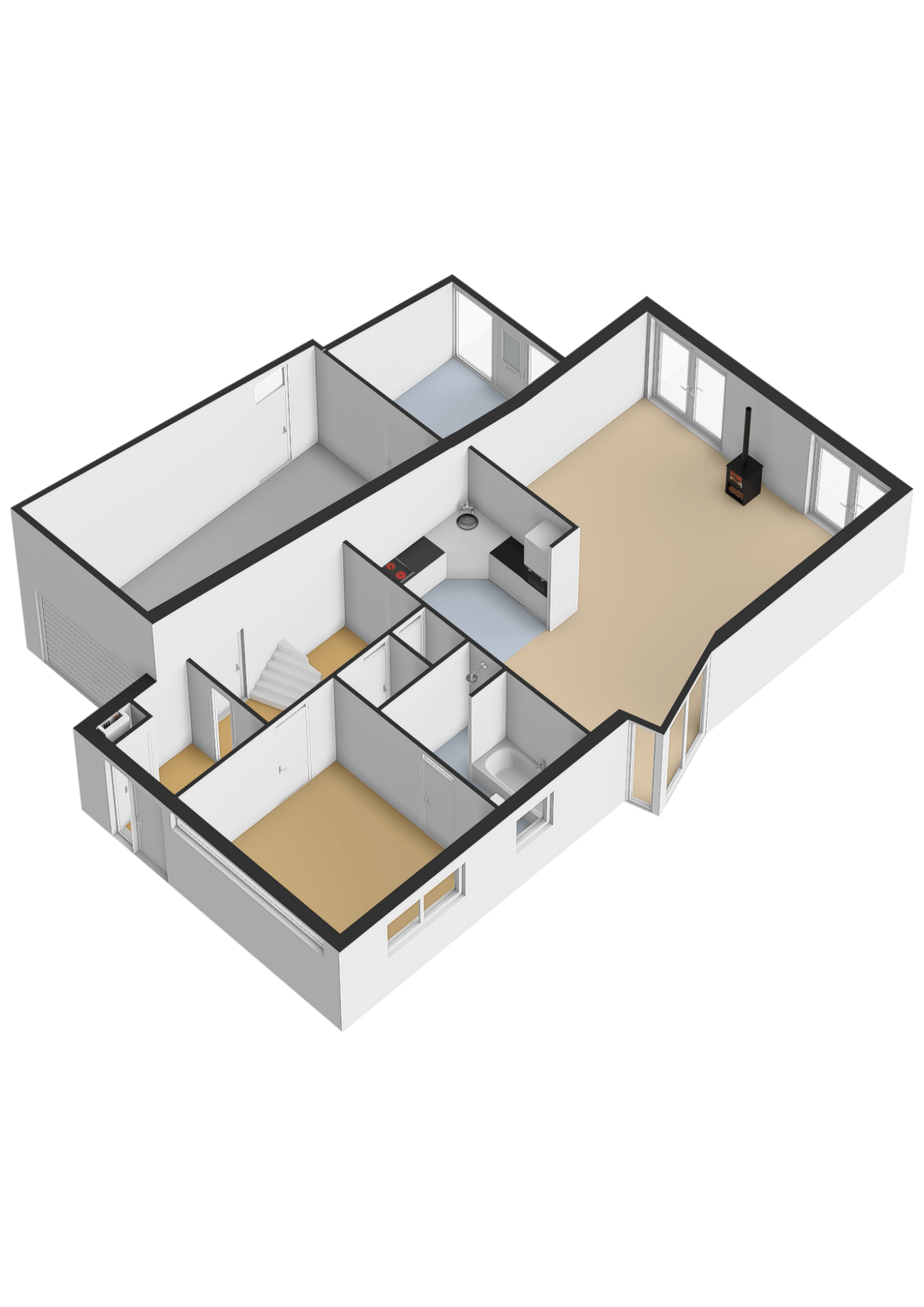 Achter de garage bevindt zich nog een verrassend ruime bijkeuken. Een praktische ruimte voor opslag of huishoudelijke functies, maar ook uitstekend geschikt als werkruimte, atelier of kantoor aan huis.