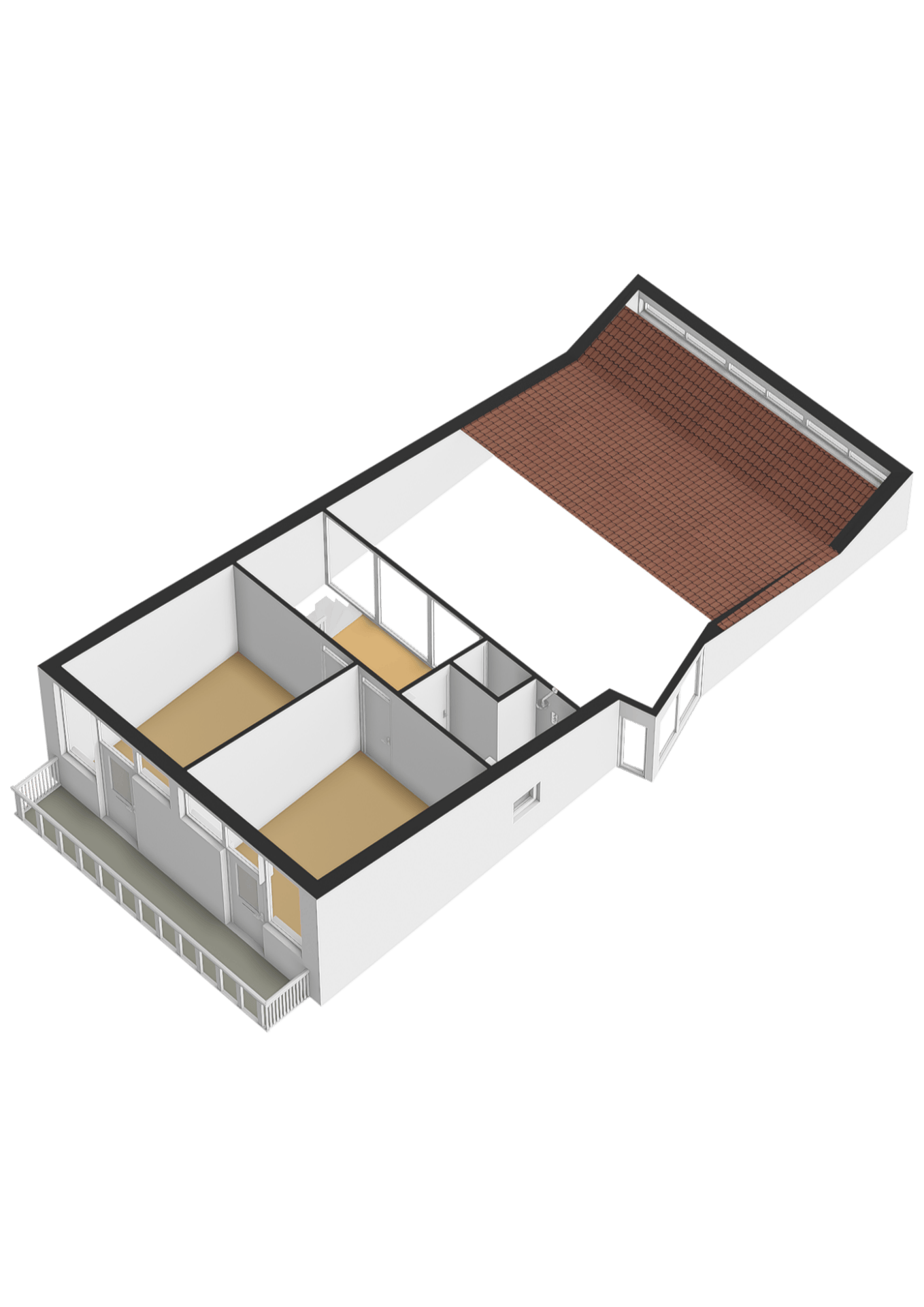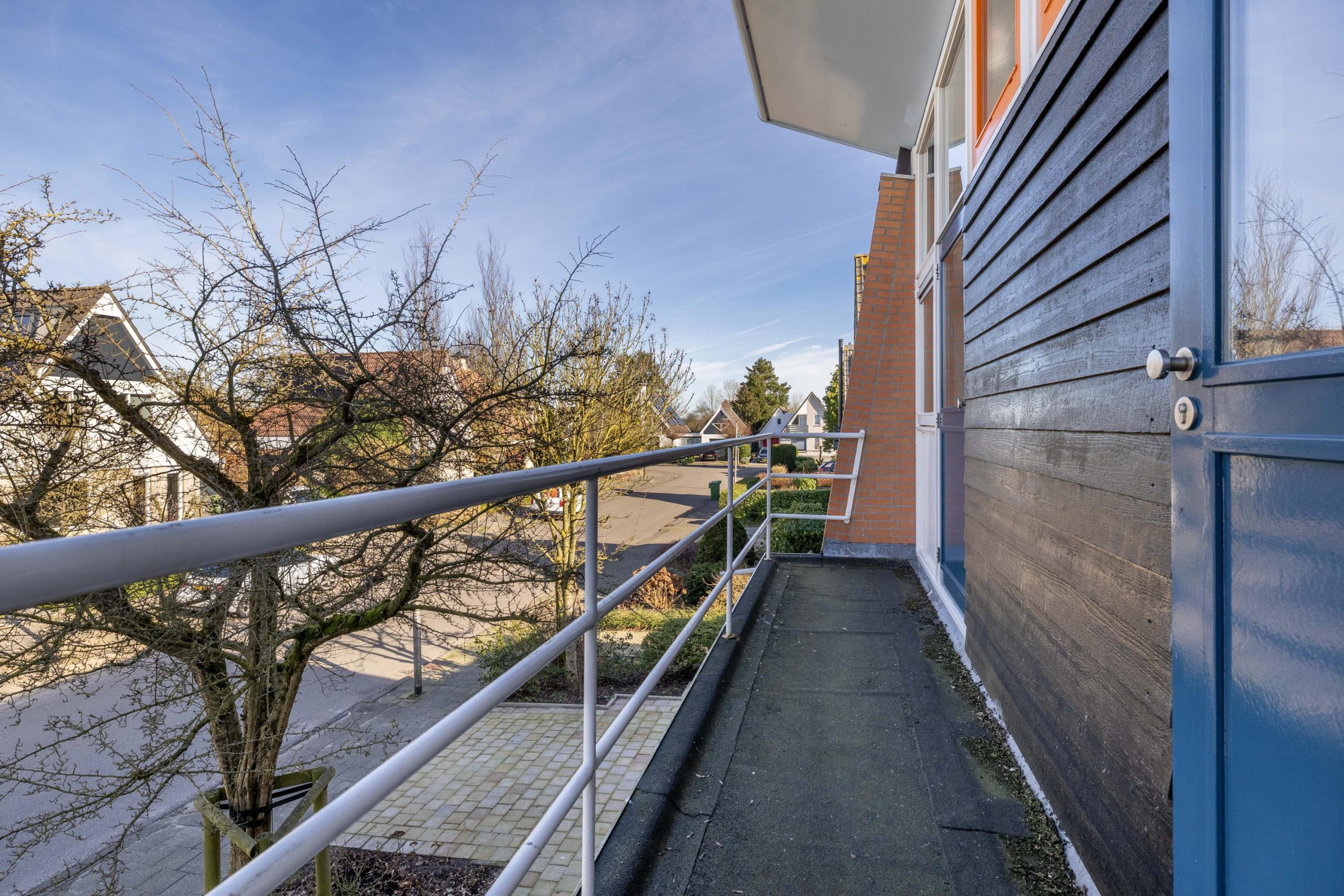 Op de verdieping zet het bijzondere ontwerp zich voort. Op de overloop ontstaat een mooie doorkijk naar beneden en naar de grote raampartijen waardoor ook hier het licht volop aanwezig is. Hier bevinden zicht twee ruime slaapkamers die slim in het ontwerp zijn geplaatst en beide toegang hebben tot een gedeeld balkon. Daarnaast is er een tweede badkamer met toilet en wastafel.