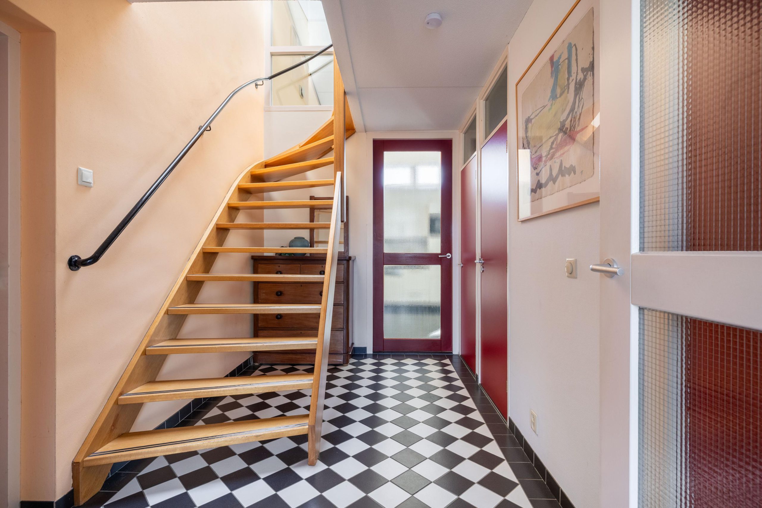 Vanaf de straat oogt de woning vrij ingetogen. Een beetje gesloten zelfs. Maar dat verandert direct zodra je binnenstapt. Via het tochtportaal kom je in de hal en wordt meteen duidelijk dat dit geen standaard woning is. De hoogte, de zichtlijnen en de grote raampartijen zorgen direct voor een ruimtelijk en licht gevoel.