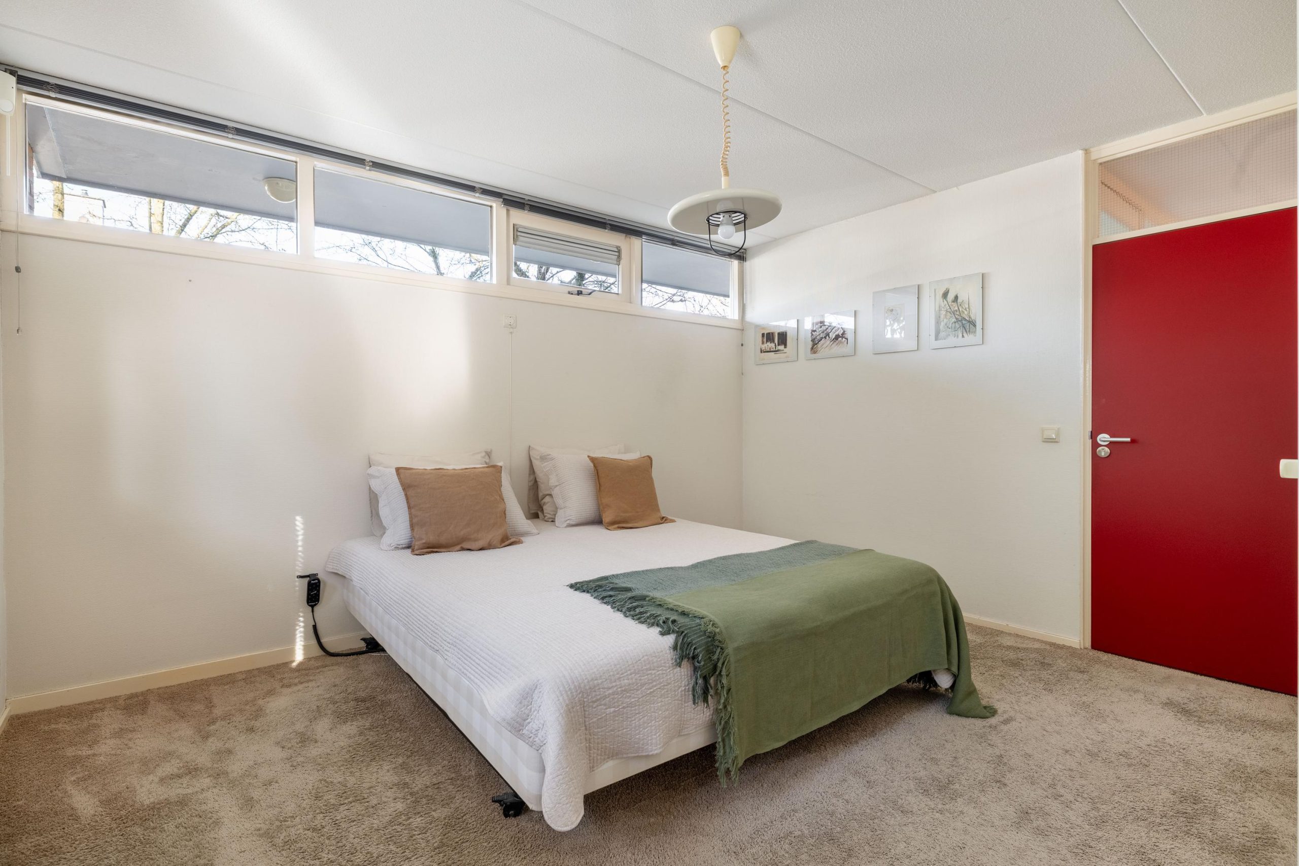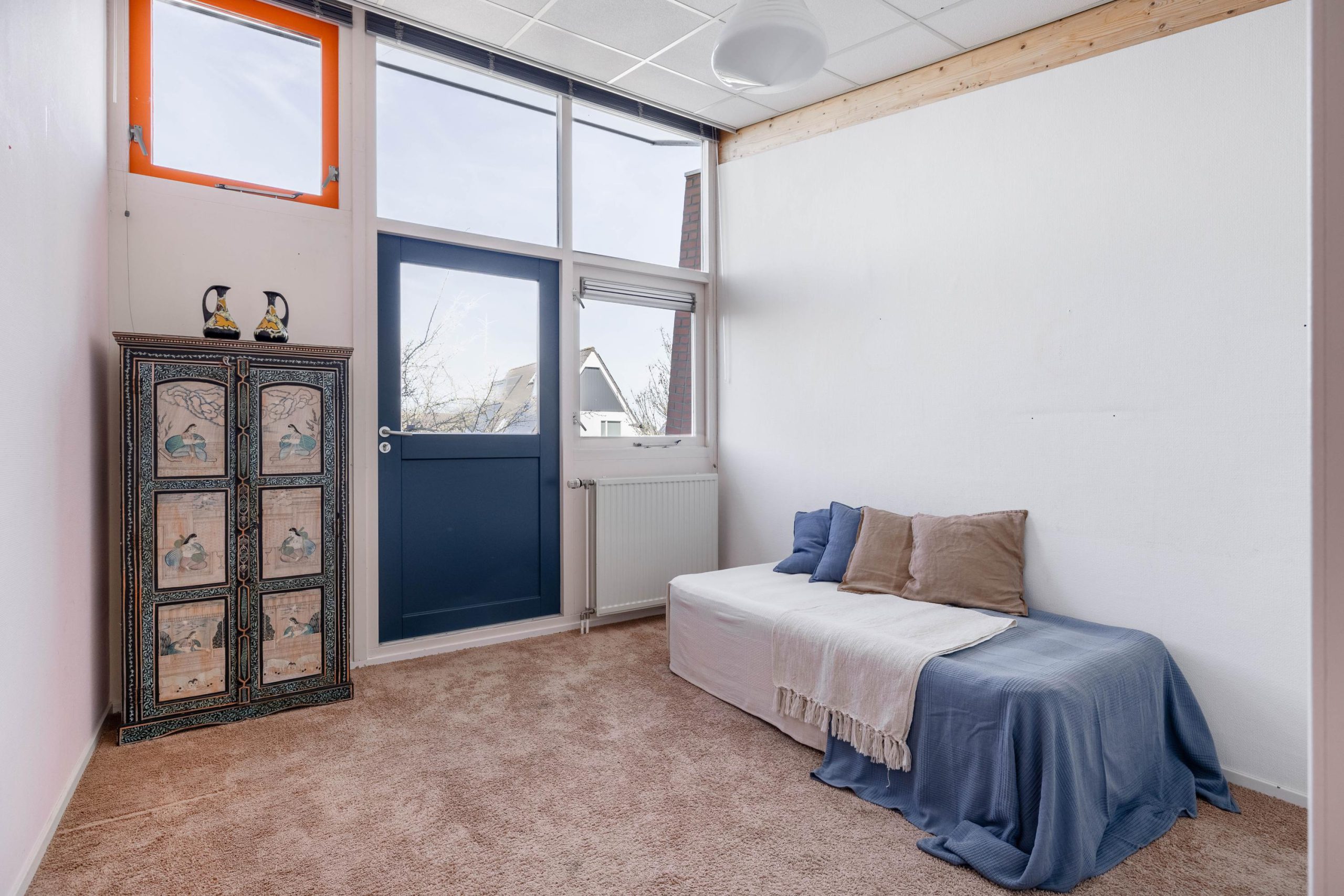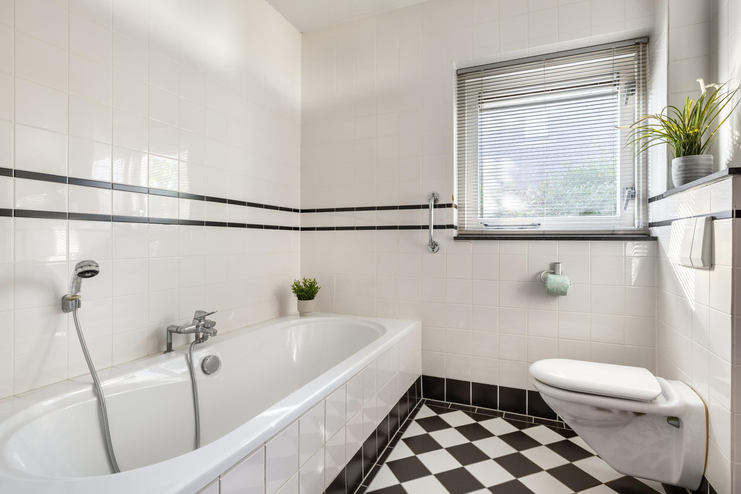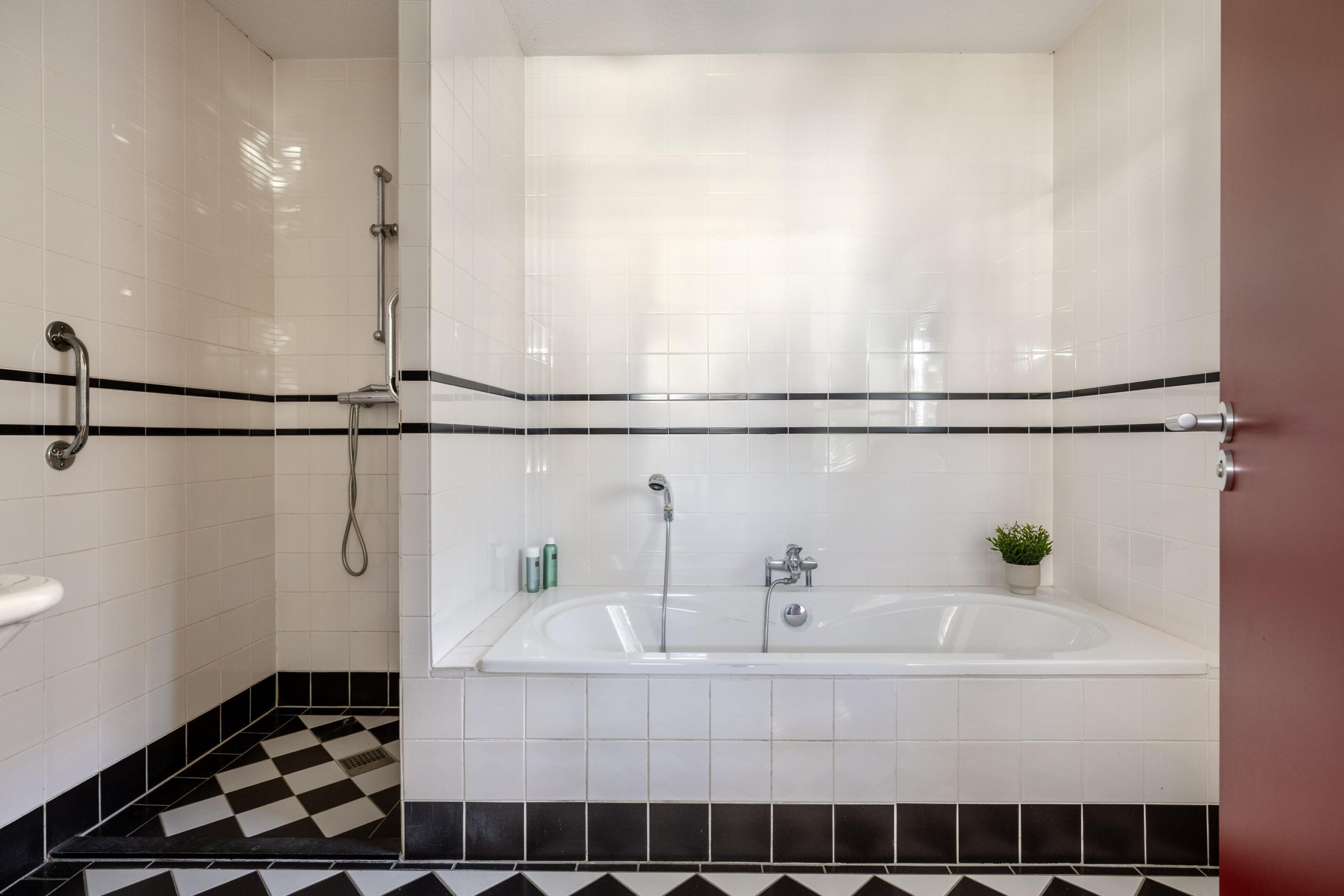 Wat deze woning extra prettig maakt, is dat gelijkvloers wonen hier heel goed mogelijk is. Op de begane grond ligt een ruime slaapkamer die zicht bewust aan de noordzijde van de woning zit. Een fijne plek om te slapen, met voldoende licht en rust. Direct daarnaast ligt de badkamer met ligbad, inloopdouche, toilet en wastafel.