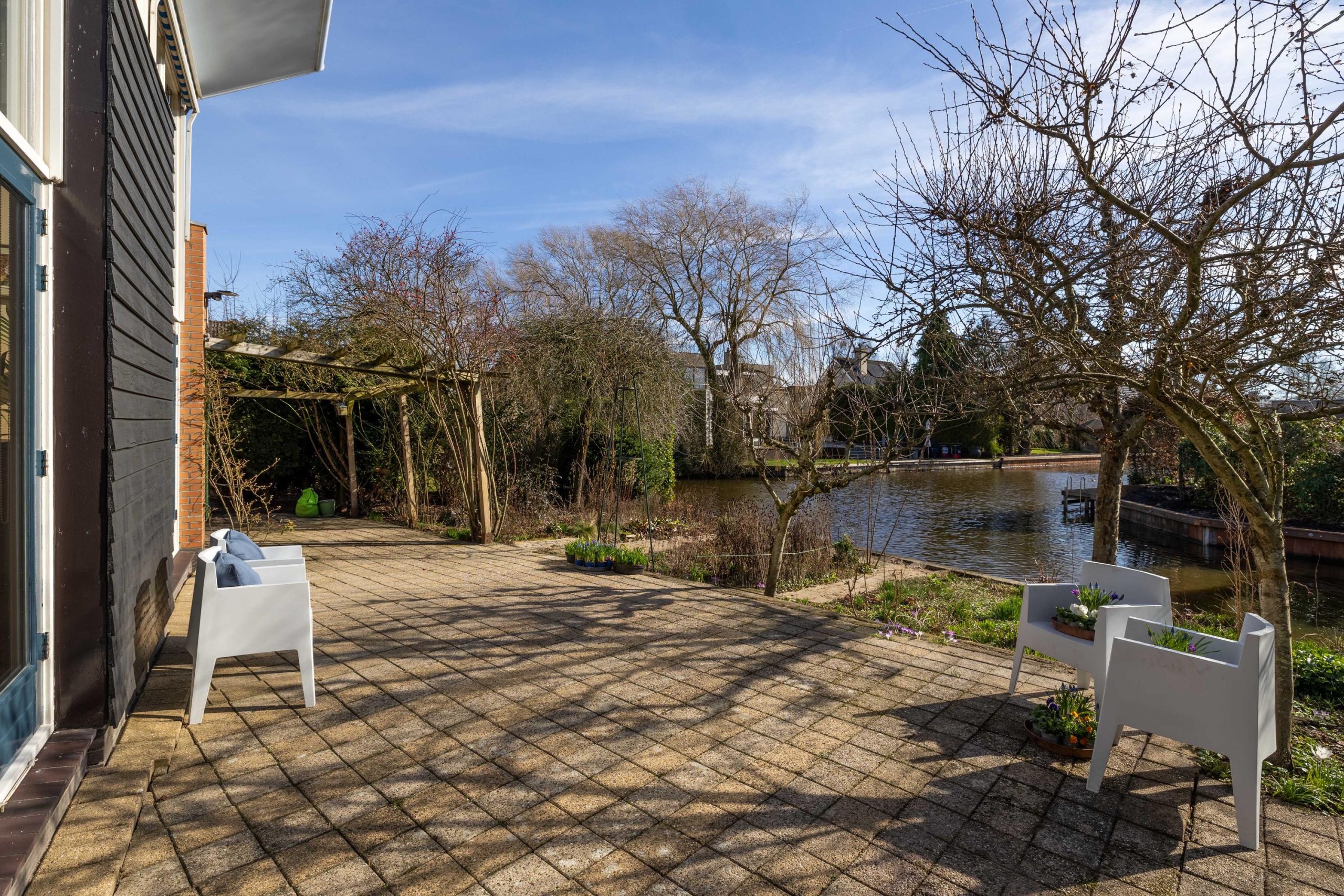 Rondom de woning ligt een royale tuin op een perceel van 508 m2. Door de ligging aan het vaarwater, de verschillende terrassen en de beplanting zijn er altijd fijne plekken om te zitten. In de zon of juist in de schaduw, met uitzicht over het water en volop privacy.
