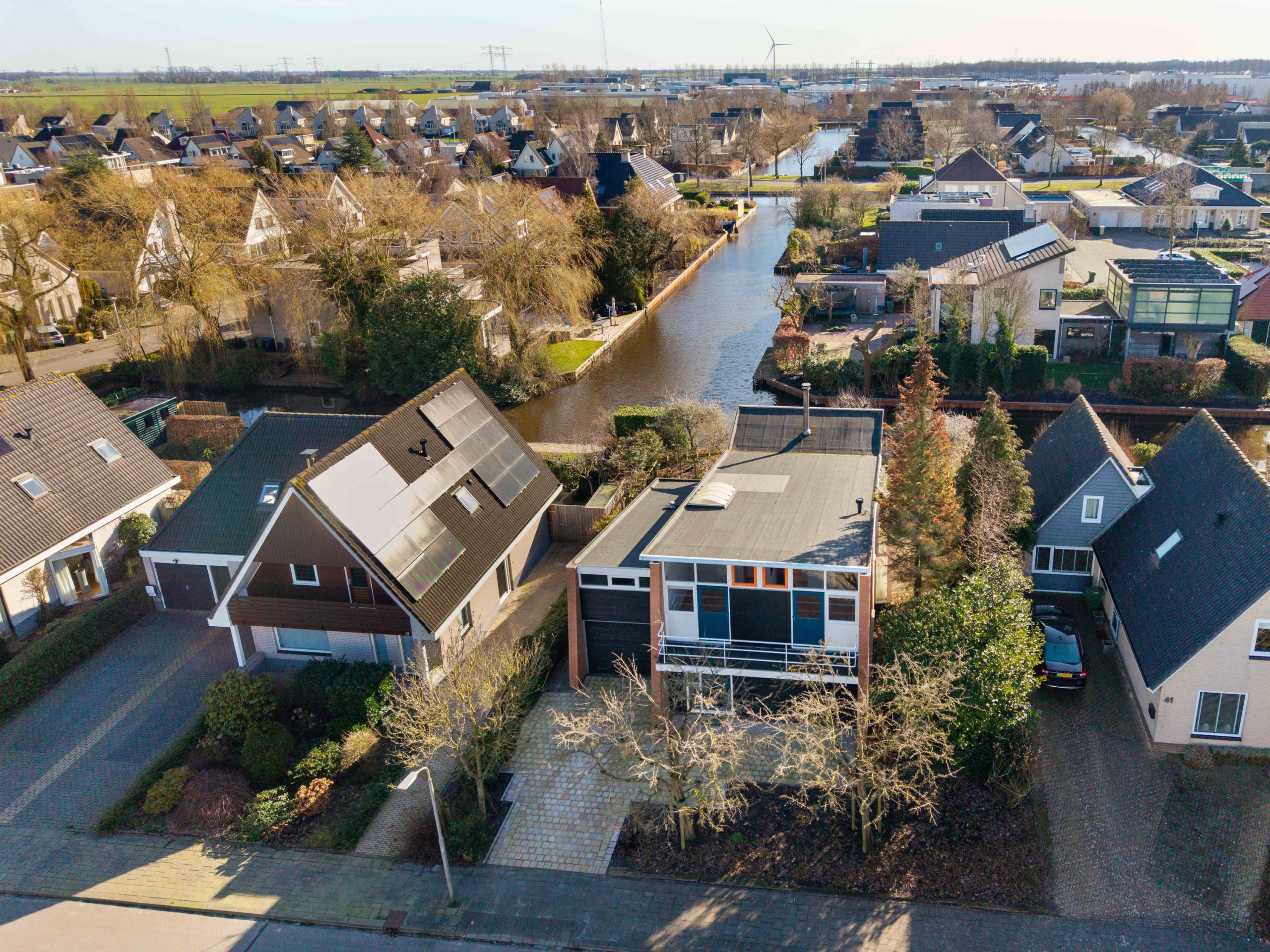 Aan het rustige vaarwater, in een groene en ruime opgezette woonwijk in Leeuwarden, staat deze bijzondere vrijstaande woning aan de Atsmastate 39. Een huis dat in 1993 gebouwd is en met zorg werd ontworpen door architect Peter Walon, in opdracht van de huidige eigenaar die zelf bouwkundig ingenieur is. Dat zie je terug in alles: de slimme indeling, de sterke lijnen in het ontwerp en vooral de manier waarop licht, tuin en water onderdeel van het wonen zijn geworden.