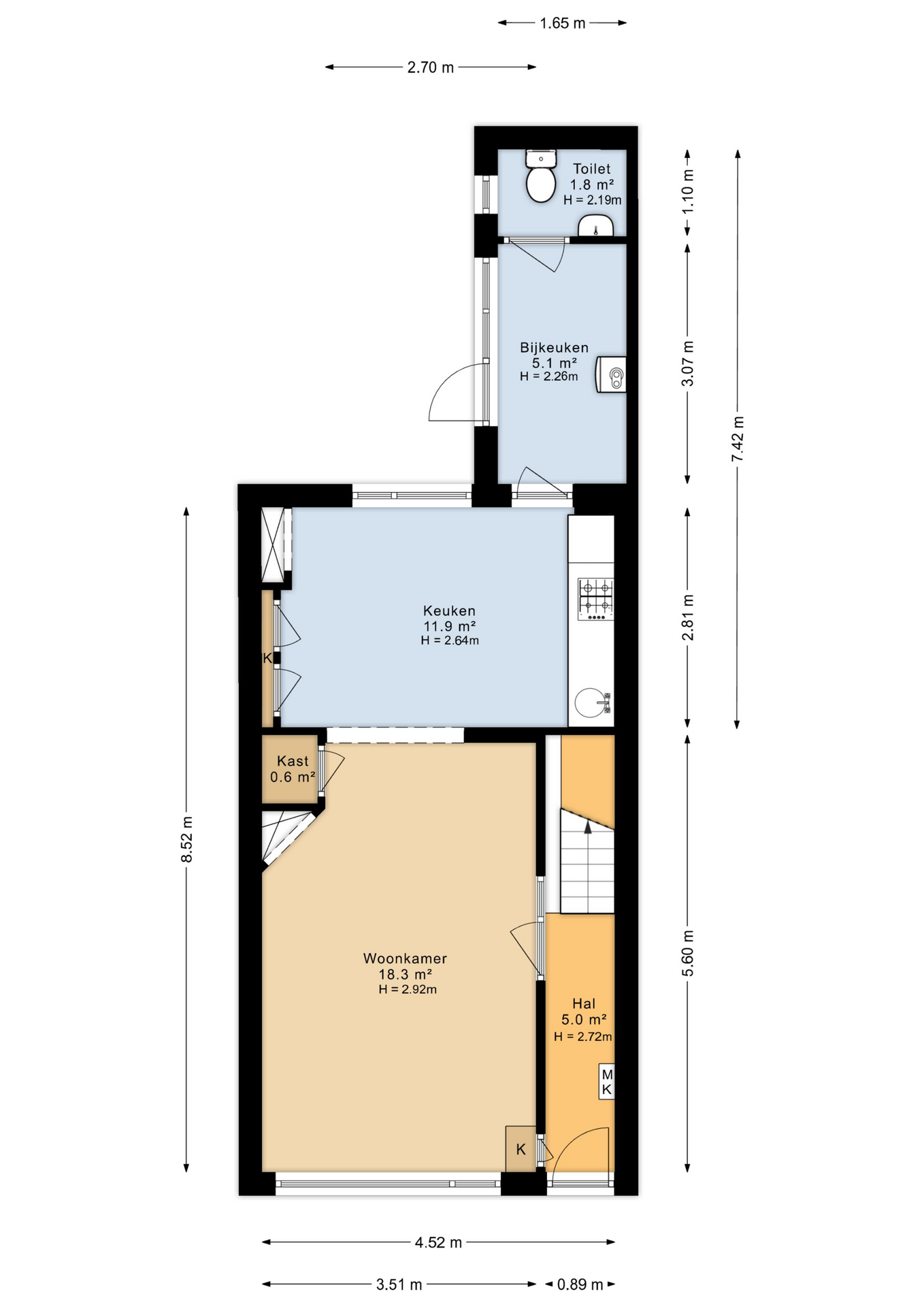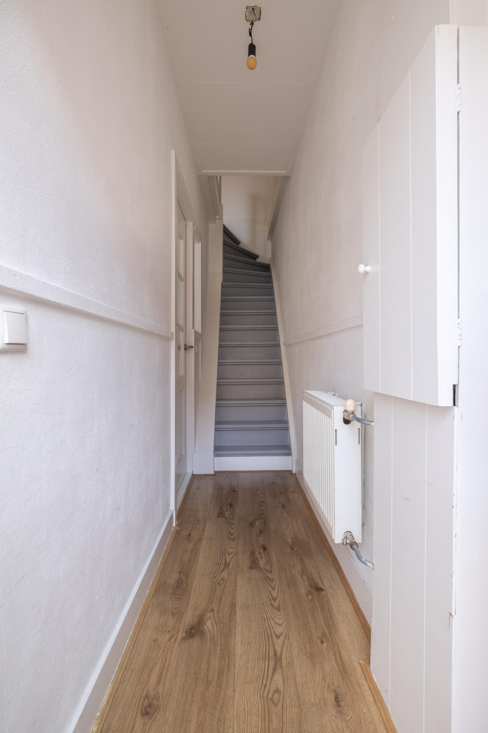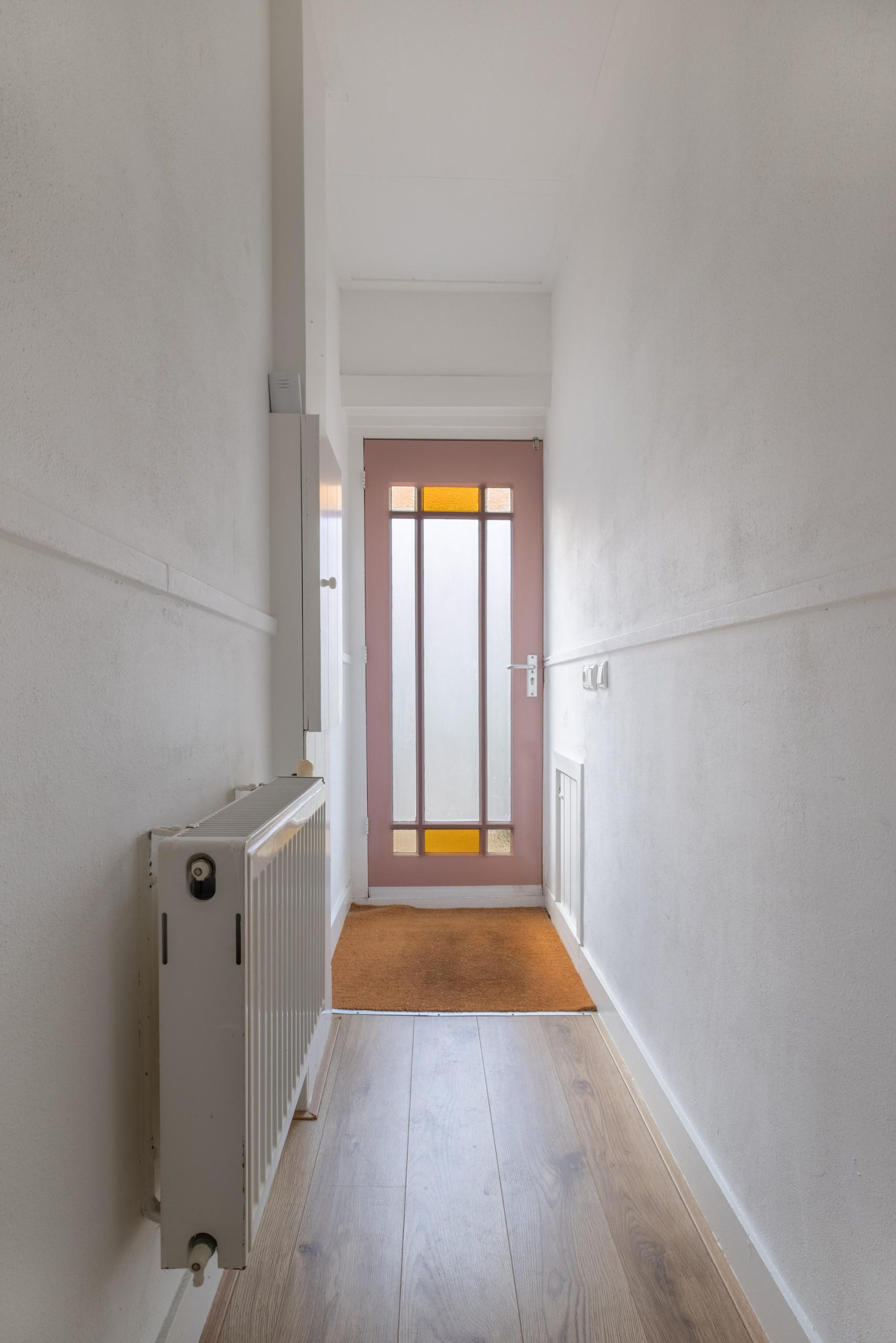 Je komt binnen in de hal met meterkast. Vanaf het eerste moment valt het licht op: helder, open en uitnodigend.