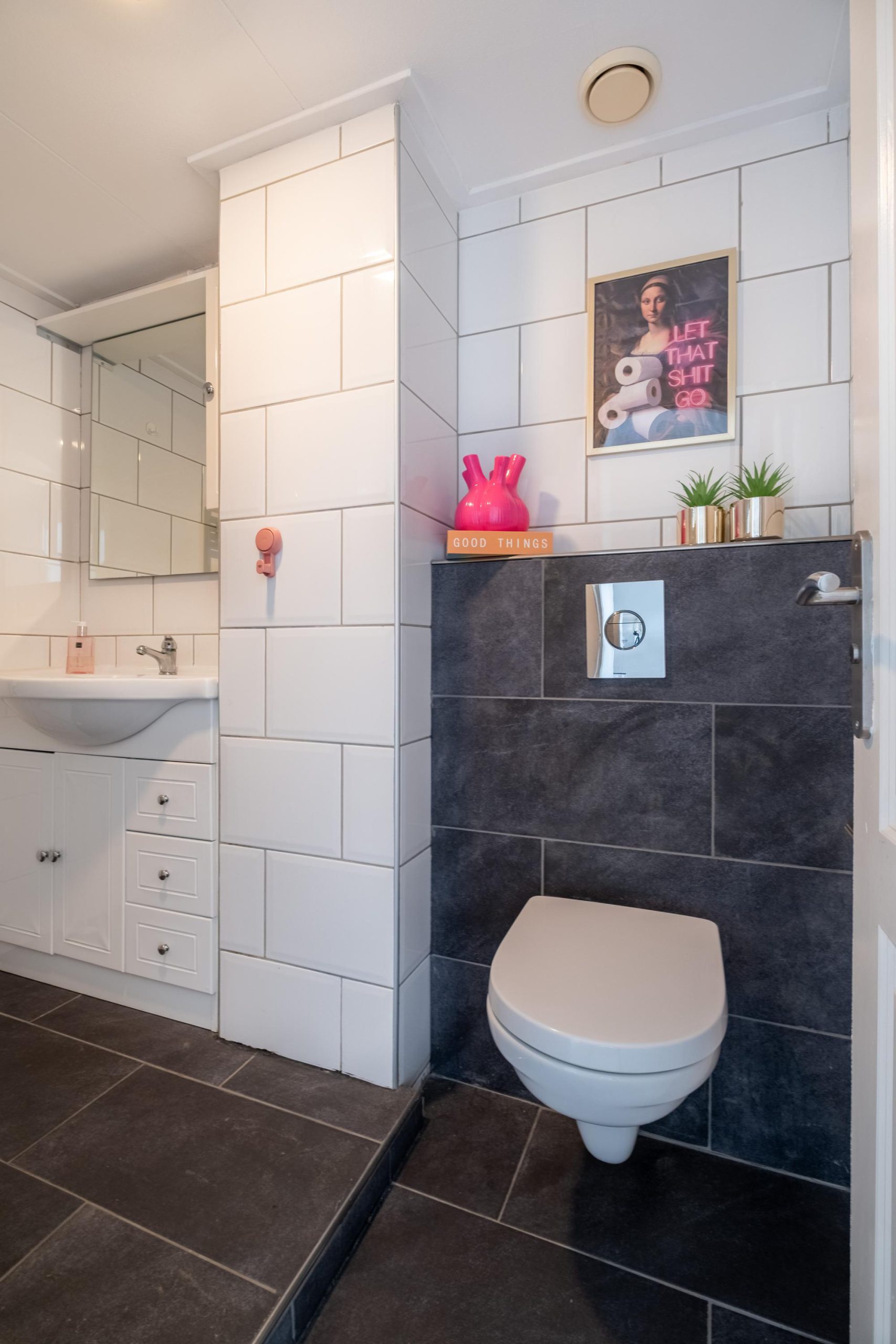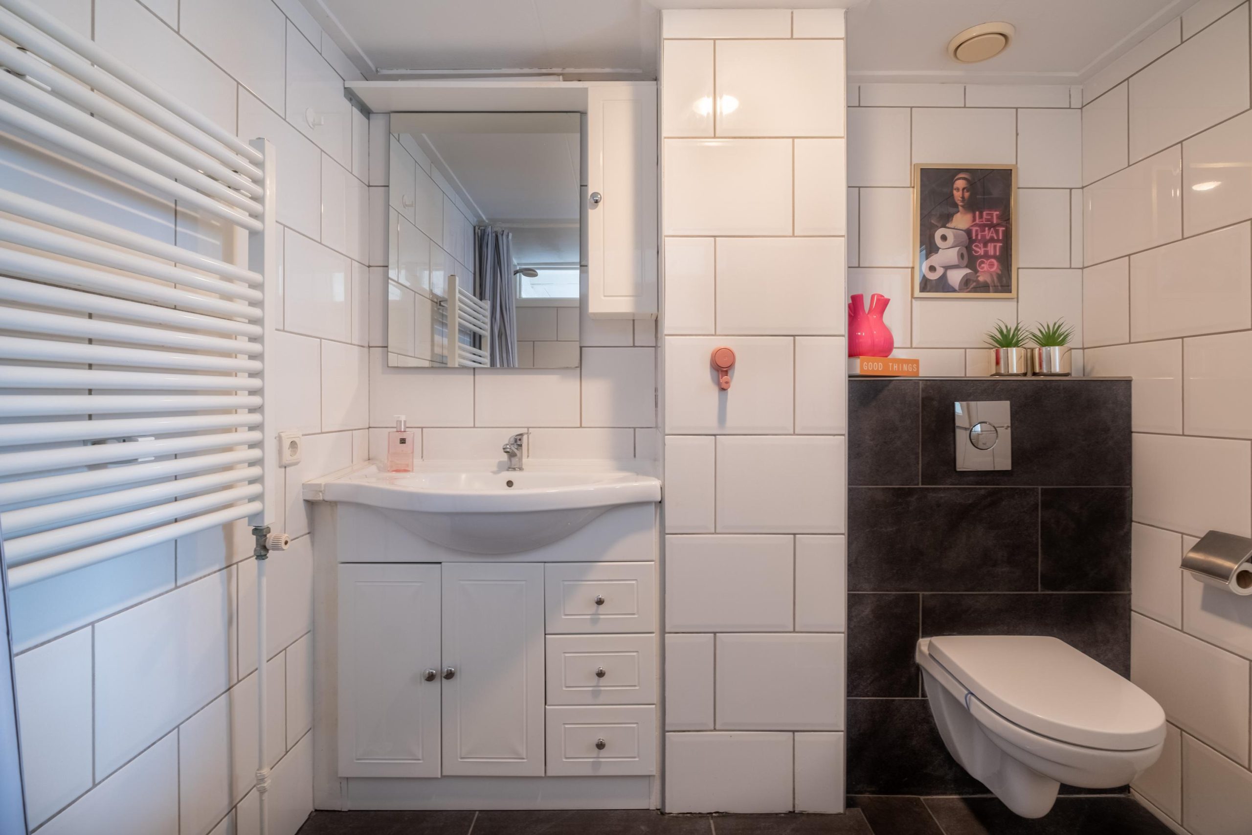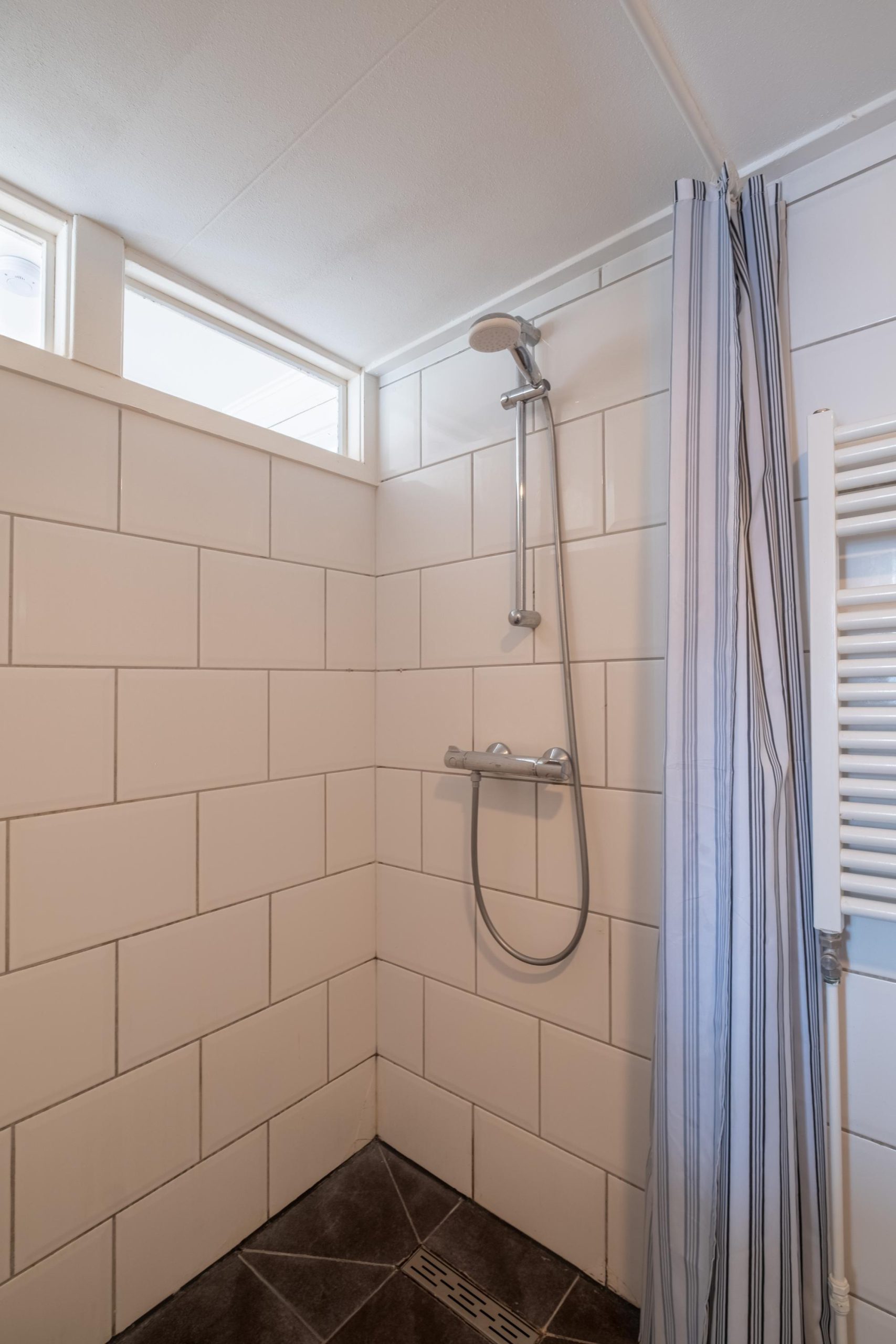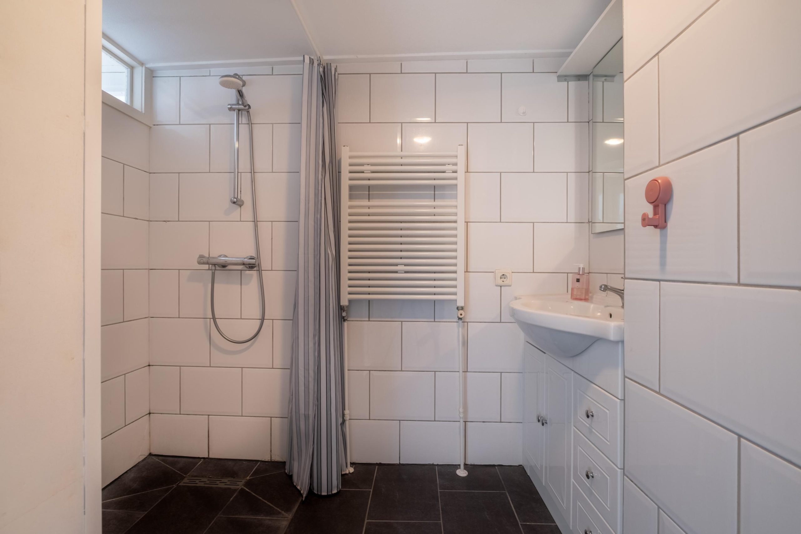 De badkamer is netjes en voorzien van een ruime inloopdouche, wastafelmeubel en toilet. Op deze verdieping vind je bovendien kunststof kozijnen aan de achterzijde.