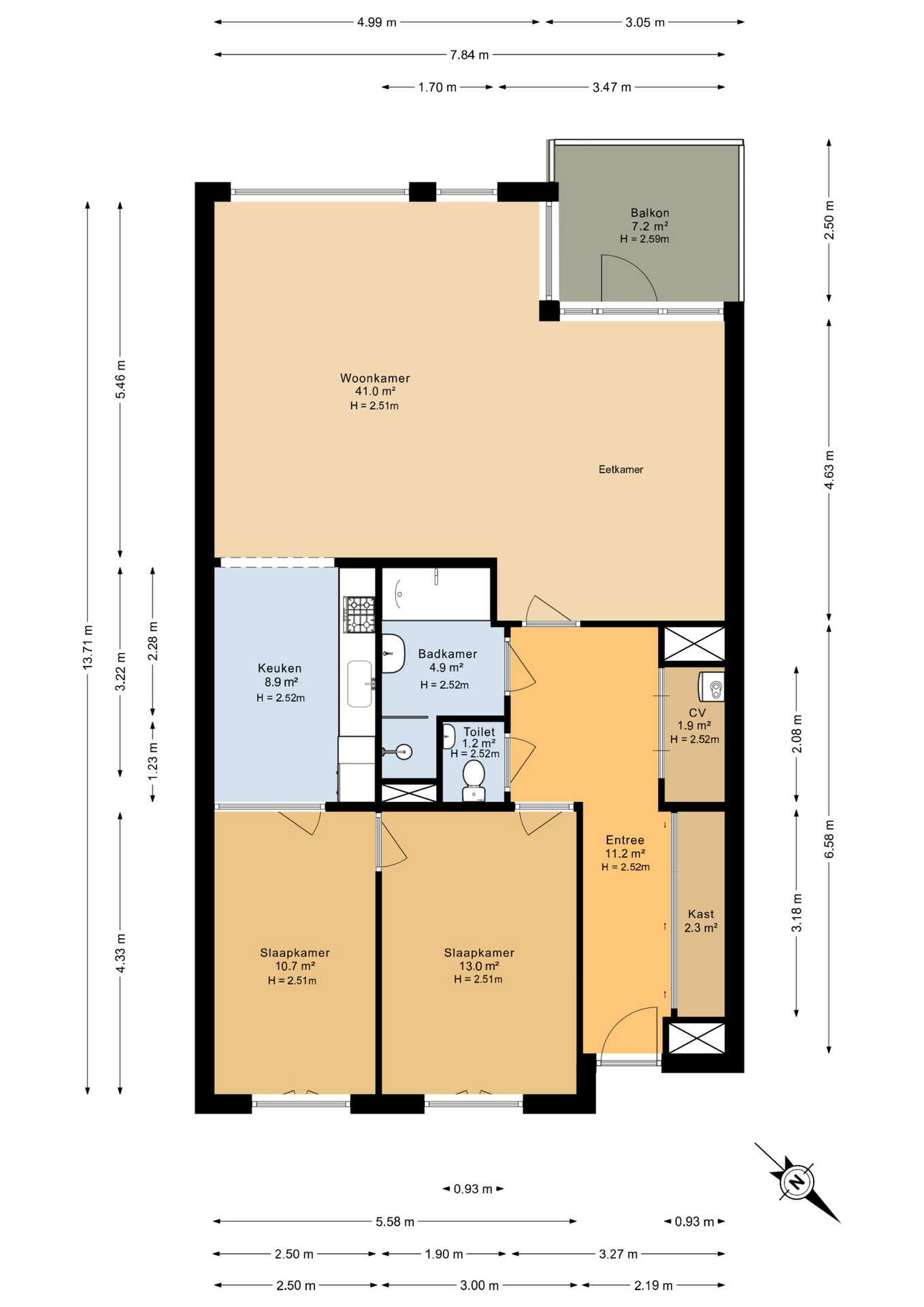 Bij binnenkomst stap je de hal in, waar meteen een handige inbouwkast te vinden is. Een praktische start van je rondleiding door het appartement.