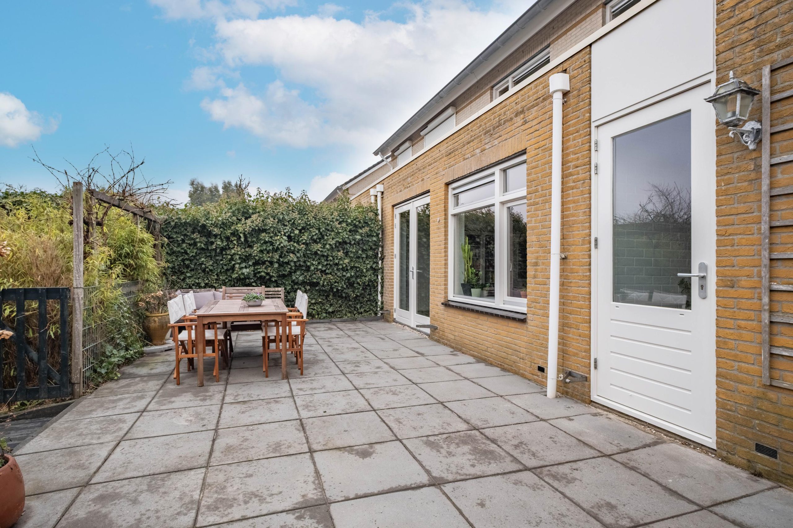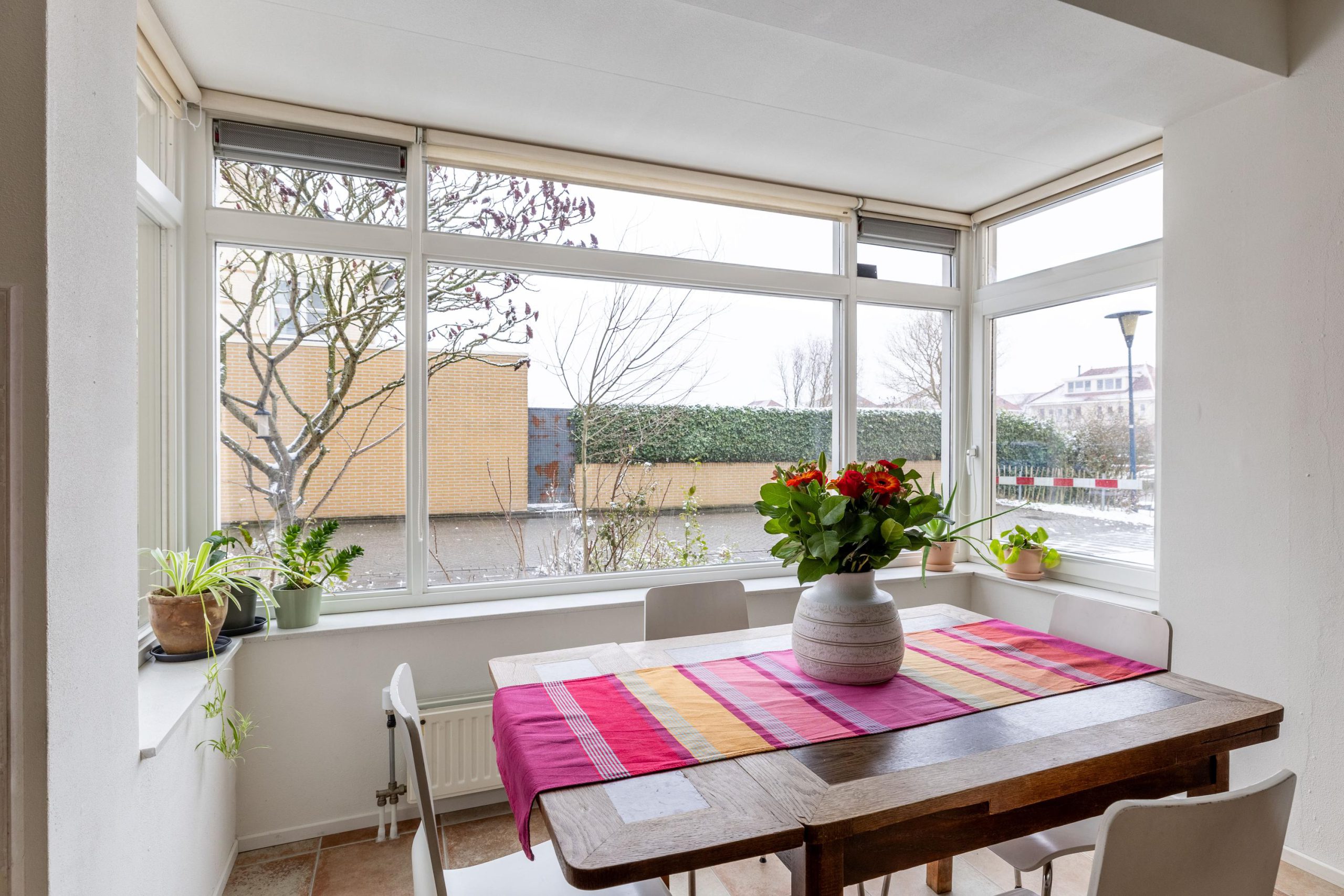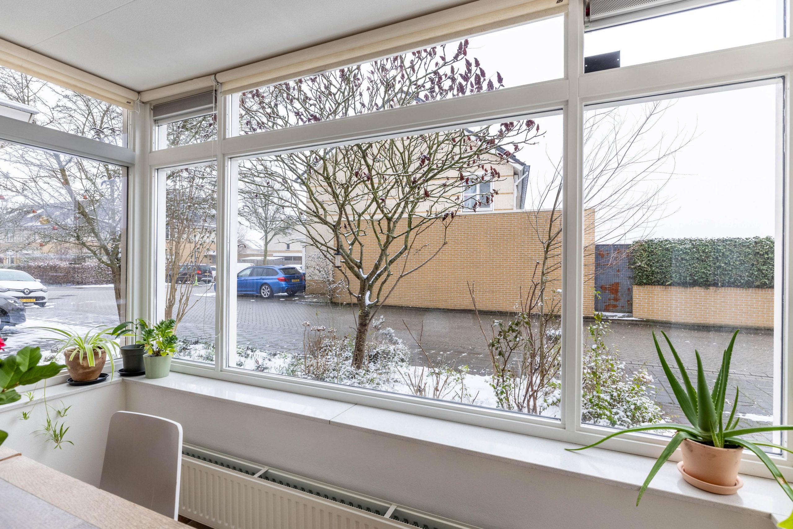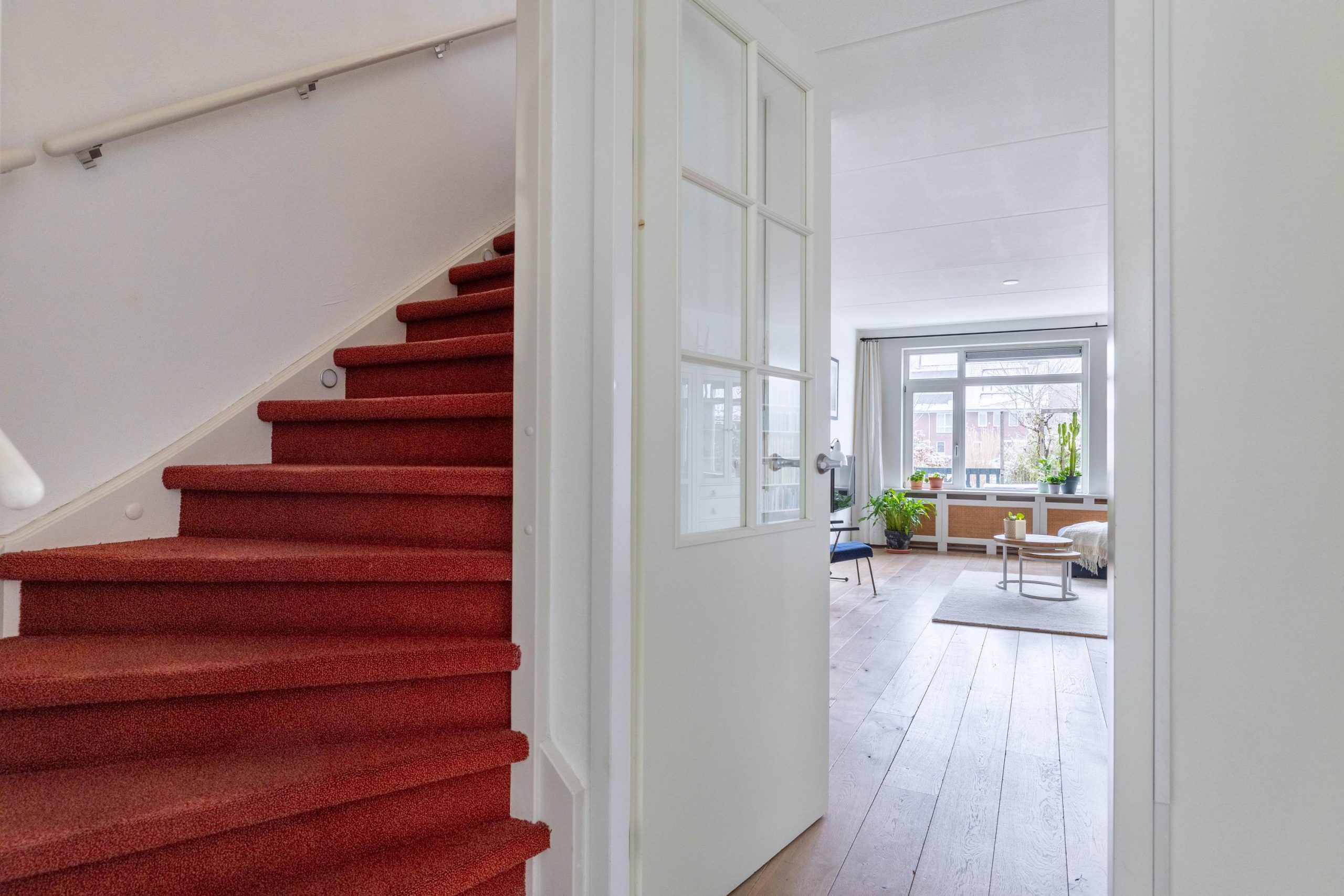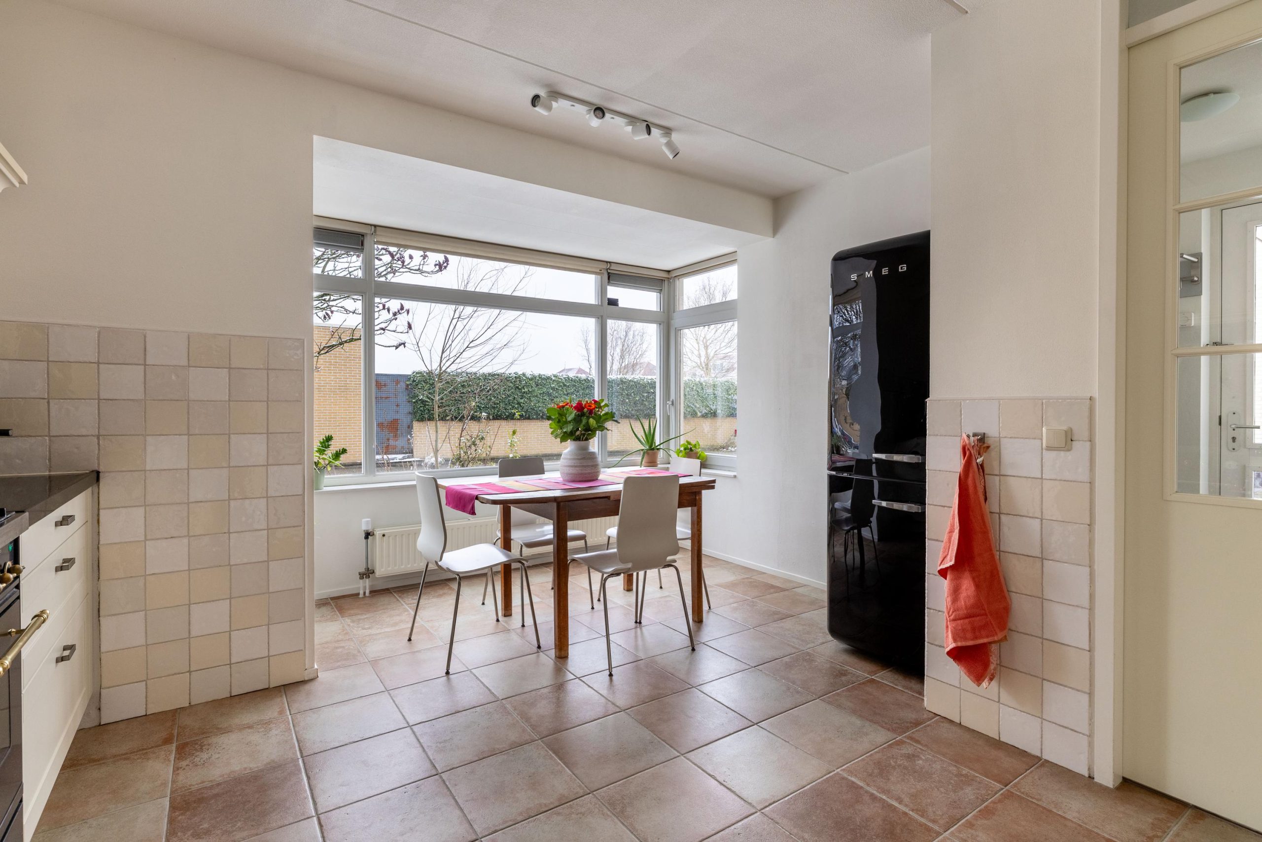 De woonkamer is uitgebouwd, wat zorgt voor extra leefruimte en een fijne, open sfeer. Dankzij de grote raampartijen valt het daglicht rijkelijk naar binnen en staat de woonkamer in directe verbinding met de achtertuin. Via de tuindeur loop je zo naar buiten, waardoor binnen en buiten op een natuurlijke manier in elkaar overlopen.