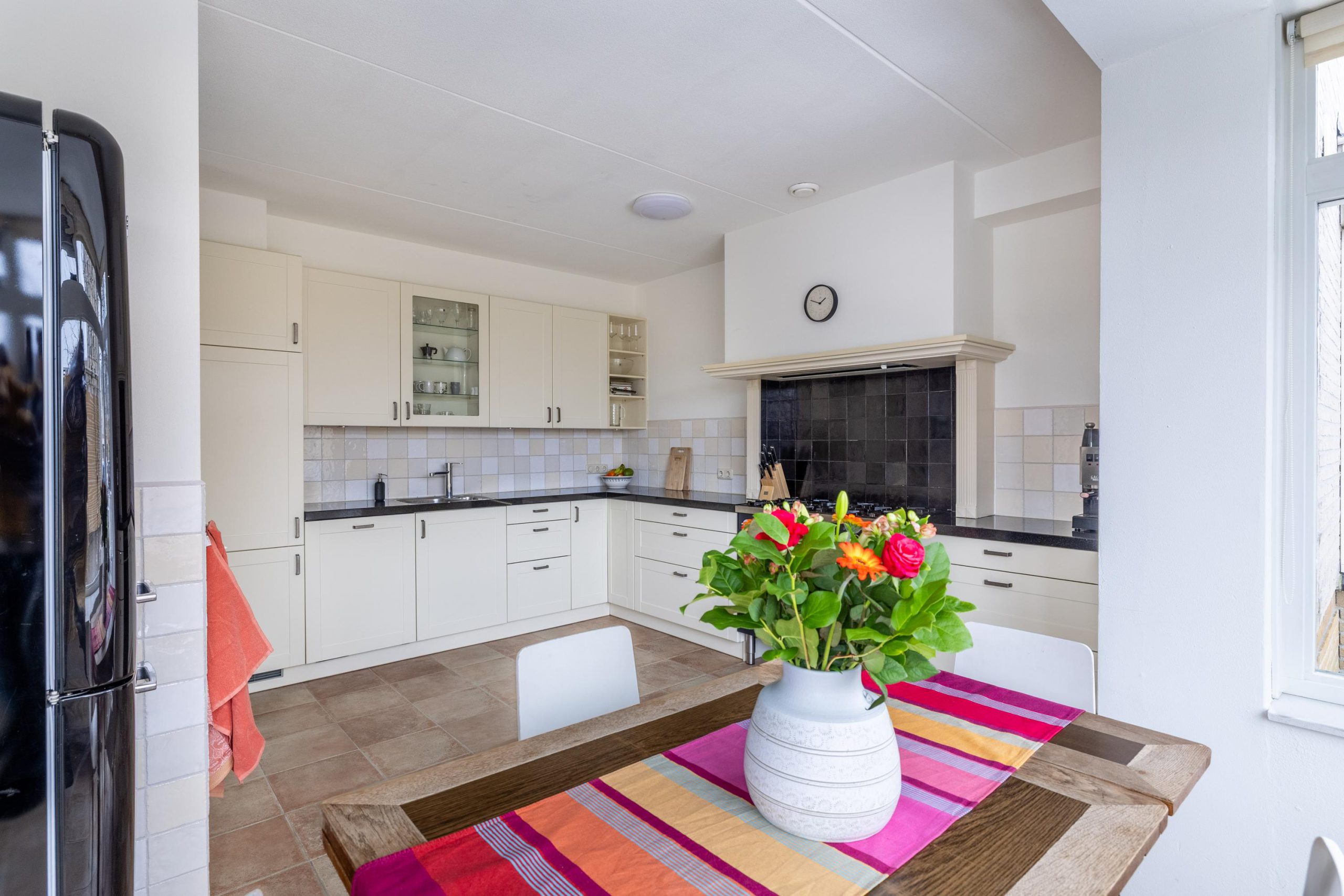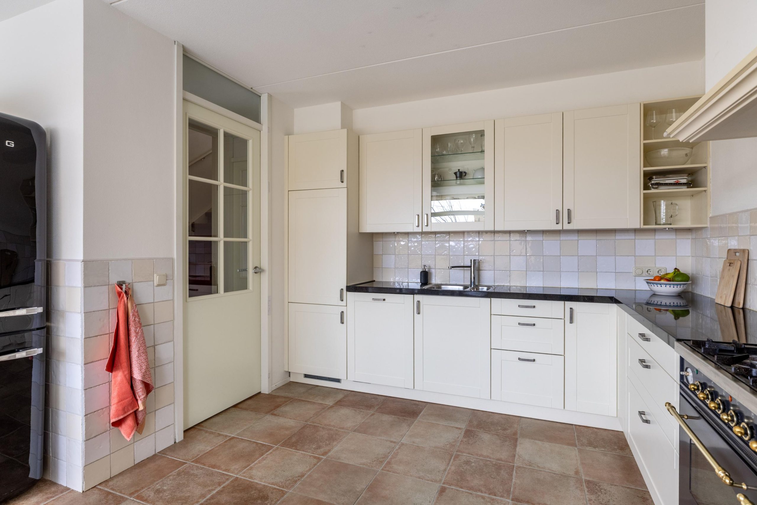 Bij binnenkomst merk je direct dat dit een comfortabele en prettige gezinswoning is. Aan de voorzijde bevindt zich de royale, dichte keuken met erker. Dankzij de grote raampartijen is dit een heerlijke lichte ruimte waar koken en tafelen moeiteloos samengaan. De keuken is ruim opgezet en biedt volop werk- en kastruimte.