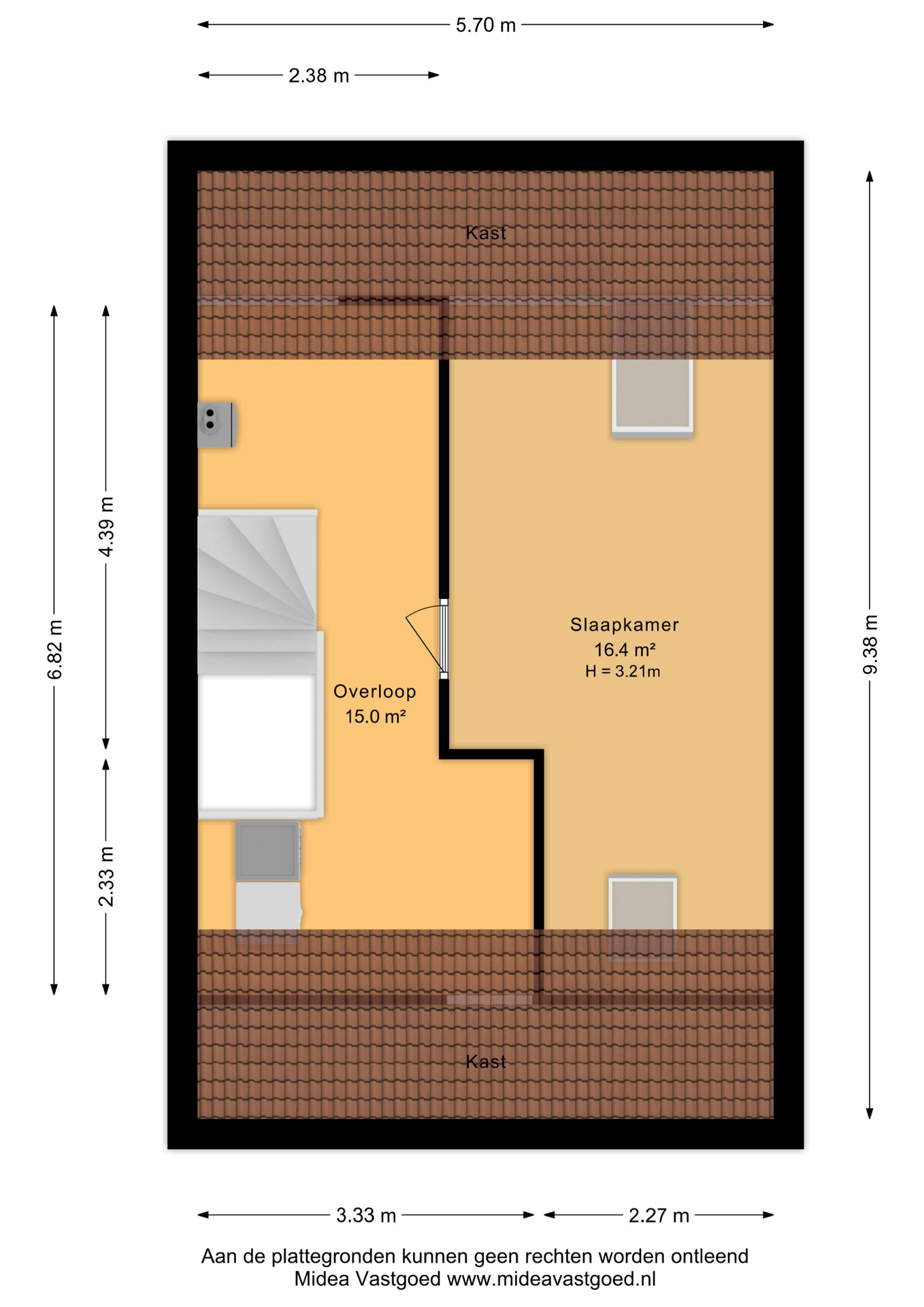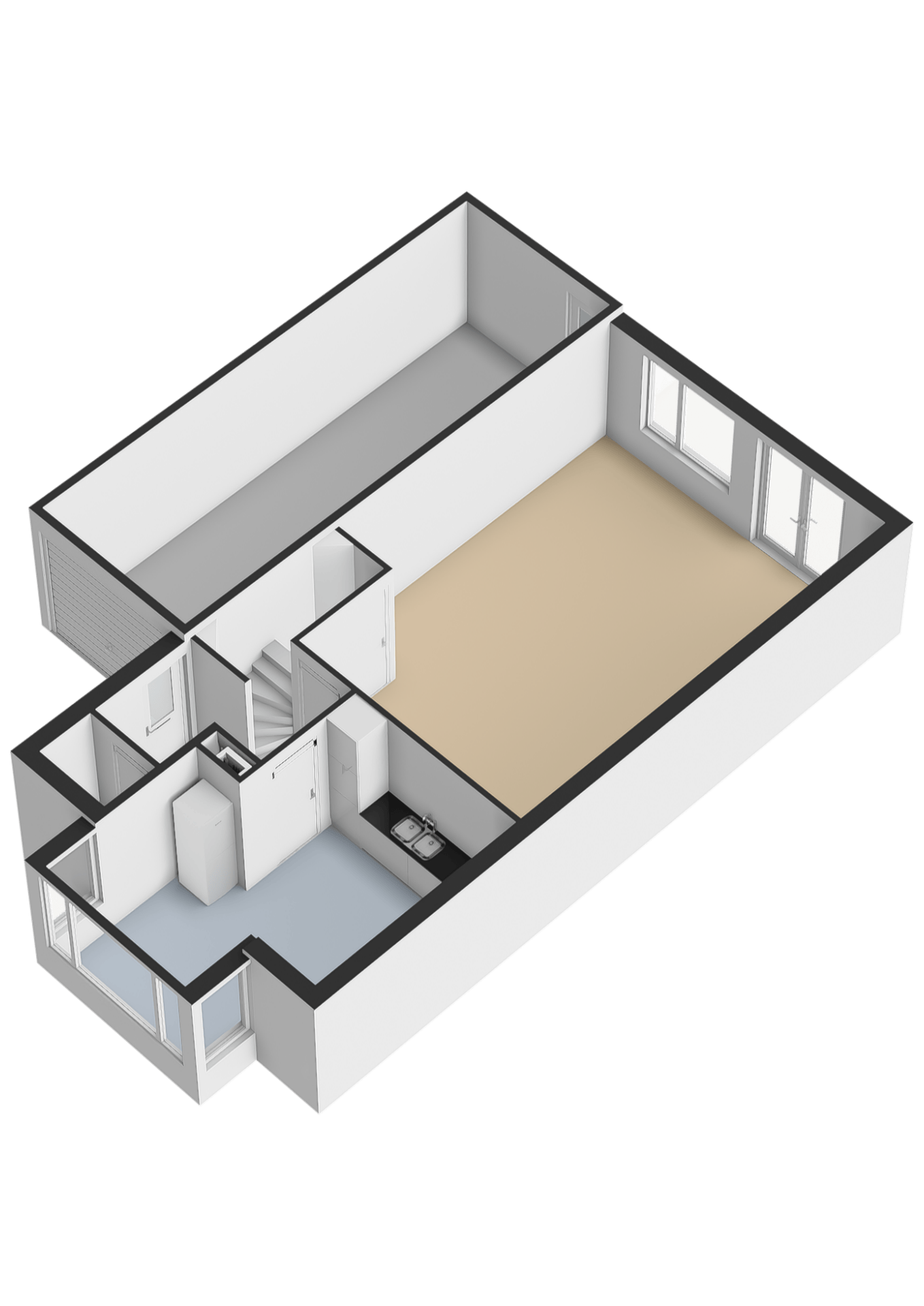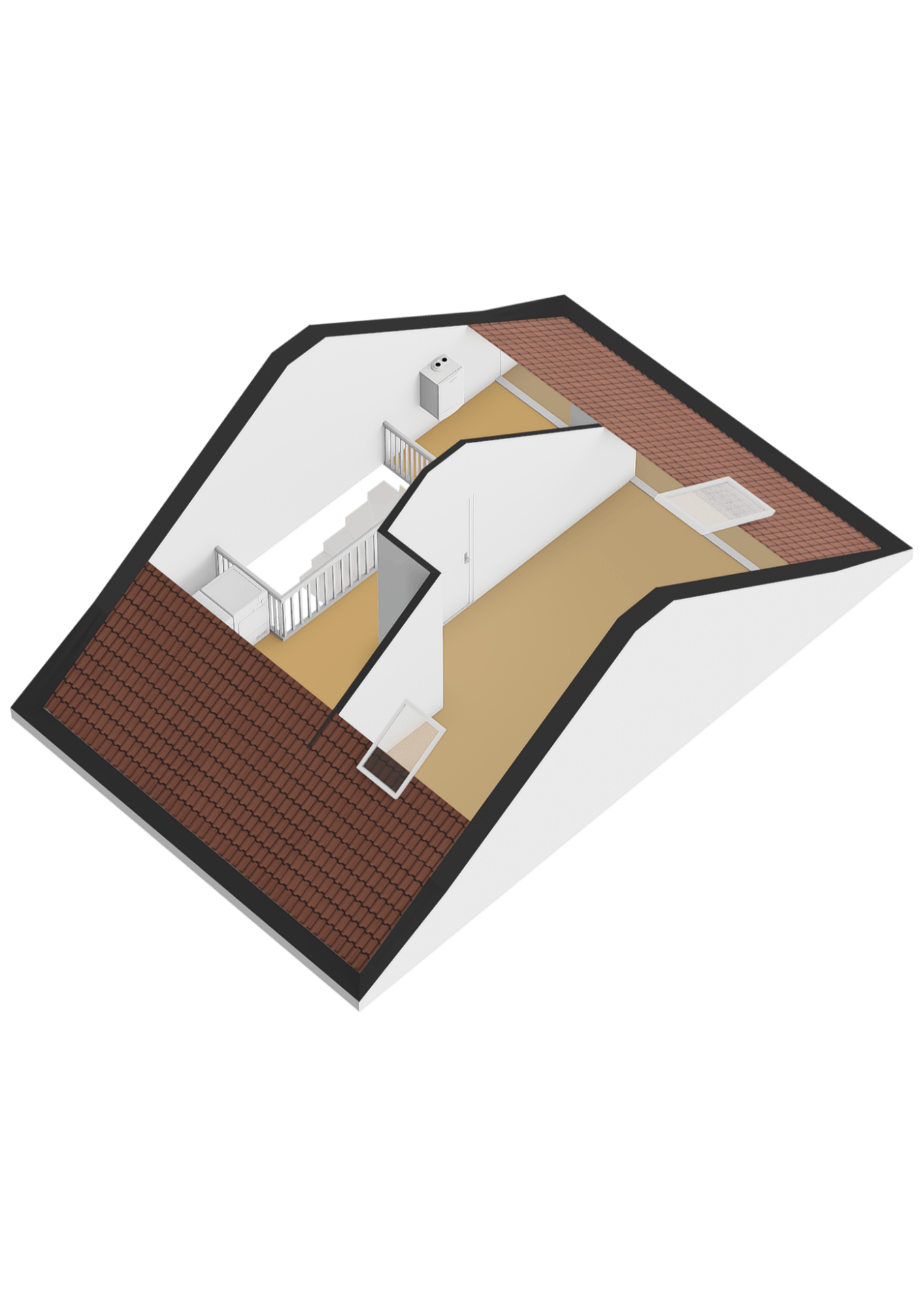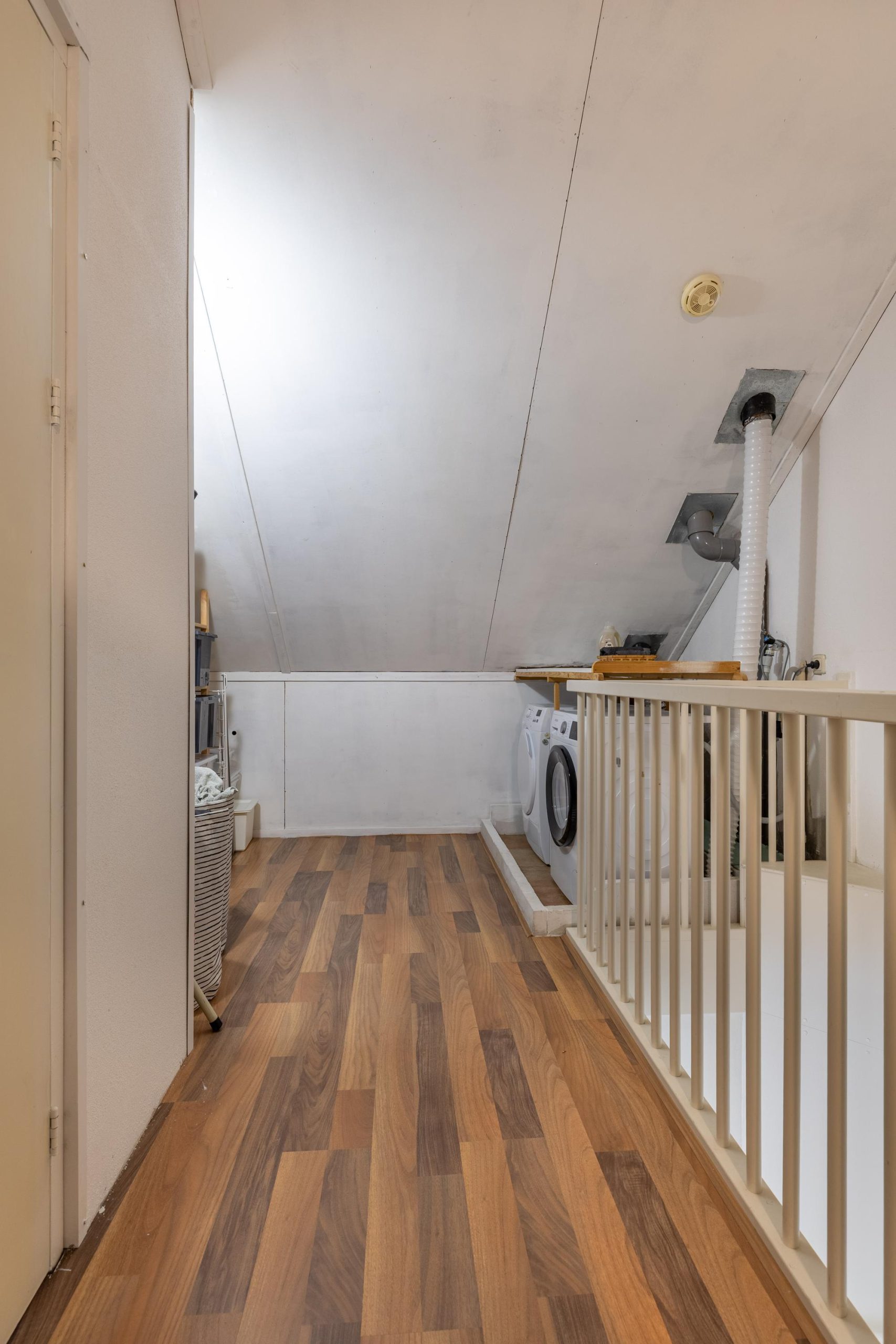 De zolderverdieping is verrassend ruim en biedt volop potentie. Hier kunnen twee volwaardige slaapkamers worden gerealiseerd, ideaal voor een groter gezin, thuiswerken of hobbyruimte. Daarnaast is er ruimte voor de wasmachine en droger en extra bergruimte.