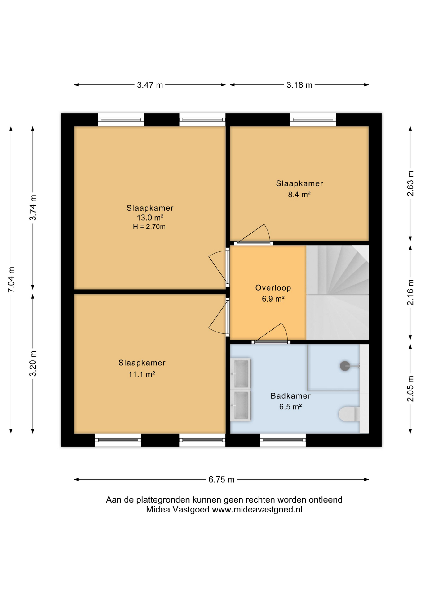 Op de eerste verdieping bevinden zich drie ruime slaapkamers en de moderne badkamer. De badkamer is luxe uitgevoerd en voorzien van een inloopdouche, wastafelmeubel en een tweede toilet.