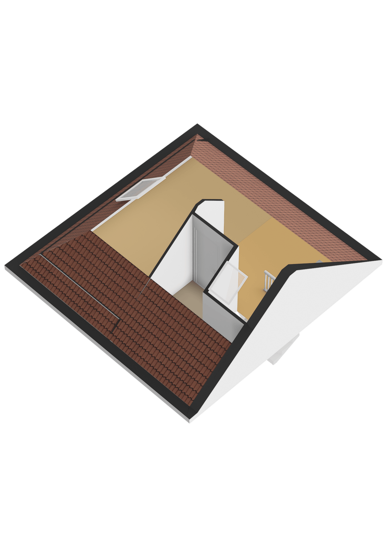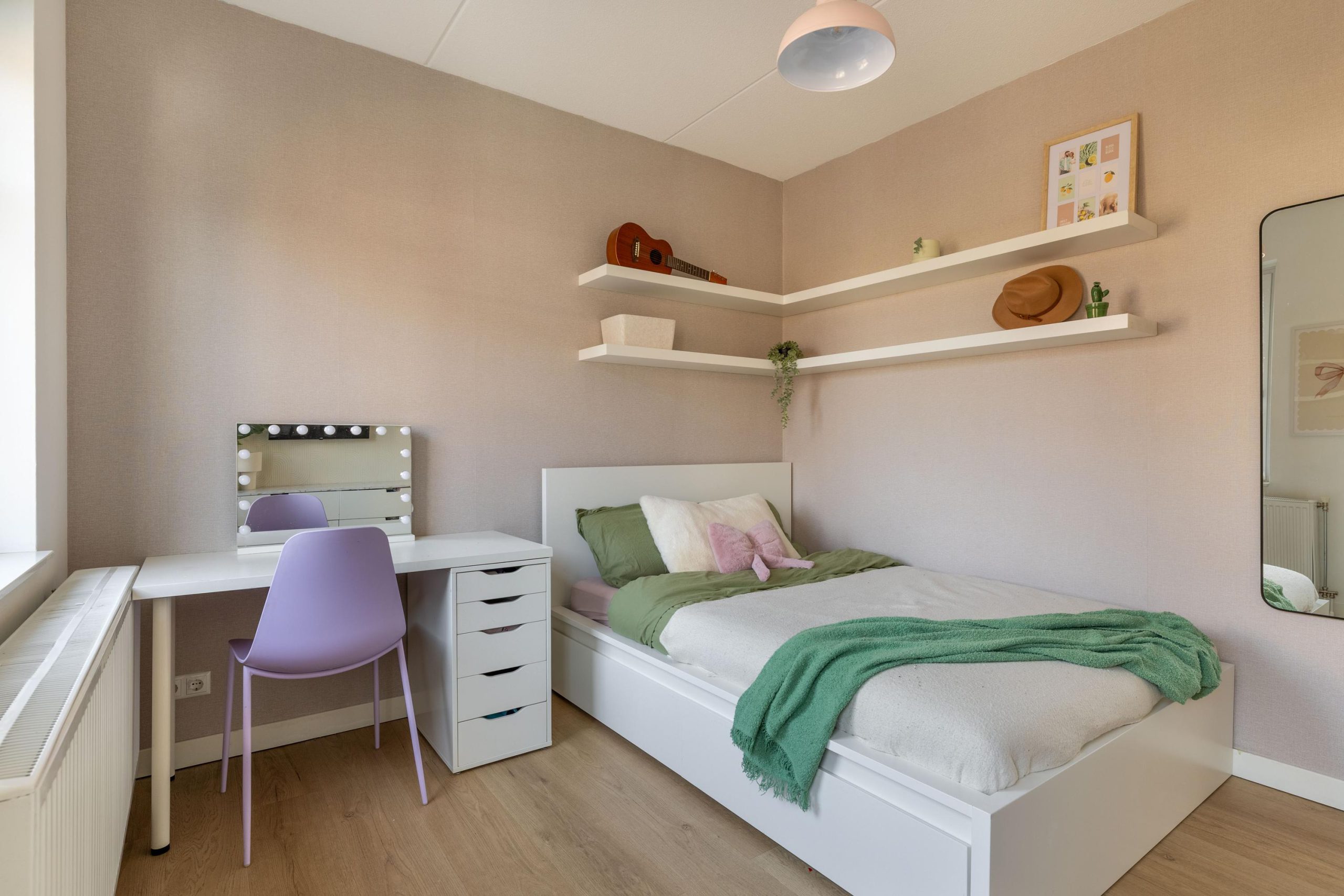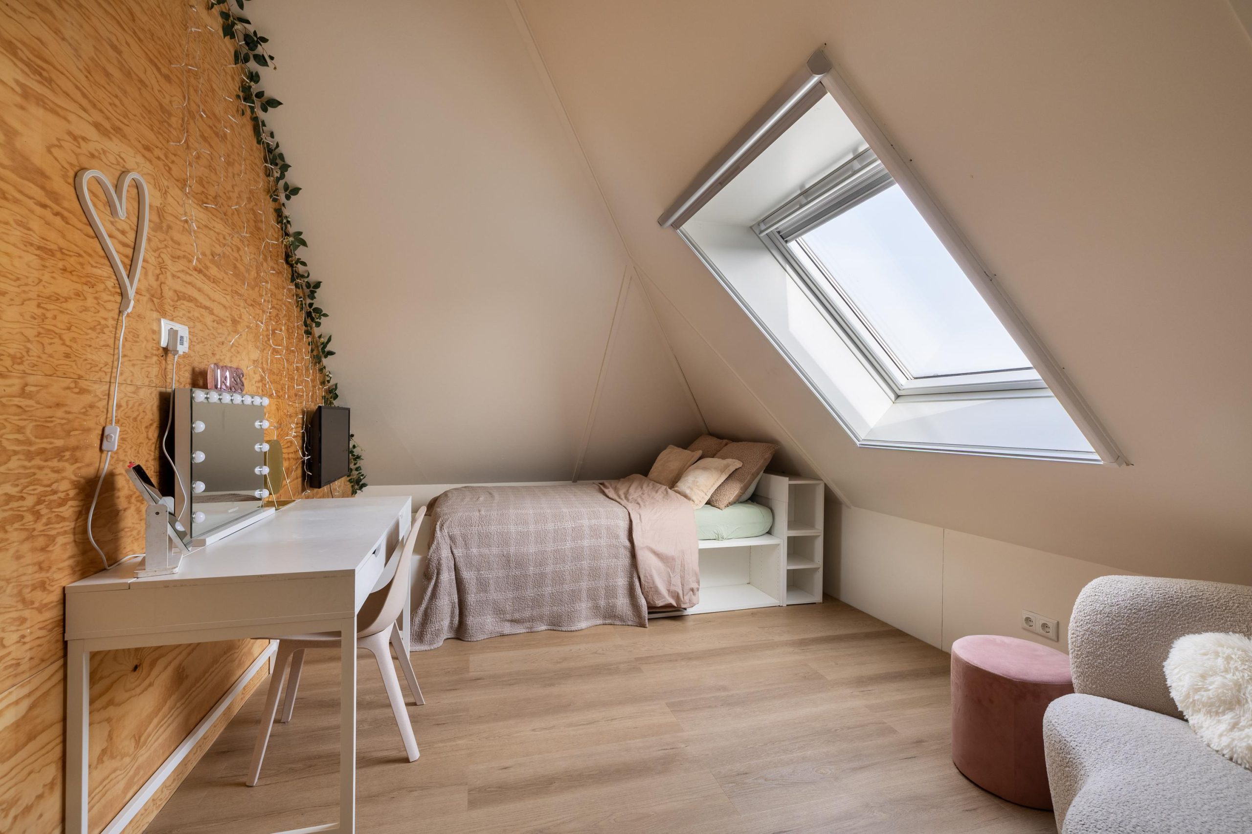 De tweede verdieping biedt een volwaardige vierde slaapkamer. Daarnaast bevindt zich hier een technische ruimte waar onder andere de binnenunit van de warmtepomp staat opgesteld. Deze ruimte wordt momenteel gebruikt als berging.