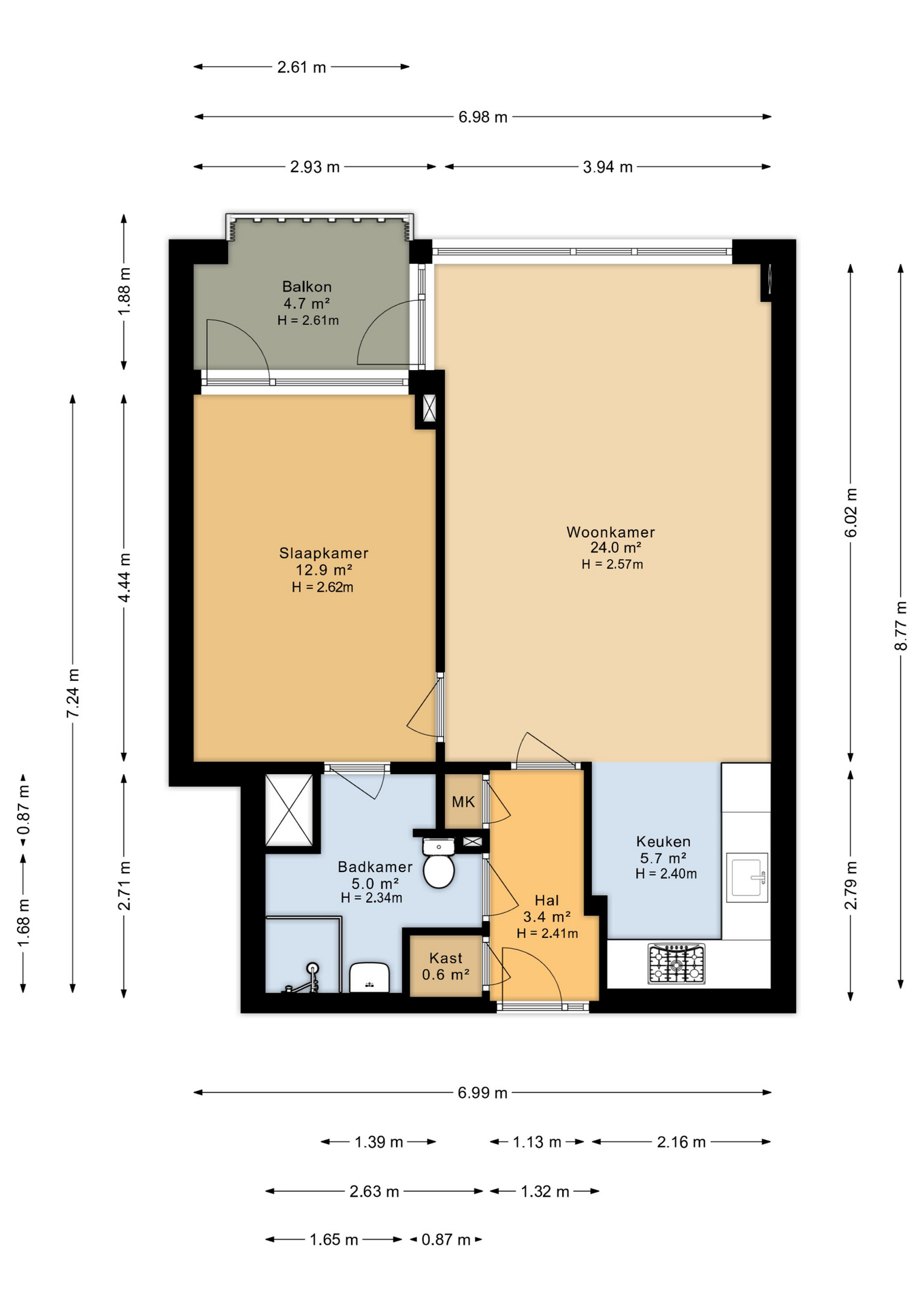 - Balkon bereikbaar vanuit woonkamer en slaapkamer