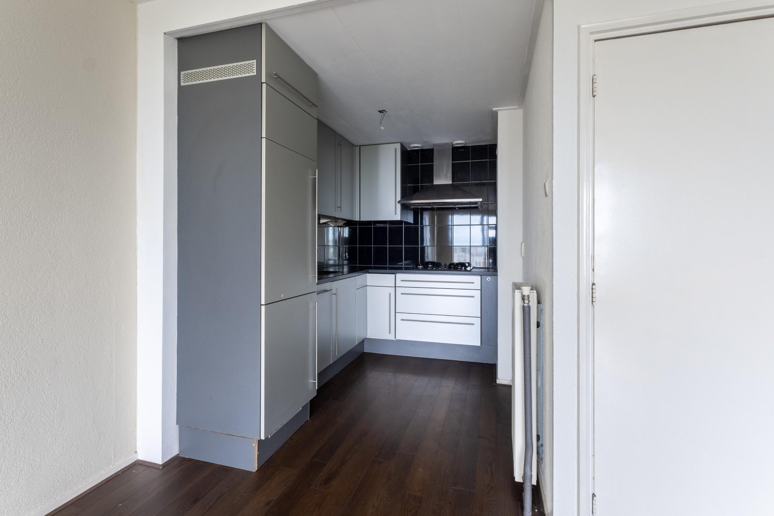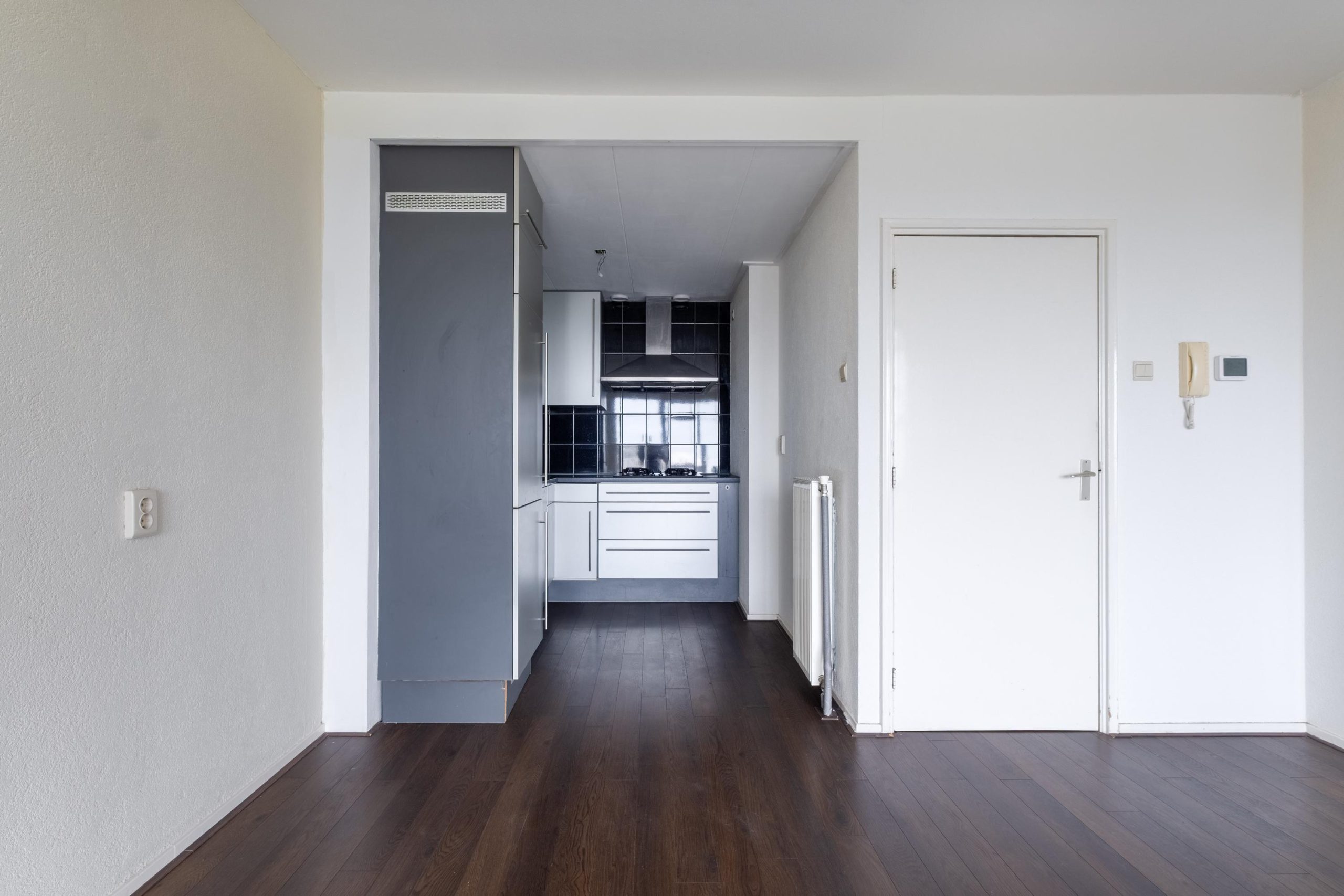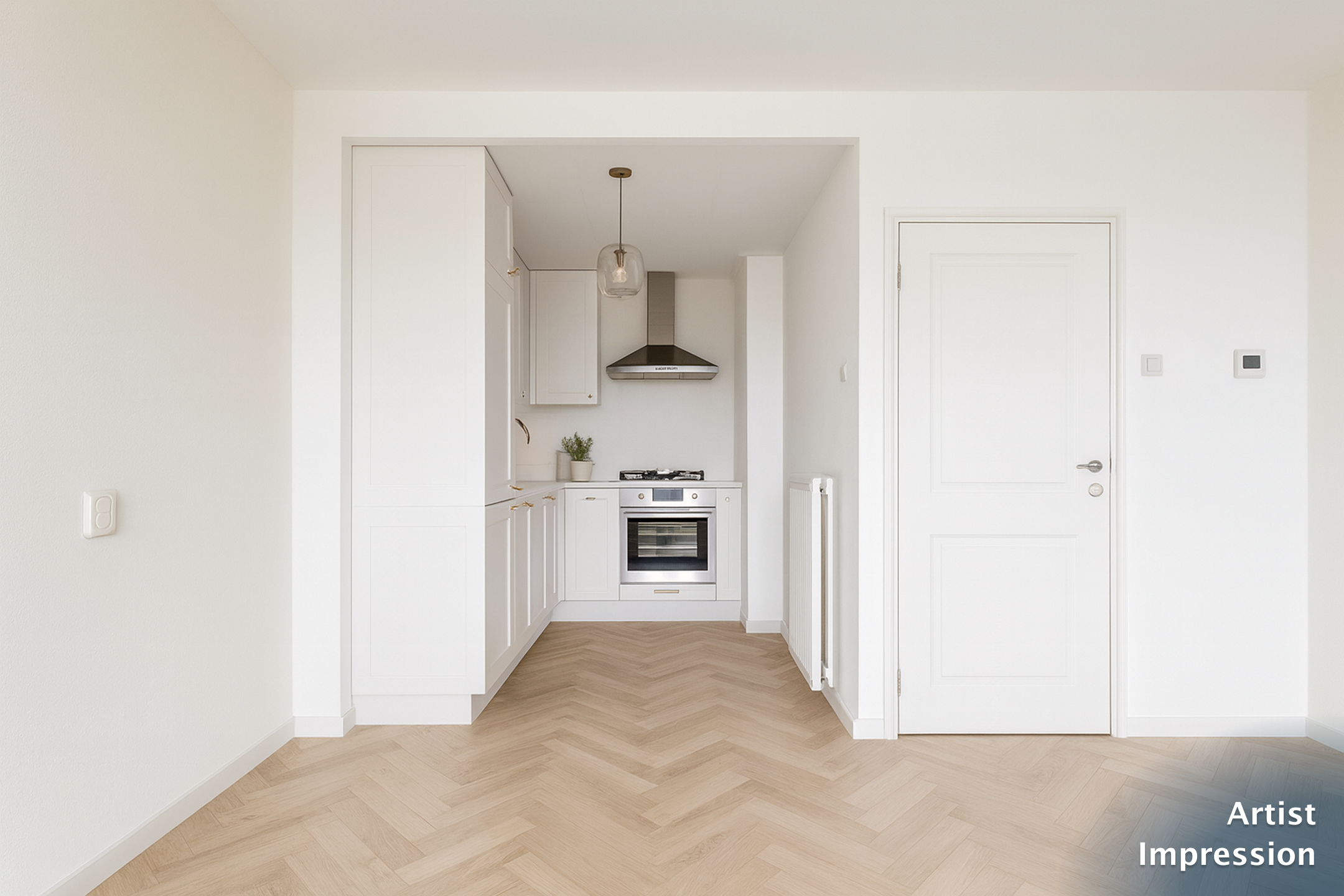 Via de hal – met meterkast en extra bergruimte – kom je binnen in de woonkamer met open keuken. De keuken is uitgerust met een koelkast, vriezer, vaatwasser, gaskookplaat en afzuigkap. Vanuit de woonkamer stap je het balkon op, een fijne buitenplek die je ook vanuit de slaapkamer kunt bereiken.