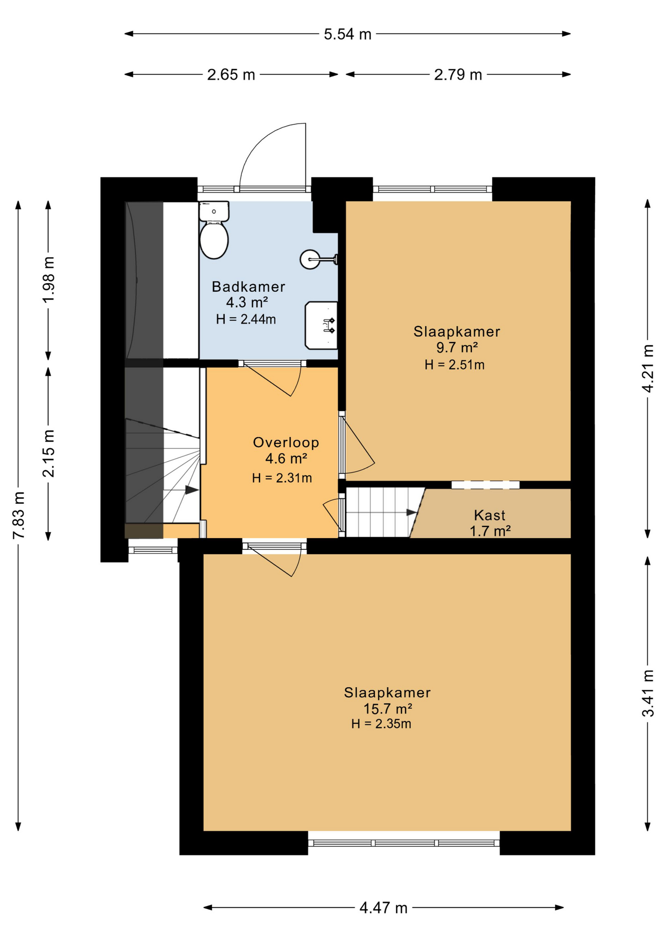 De tweede verdieping biedt een derde slaapkamer, aangevuld met een overloop die ruimte geeft voor extra gebruiksmogelijkheden. Denk aan werken, logeren of hobby’s—een verdieping die meegroeit met jouw woonwensen en nog verder geoptimaliseerd kan worden.