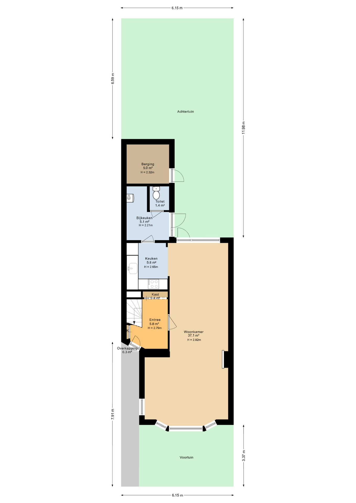 Achter de keuken ligt de praktische bijkeuken waar de cv-ketel (Nefit 2015, eigendom) staat. Hier vind je ook de aansluiting voor de wasmachine én een toilet. Een bijzonder waardevolle plek voor extra opbergruimte en dagelijkse voorzieningen.