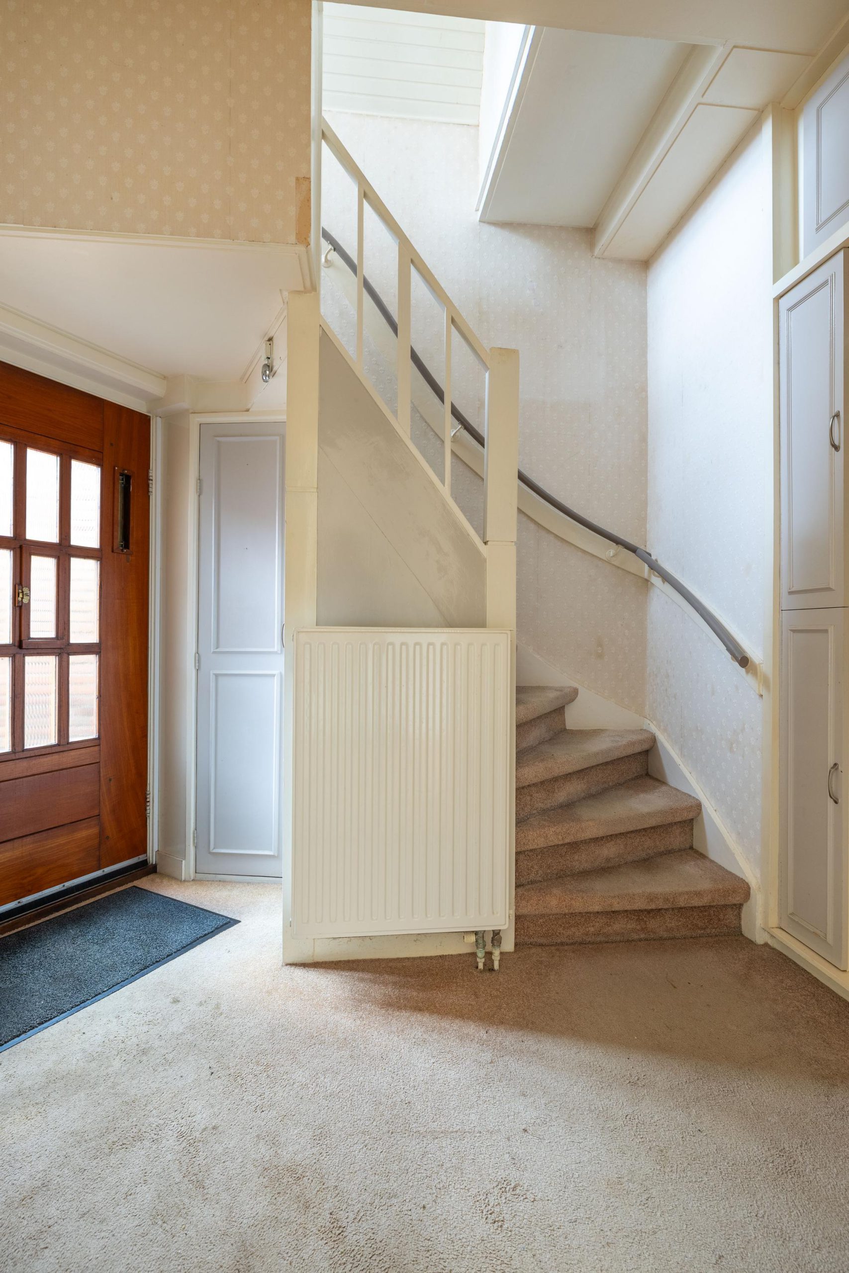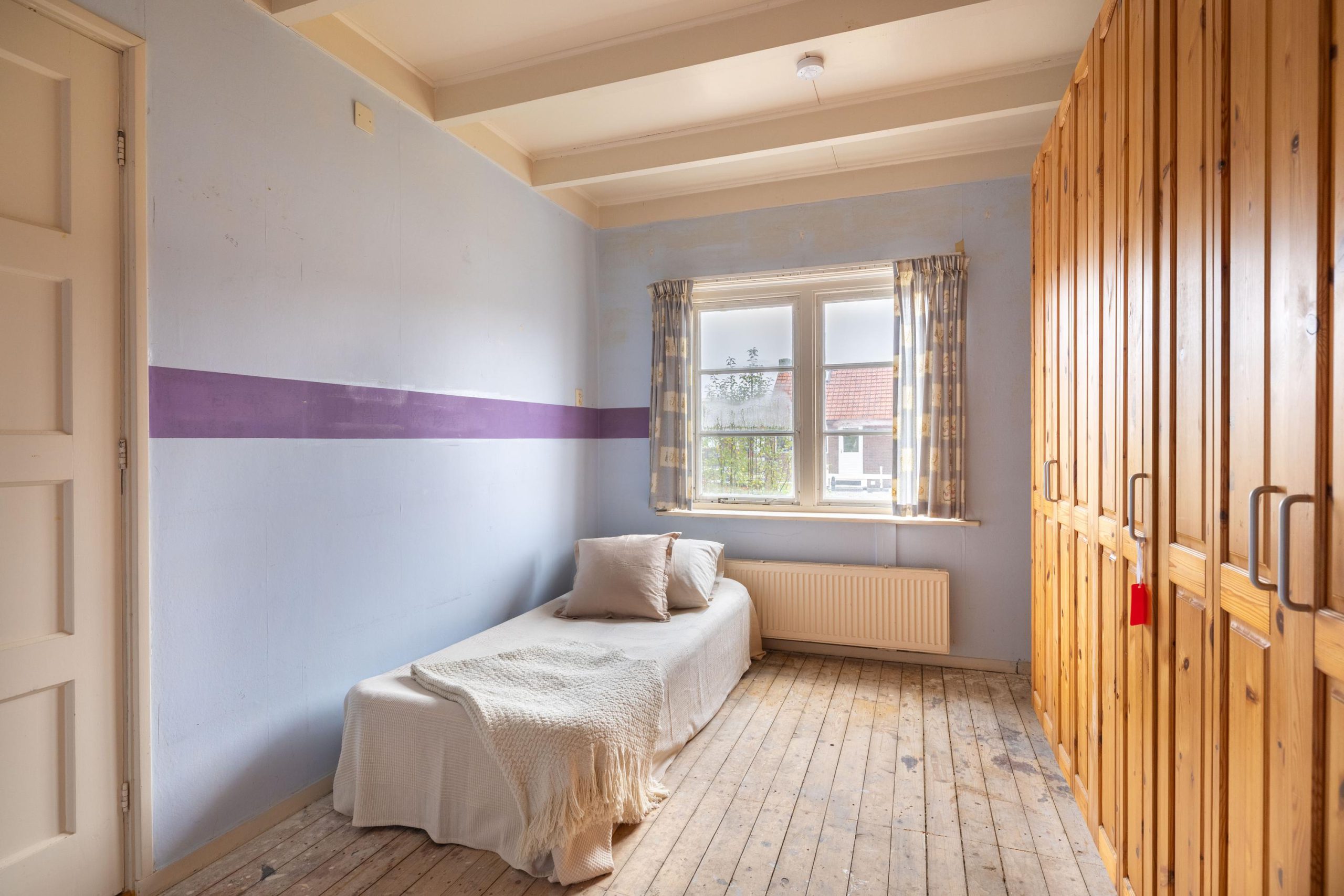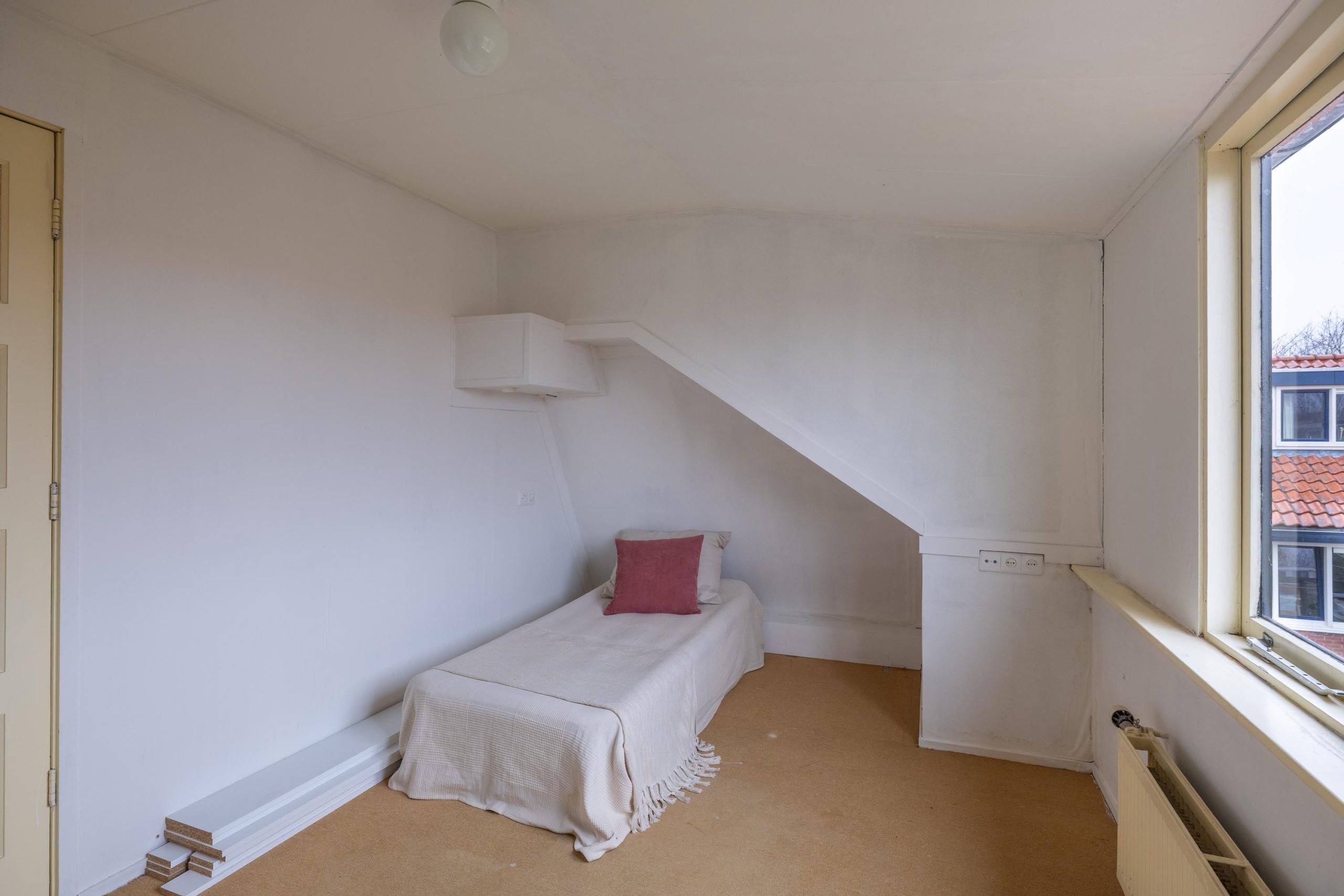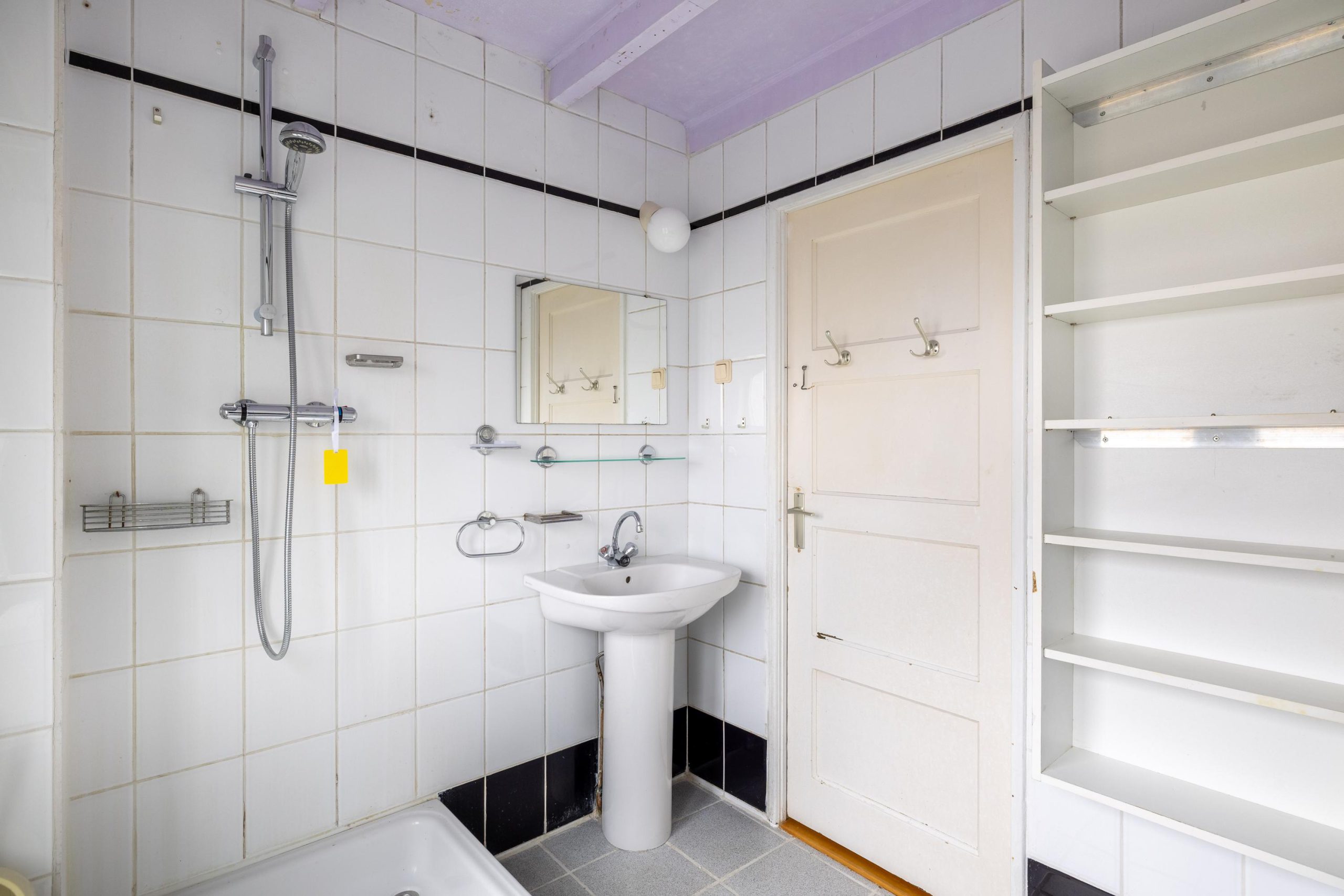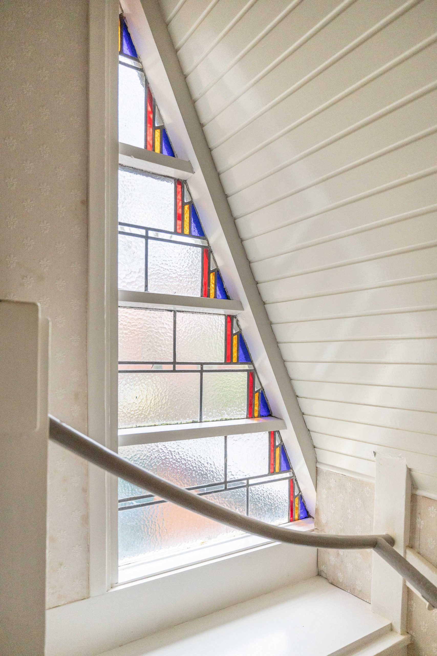 Op de overloop trekt het glas-in-lood het oog, een charmant element dat meteen karakter geeft aan deze verdieping. Aan de voorzijde ligt een ruime slaapkamer met dubbel glas (niet HR), terwijl de kleinere kamer(s) zijn voorzien van enkel glas met voorzetramen. Alle kamers hebben potentie en voelen door de goede lichtinval vriendelijk en bruikbaar aan, in welke functie je ze ook wilt inzetten.