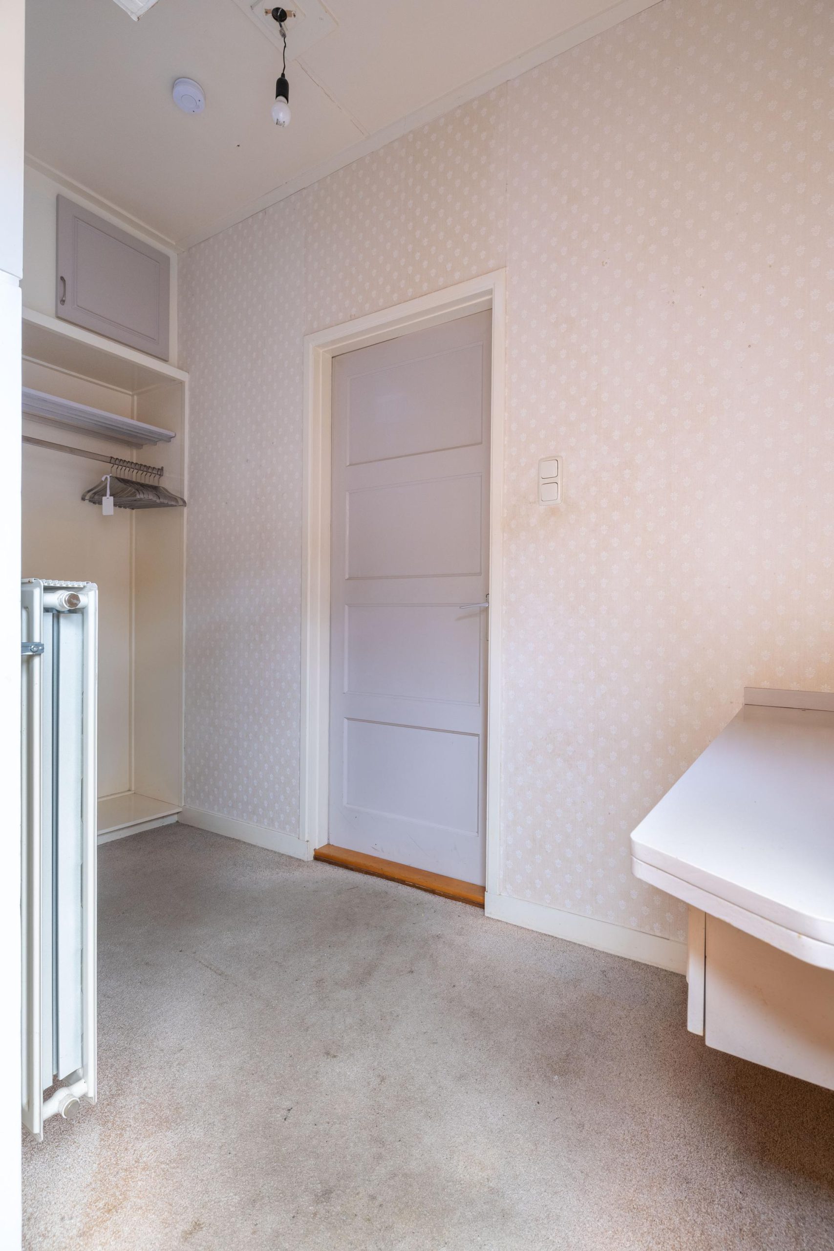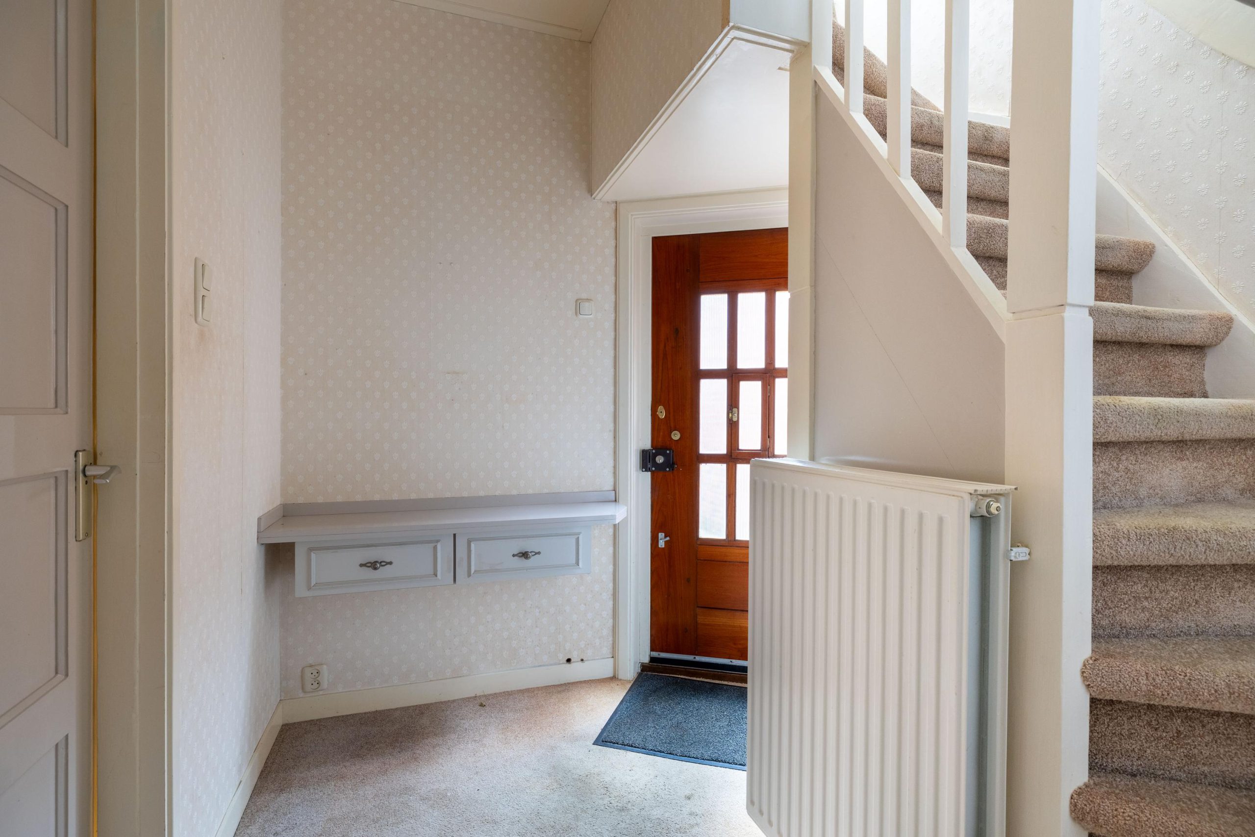 Bij binnenkomst valt meteen de praktische indeling op. De hal biedt toegang tot de woonkamer en beschikt over zowel een meterkast als een handige trapkast. Een logische, overzichtelijke start van de woning.