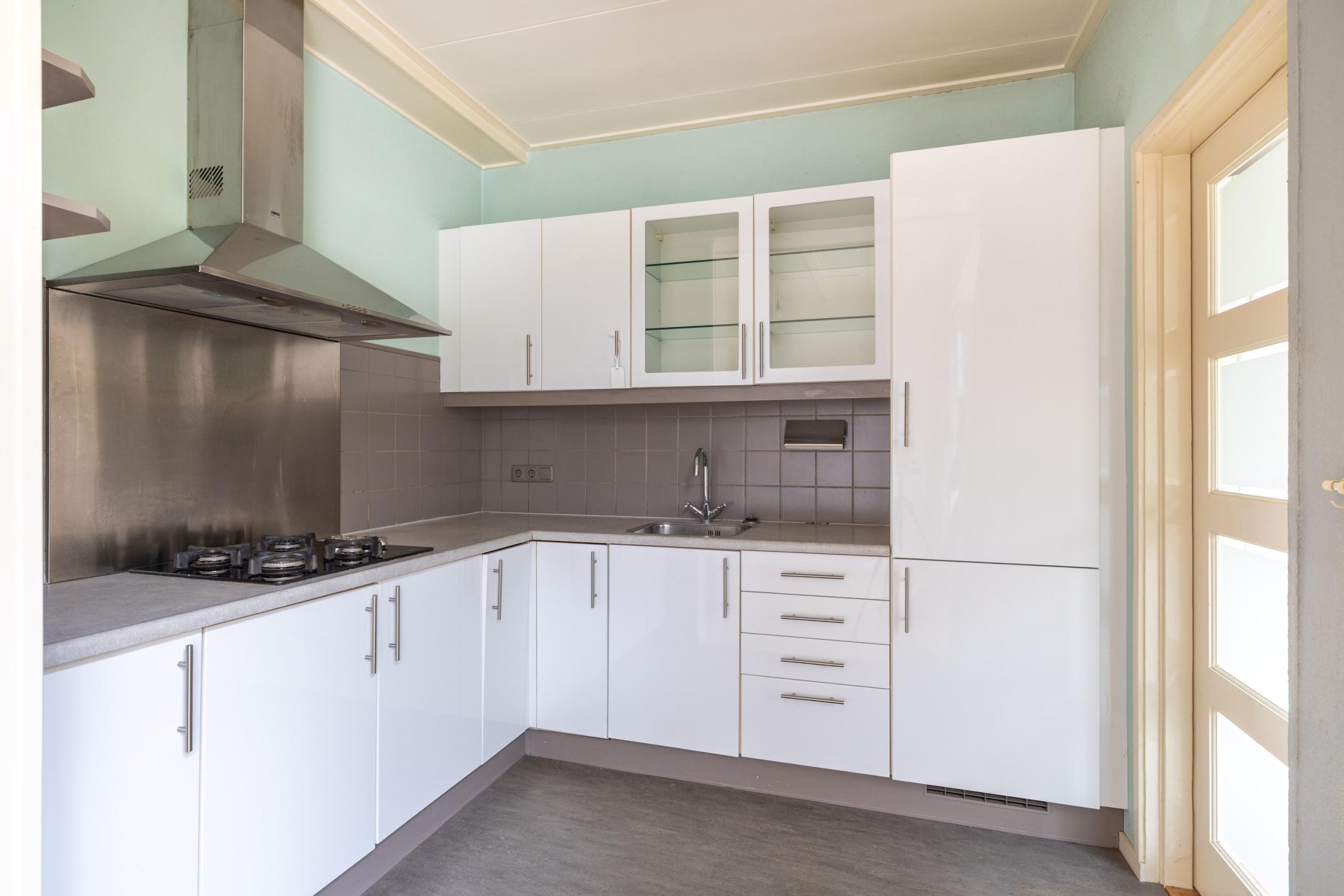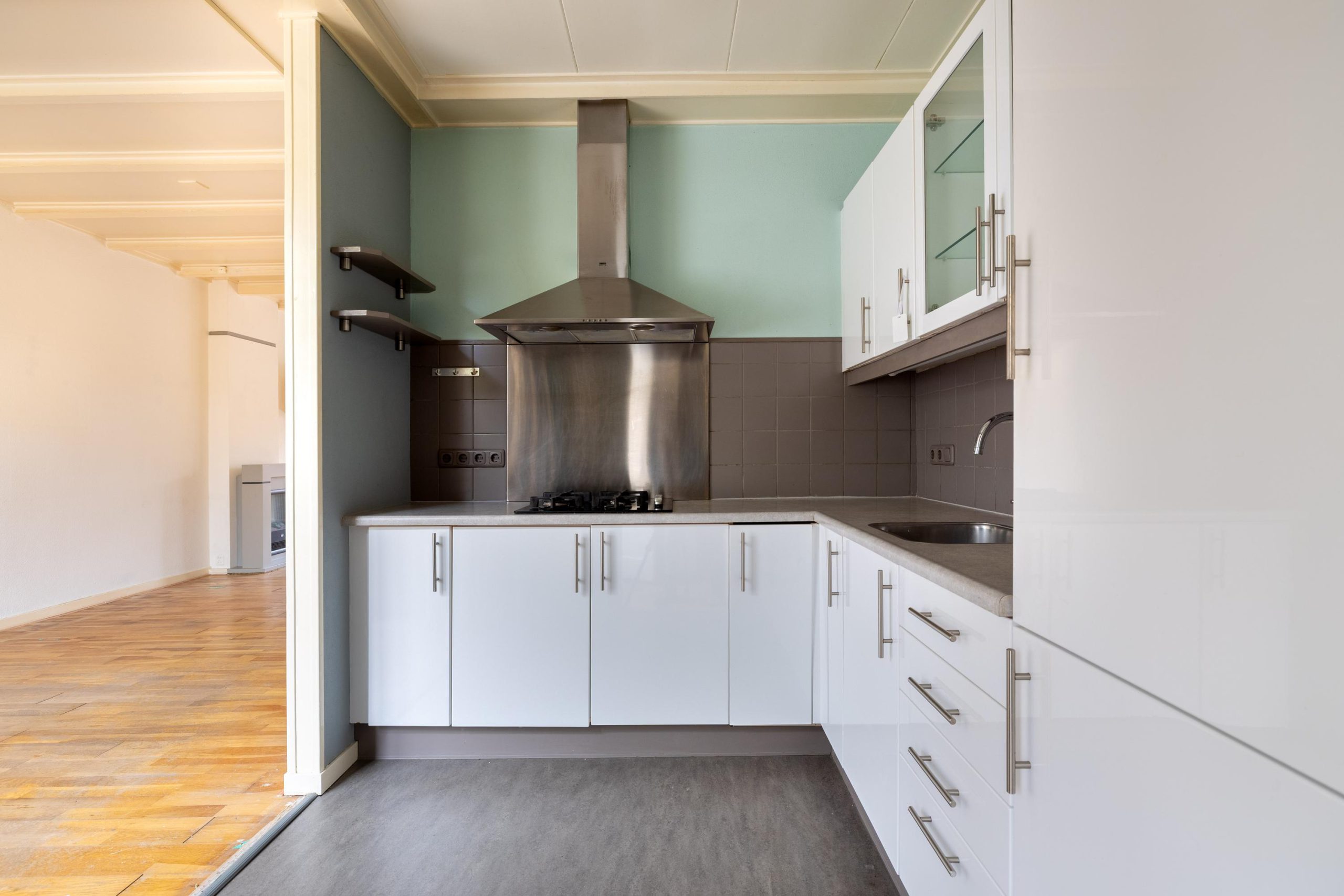 In de halfopen keuken is gekozen voor een rustige, witte basis waarin alles aanwezig is wat je nodig hebt: een gasfornuis, koelkast, vriezer en een afzuigkap. Het is een functionele ruimte die direct gebruikt kan worden, maar zich ook uitstekend leent voor een toekomstige update.