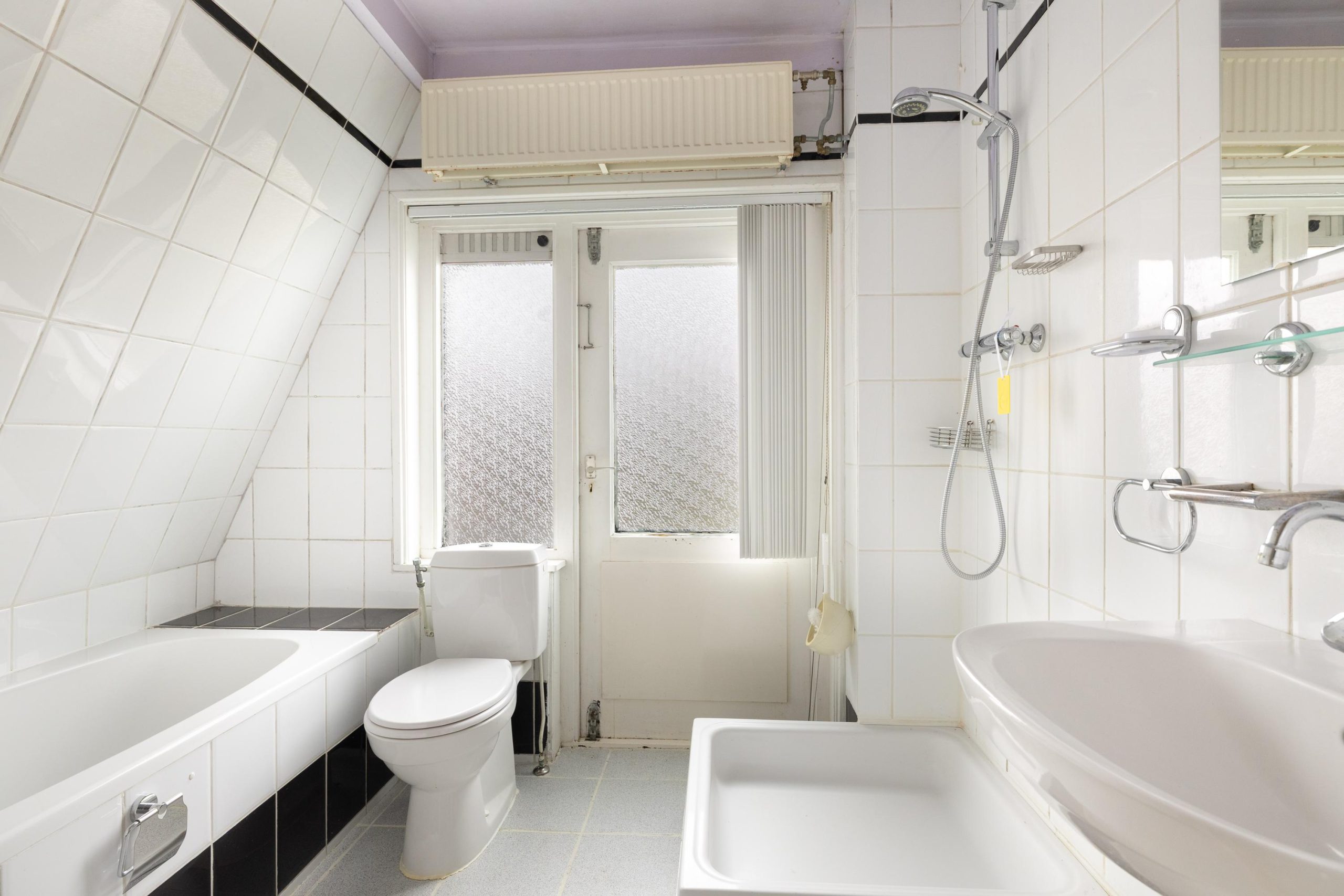 De badkamer voelt royaal aan en biedt alles voor een comfortabele start én afsluiter van de dag. Het ligbad nodigt uit tot ontspannen bubbeltijd, terwijl de aparte douche ideaal is voor de snelle ochtenden. Het toilet en de wastafel maken de ruimte compleet.