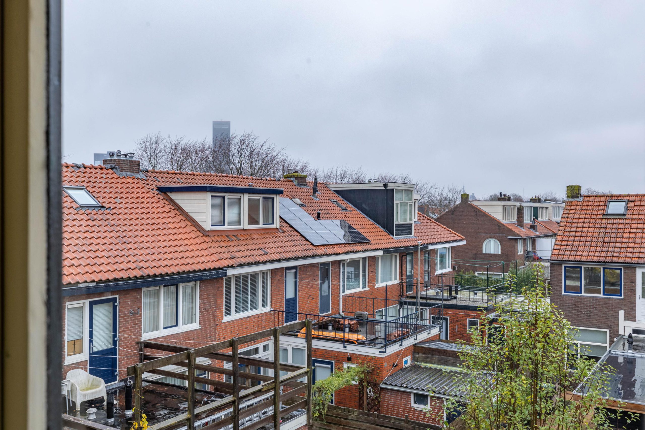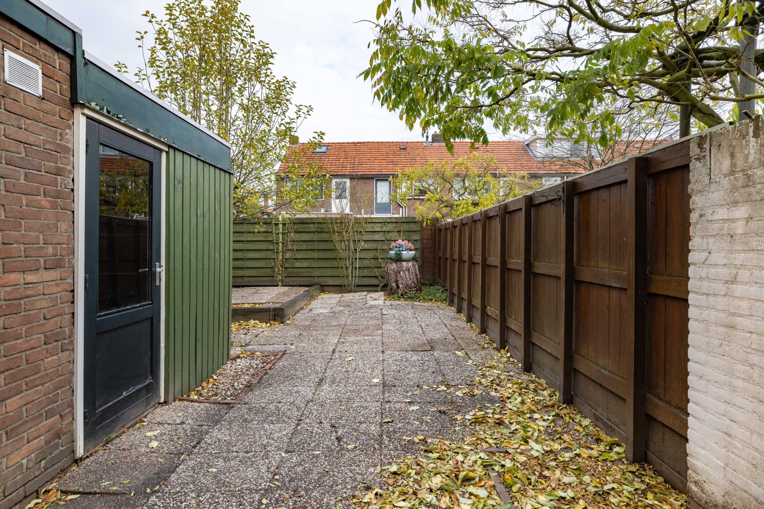 De achtertuin is volledig bestraat en daardoor heerlijk onderhoudsarm. Het aangebouwde schuurtje zorgt voor extra bergruimte, terwijl de achterom ideaal is voor fietsen, afvalcontainers of klussen in de tuin. Een praktische buitenplek waar je met wat creatieve aankleding een verrassend fijne stadstuin van kunt maken.