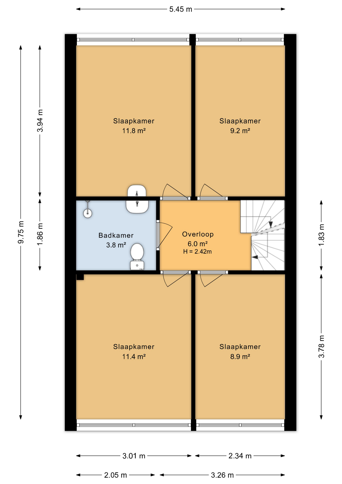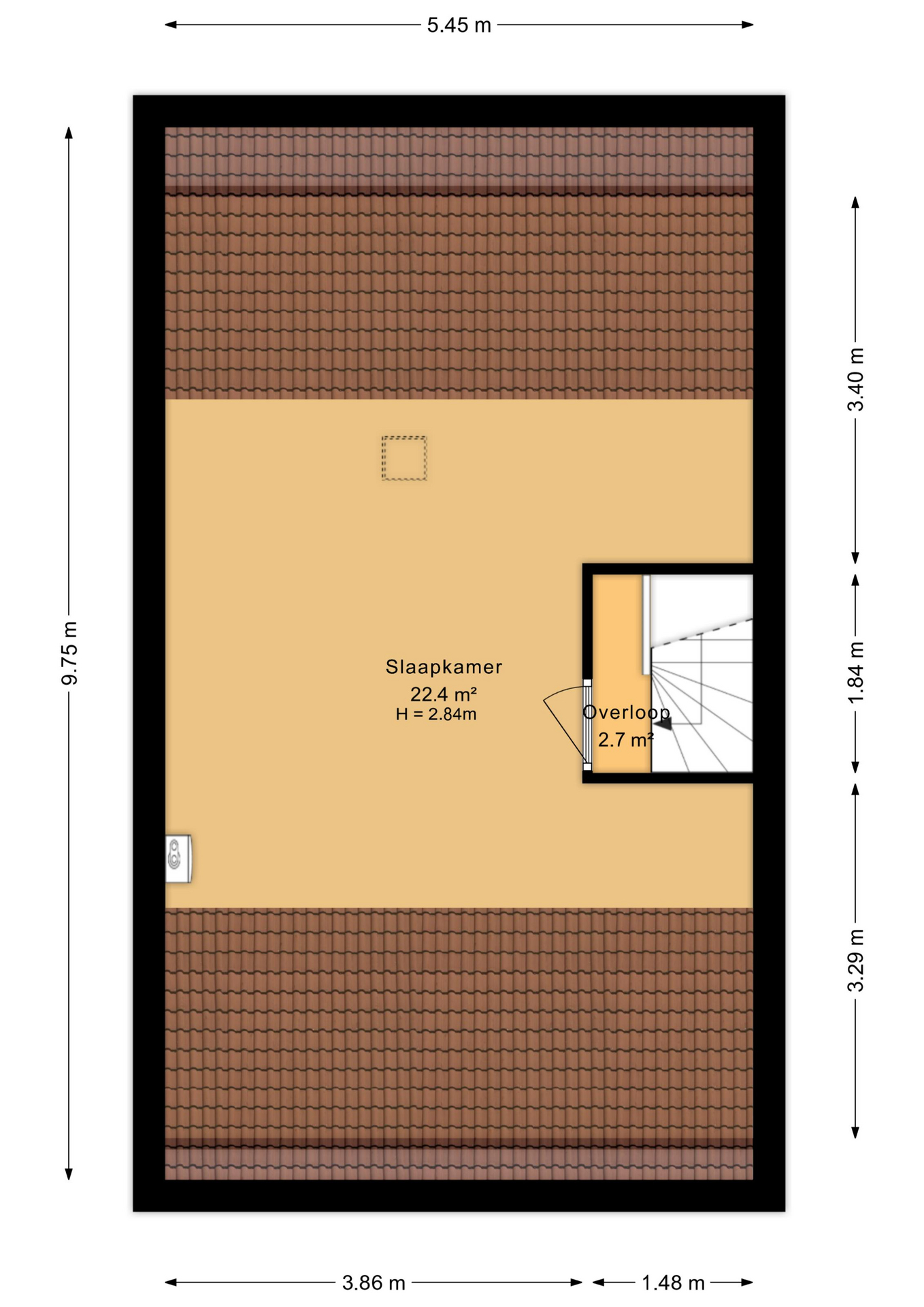 Via een vaste trap bereik je de tweede verdieping, waar nog een vijfde kamer te vinden is. Een veelzijdige ruimte die zich uitstekend leent als extra slaapkamer, werkplek of hobbykamer, met bovendien de mogelijkheid om, net als bij de buren, een dakkapel te plaatsen voor nog meer ruimte en licht.
